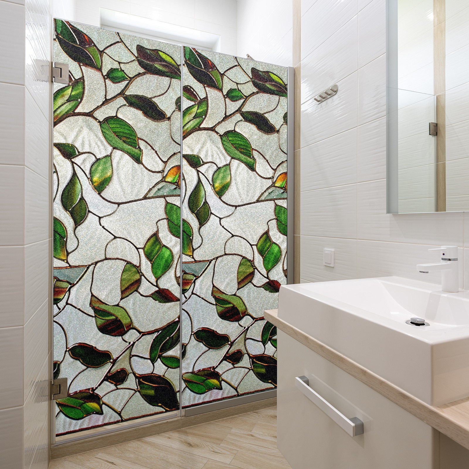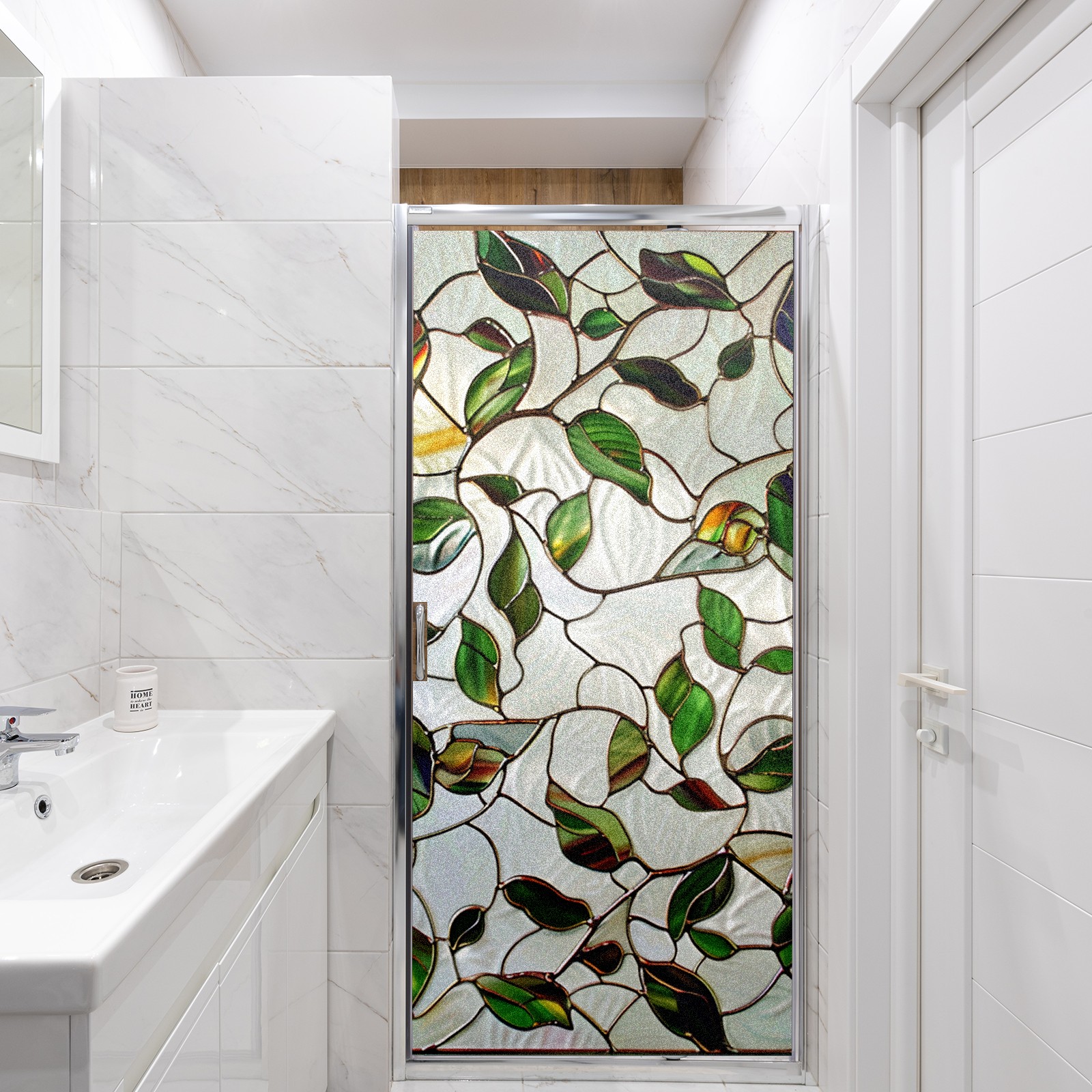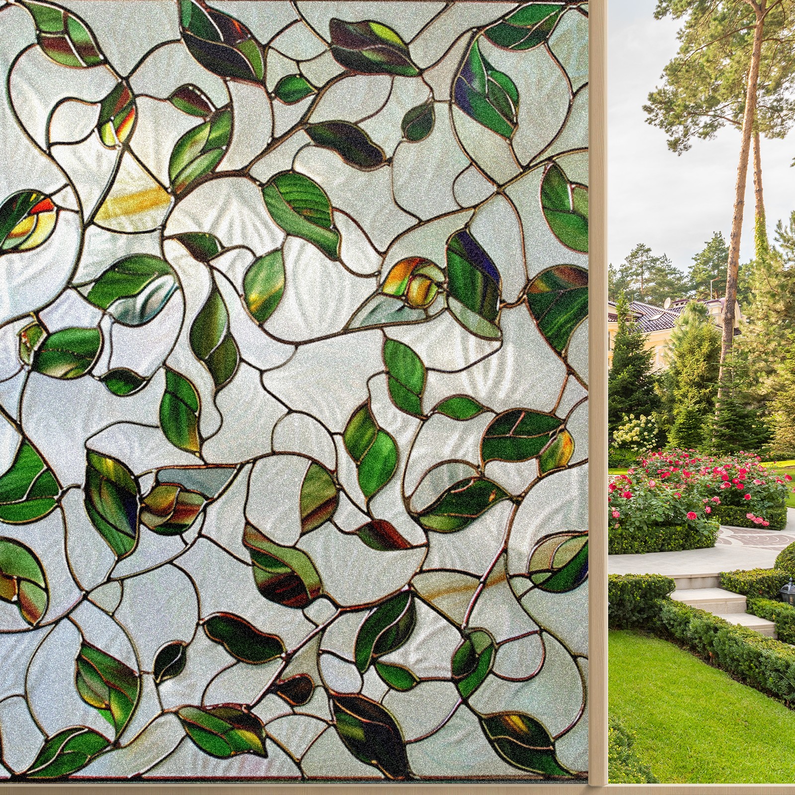Static Cling Decorative Window Film Frosted Privacy Film Window Clings for Glass Windows No Glue Window Sticker for Bathroom Bedroom Office Leaves (7)