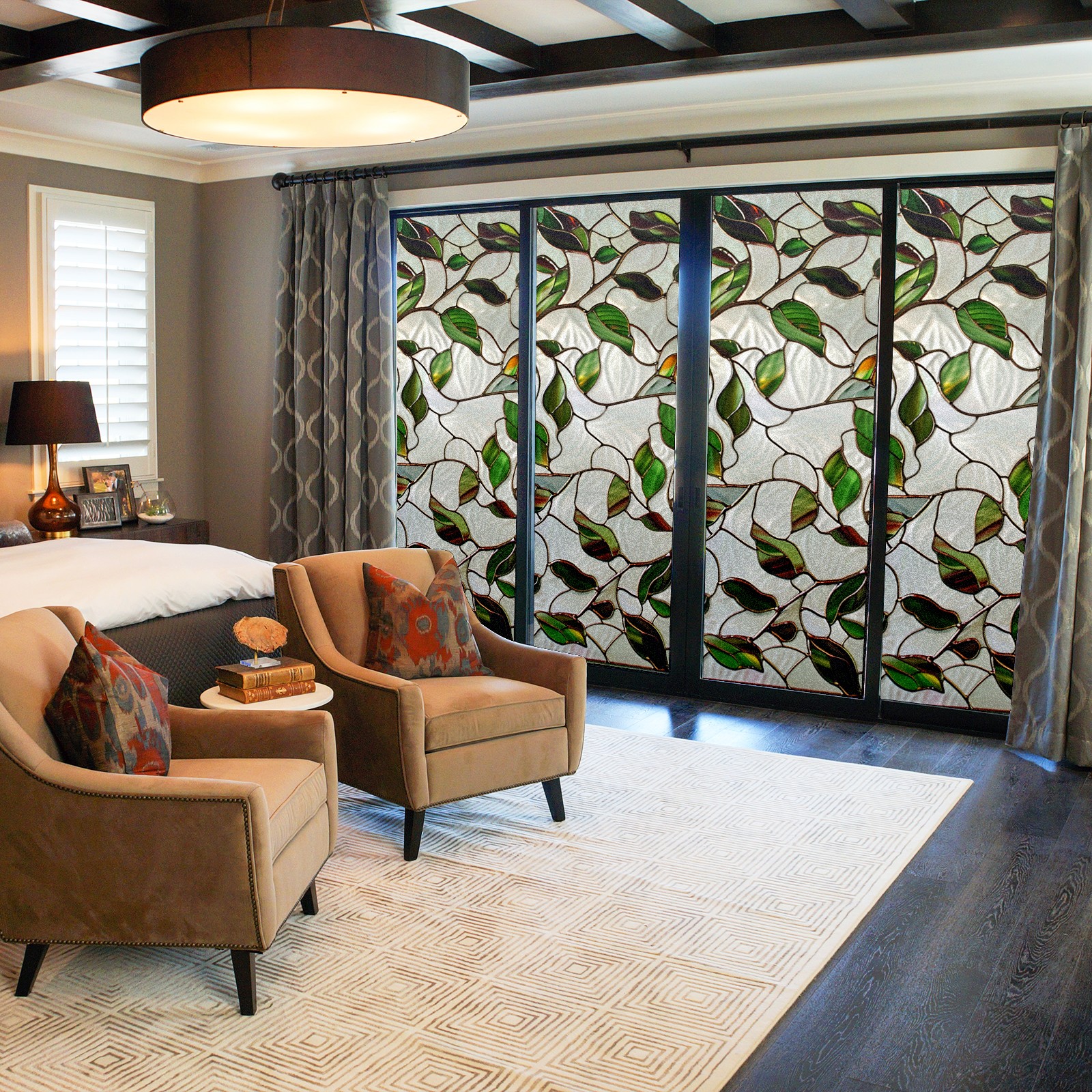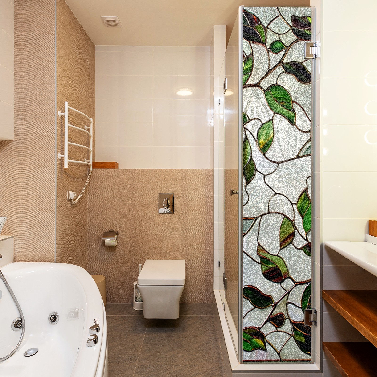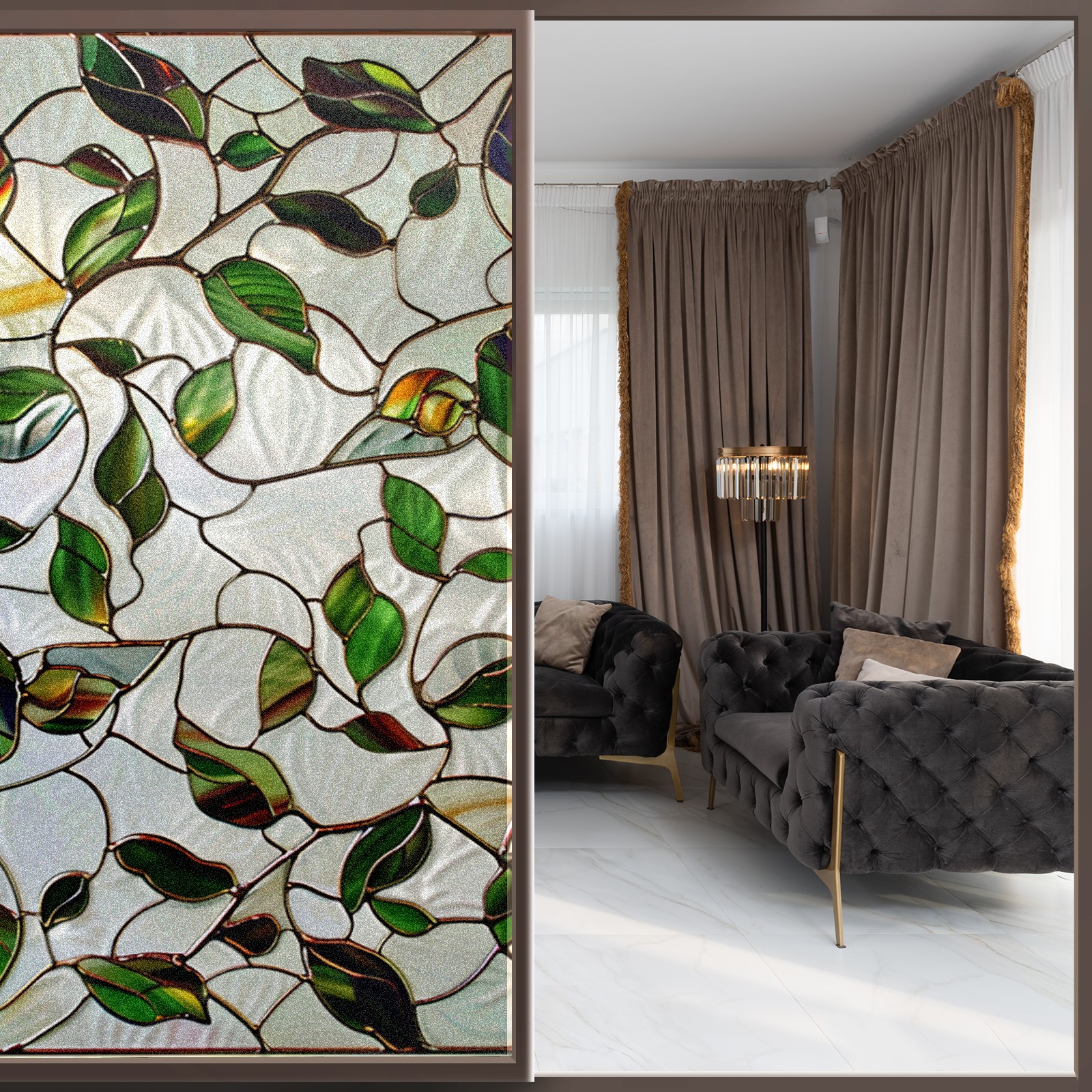 Static Cling Decorative Window Film Frosted Privacy Film Window Clings for Glass Windows No Glue Window Sticker for Bathroom Bedroom Office Leaves (7)