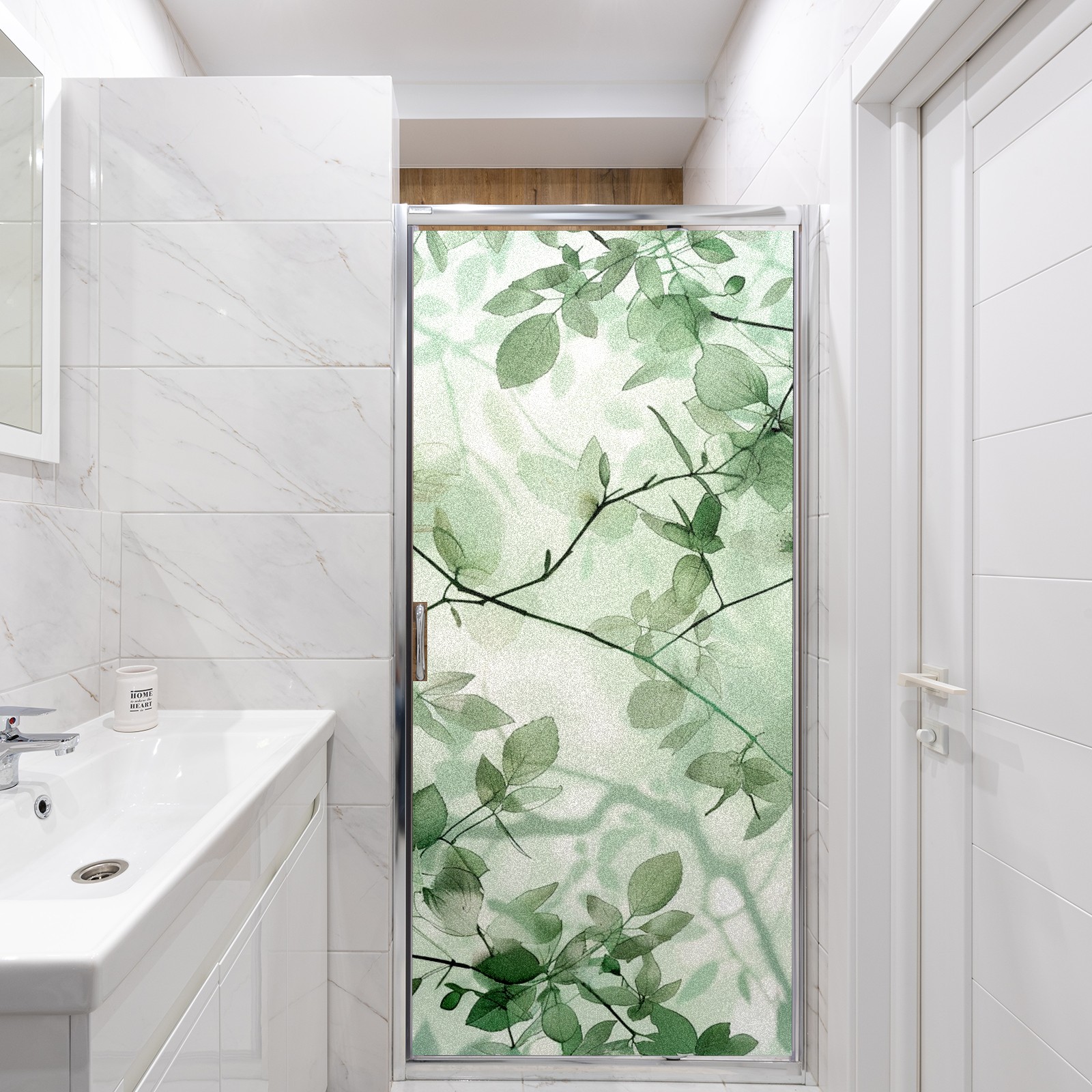Static Cling Decorative Window Film Frosted Privacy Film Window Clings for Glass Windows No Glue Window Sticker for Bathroom Bedroom Office Green Leaves (4)