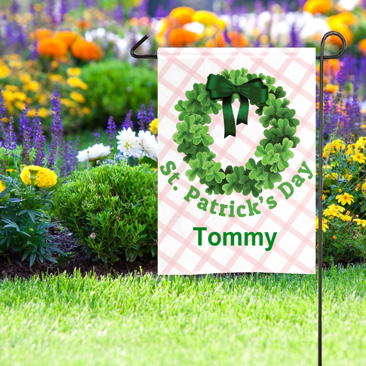 St. Patrick Custom Garden Flag Happy St. Patrick Wreath Personalized Yard Flags Luck Double Sided Outside Farmhouse Spring Decor Lawn Banner