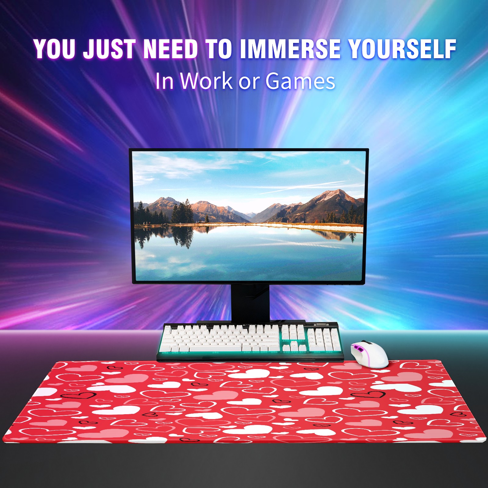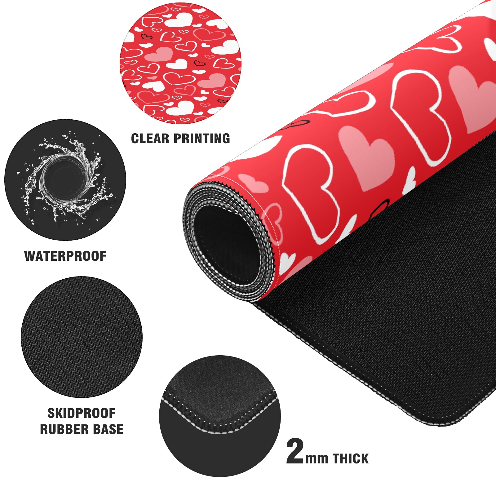 Valentines Day Red Heart Mouse Pad 35.4'' x 15.7'' Extra Large Gaming Mousepad Non-Slip Soft Rubber Desk Mat Pad Computer Keyboard Mats for Desk Desktop Mat