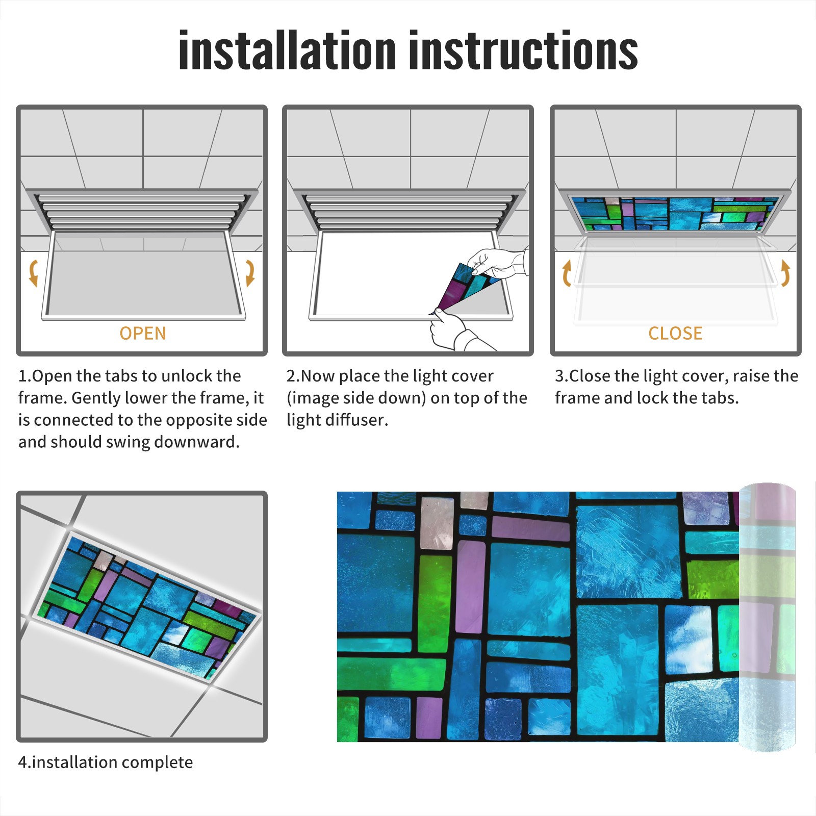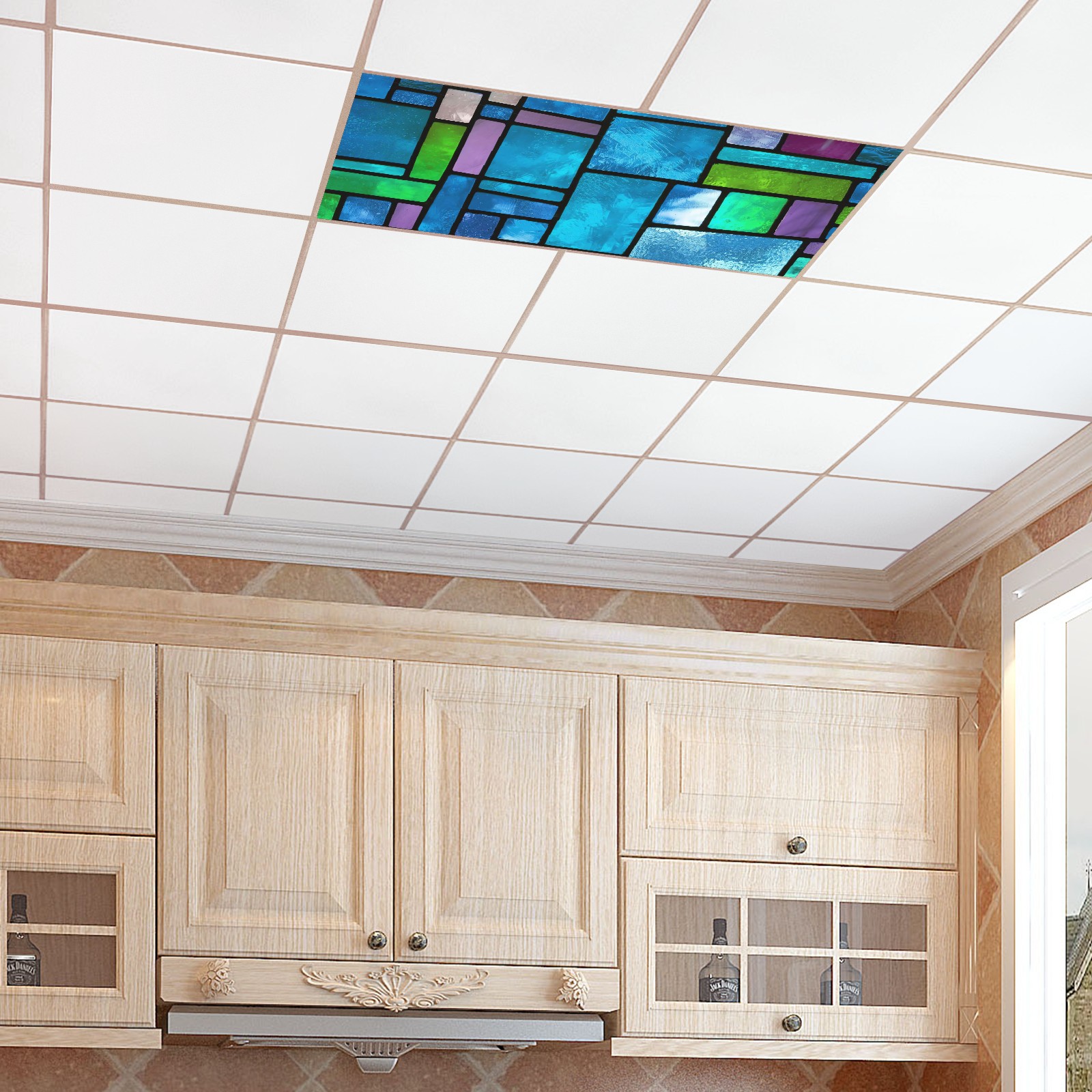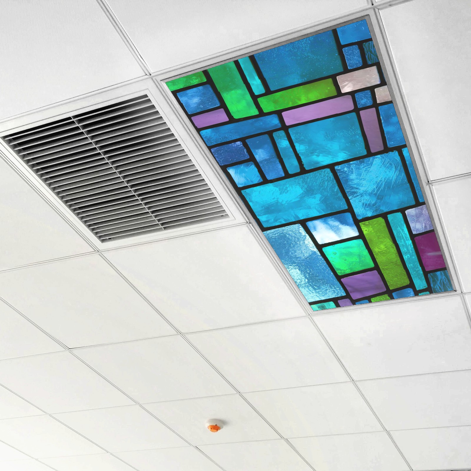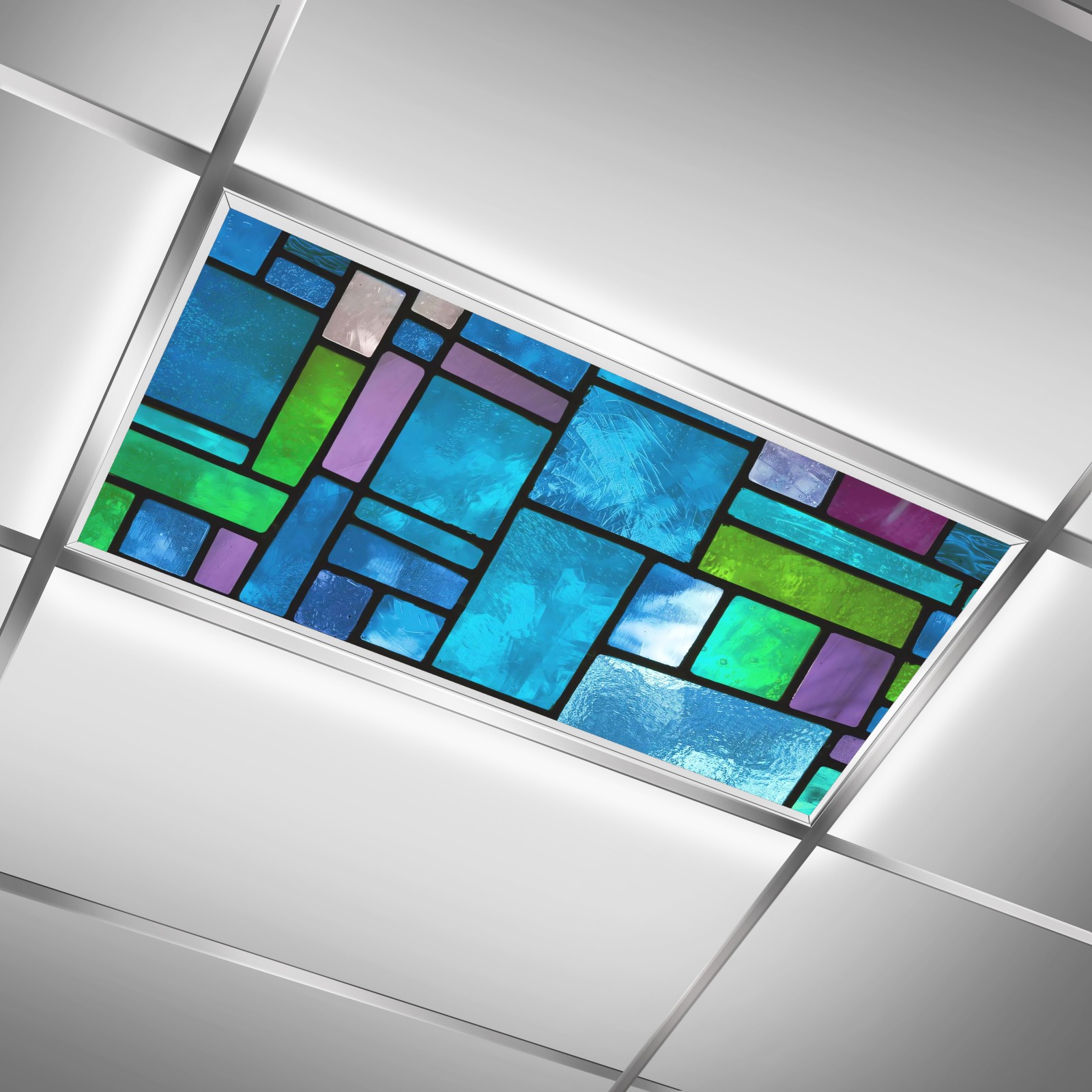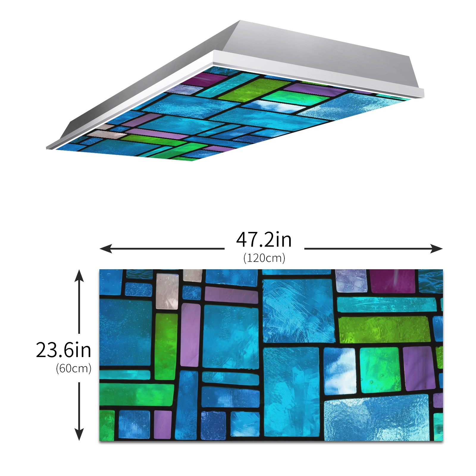 2 Pack Blue Green Stained GlassLights Fluorescent Light Covers for Classroom Office 2x4ft Celling Fluorescent Decorative Eliminate Harsh Glare,Classroom Decorations