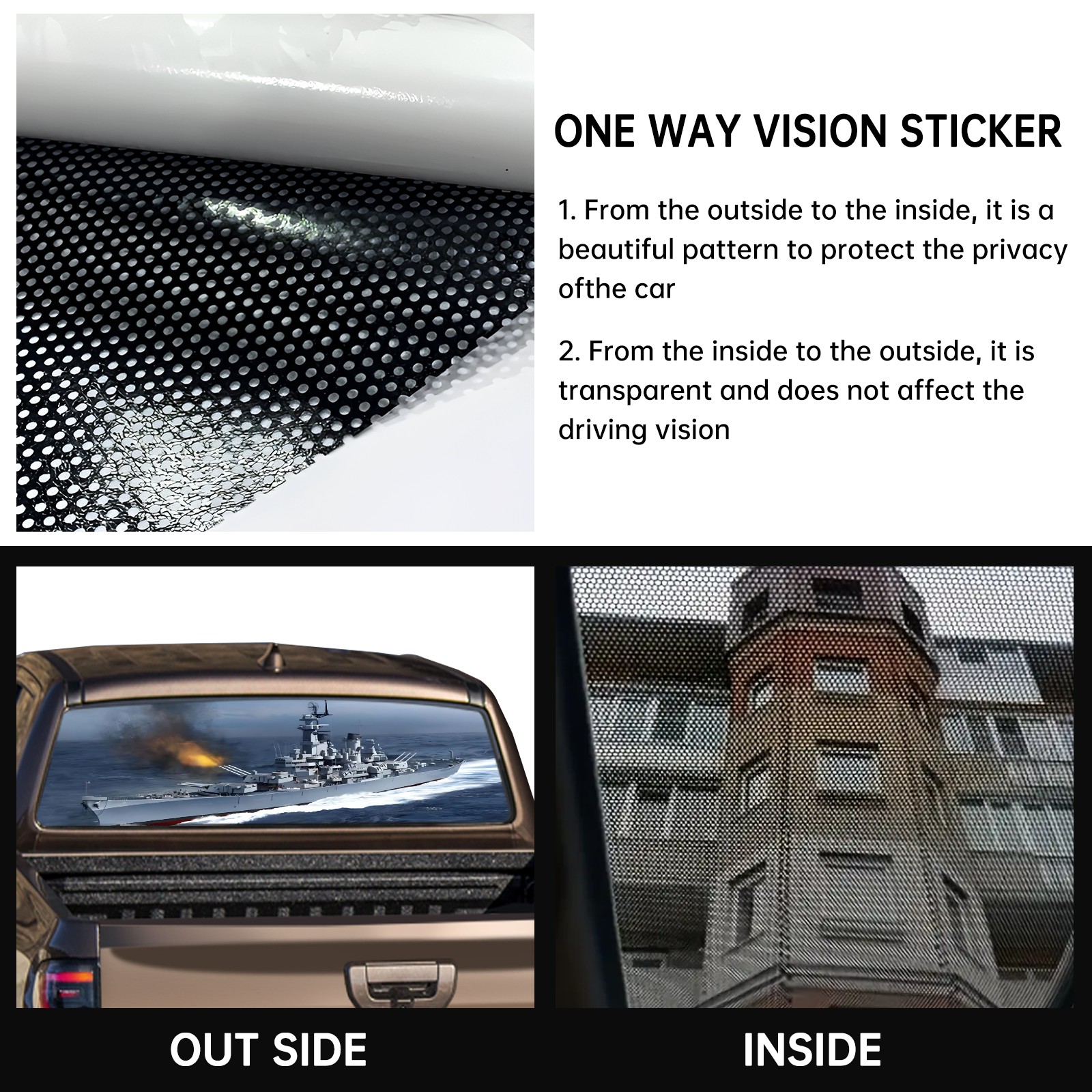 <p><strong>Truck Rear Window Graphics Decals Pickup Trucks Back Window Film Stickers 66" x 22" Perforated Vinyl Wrap Stickers Decorations for Car Rear Window</strong></p><p><strong><br /></strong></p><p><strong>Features :</strong></p><p>- Size of the rear window decals for trucks is 66x22 Inches (168x56cm).</p><p>- High quality perforated vinyl window film, one way vision sticker.</p><p>- Perforated is see through from the inside but not from outside.</p><p>- Clear printing, waterproof and durable.</p><p>- The car back window graphics stickers fits most truck and makes your vehicle more beautiful.&nbsp;</p><p><br /></p><p><strong>【Installation Instructions】</strong></p><p><strong>1. CLEAN SURFACE -</strong> Clean the rear window thoroughly and make sure the surface clean.</p><p><strong>2. STICK THE DECALS -</strong> Tear off the paper on the back and stick the decal on the window.</p><p><strong>3. SCRAPE OFF AIR BUBBLES -</strong> Use a squeegee or other card to scrape off the excess air bubbles.</p><p><strong>4. TRIM THE EXCESS -</strong> Use a knife to cut off the excess stickers of the window, finally complete.</p><p><br /></p><p>1. Please measure the size before purchasing, back window graphics decal for truck can be cut to your desired size.</p><p>2.The graphics stickers for truck back window is a great gift for yourself also can as a birthday / halloween / christmas gift for your friends and family.</p>