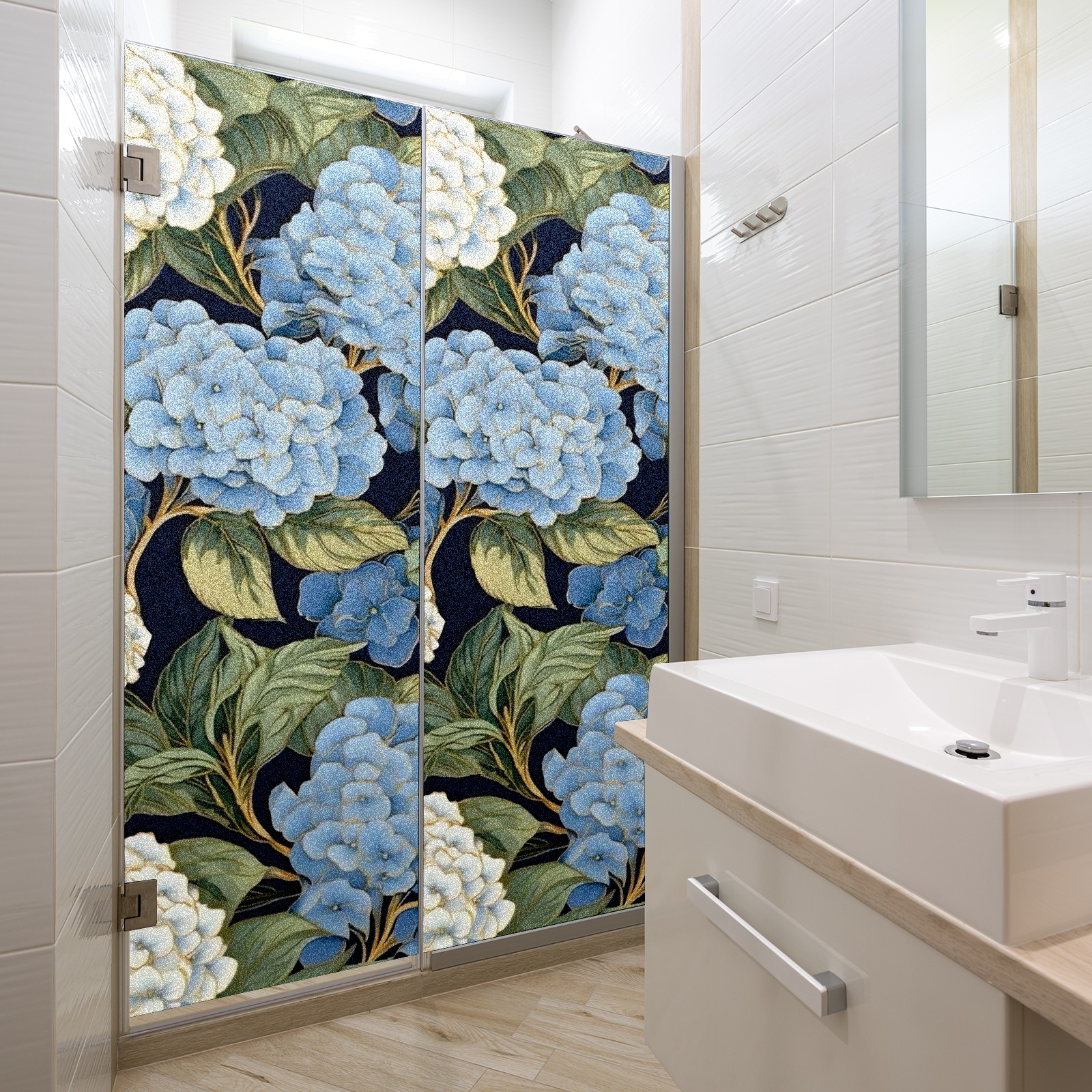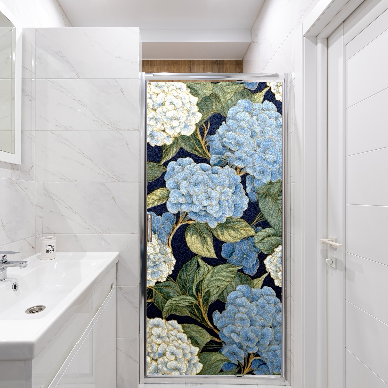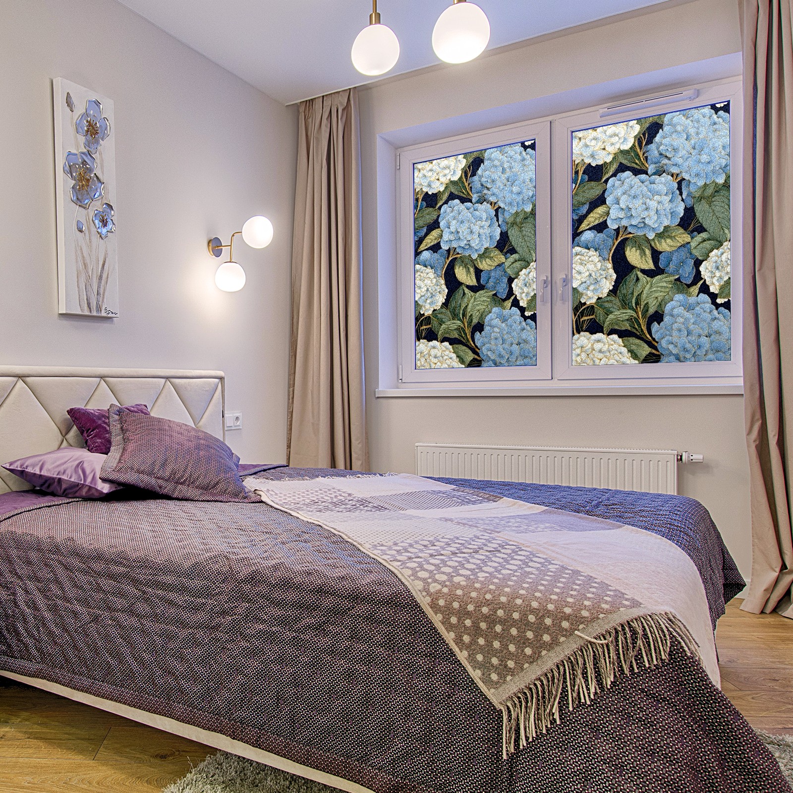 Static Cling Decorative Window Film Frosted Privacy Film Window Clings for Glass Windows No Glue Window Sticker for Bathroom Bedroom Office Hydrangea Flower