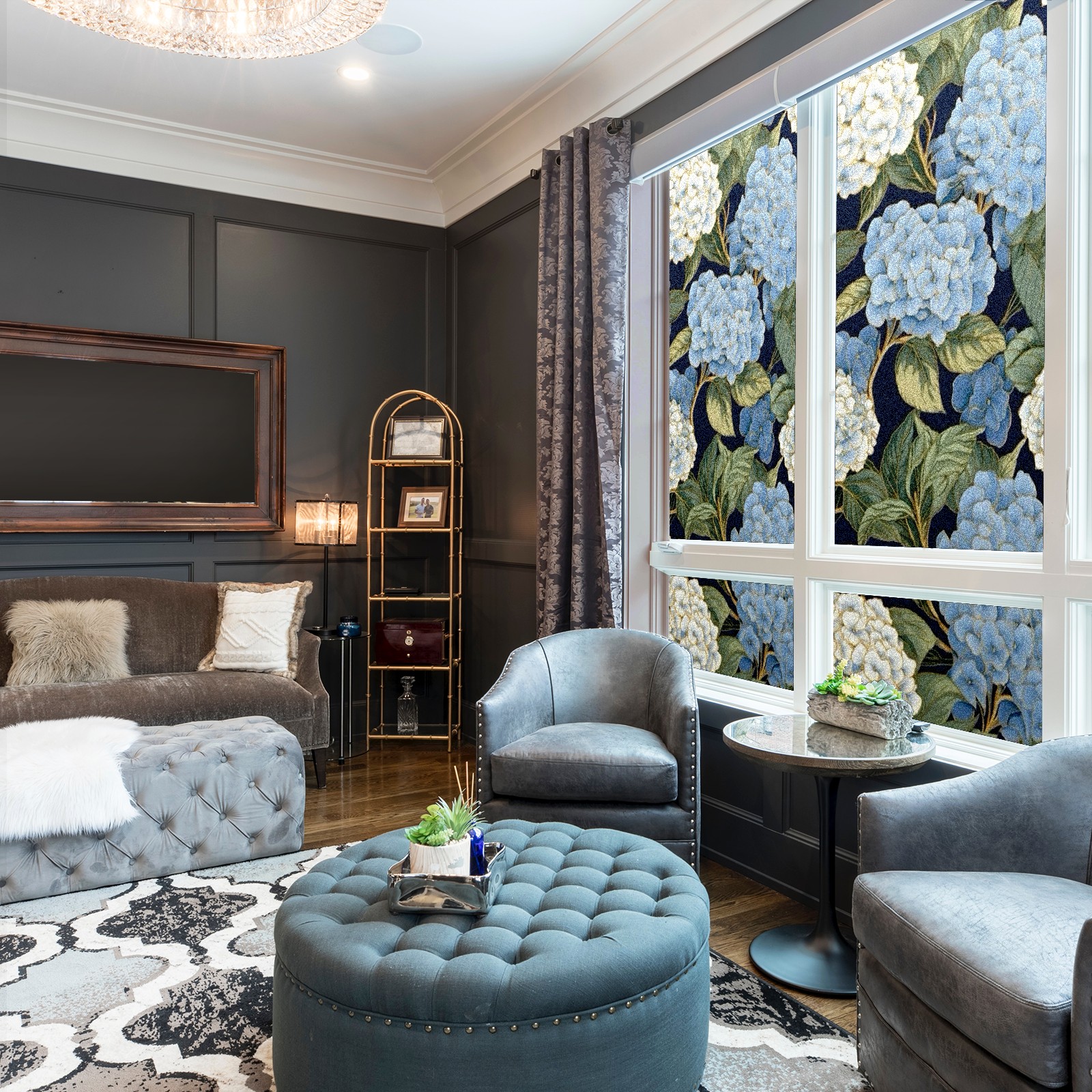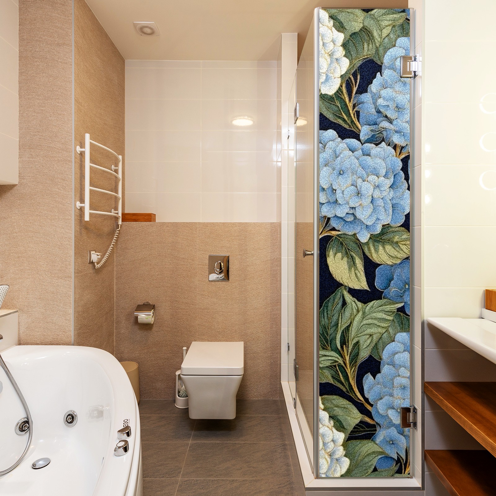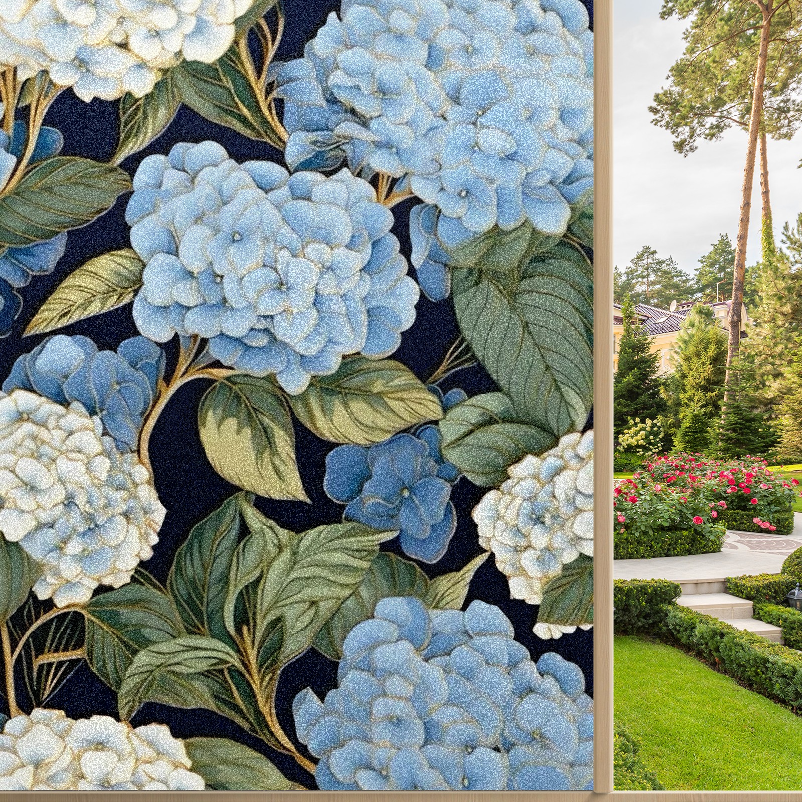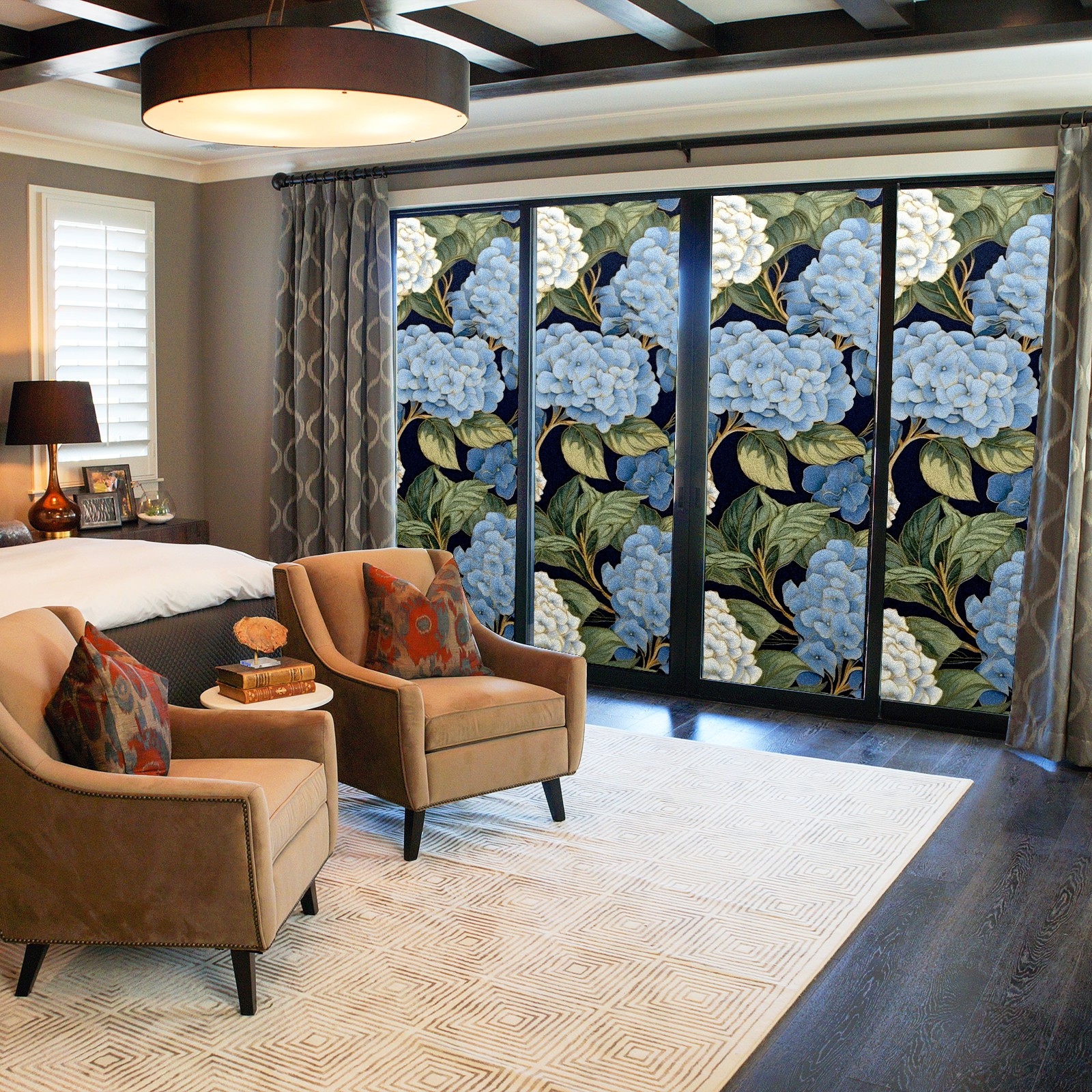 Static Cling Decorative Window Film Frosted Privacy Film Window Clings for Glass Windows No Glue Window Sticker for Bathroom Bedroom Office Hydrangea Flower