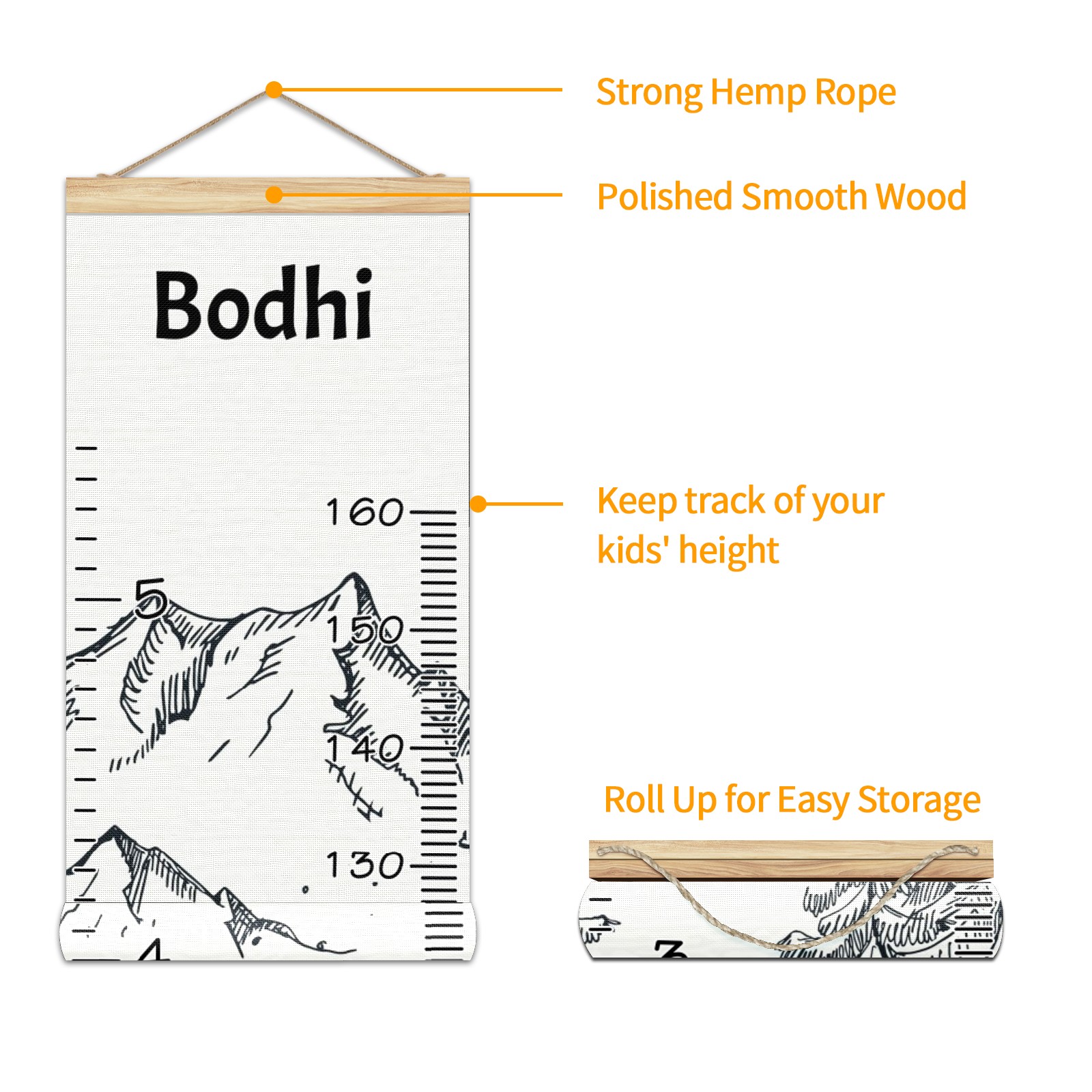 • <p><b>Baby height growth chart can be used anywhere</b></p><p>Ideal for kids nursery decoration, kids bedroom, interior walls or windows, playroom, living room, homedecoration.Add name and make the growth chart special!</p><p><br></p><p><b>Easy to fold and carry</b></p><p>With rope at the top of the growth chart, it is easy to install and remove.You can fold it and unfold any time any where.</p><p><br></p><p><b>Perfect Gift Idea for Kids</b></p><p>Environmental and non-toxic for kids use, it must be a perfect gift for baby, kids, girls, and boys.This is a best choice for your friend who have kids or baby as a popular gift.</p><p><br></p><p><b>Easy to read</b></p><p>Measurement accrate with 2 scales, Centimeters and feet. The letters are big enough, very easy to read.</p><p><br></p><p><b>60cm(23.6inch) Over Ground Design</b></p><p>Not only can protect from dust and other damage, but also will not interfere in floor cleaning.</p><p><br></p><p><b>Features:</b></p><p>Rope for Hanging</p><p>Material: Linen + Wood</p><p>Dimensions: 13.4x56 inches</p><p>Weight: 7.5 once</p><p>Package Included: 1 * Baby Growth Chart</p>