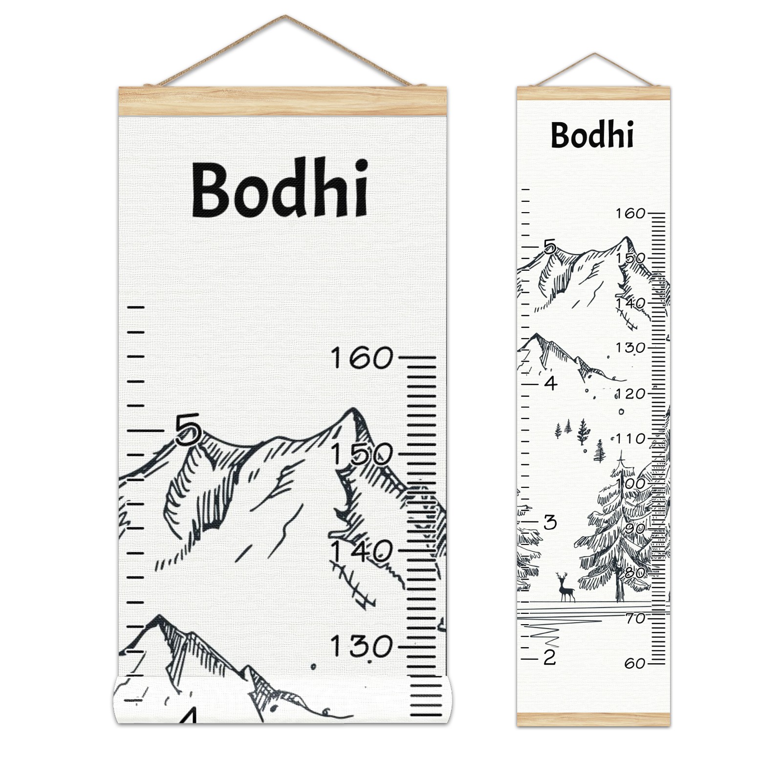 Personalized Kids Name Growth Chart Ruler for Wall Wood Frame Canvas Height Measure Chart 13.4x56 in Hanging Growth Chart Winter Mountain2.2 Boys Girls Room Decor
