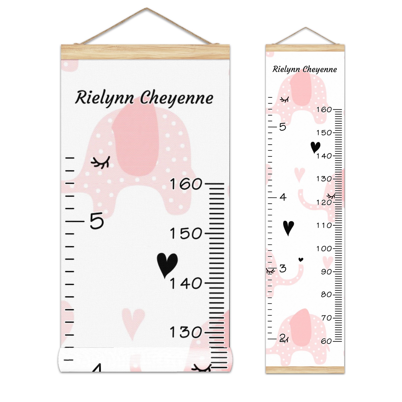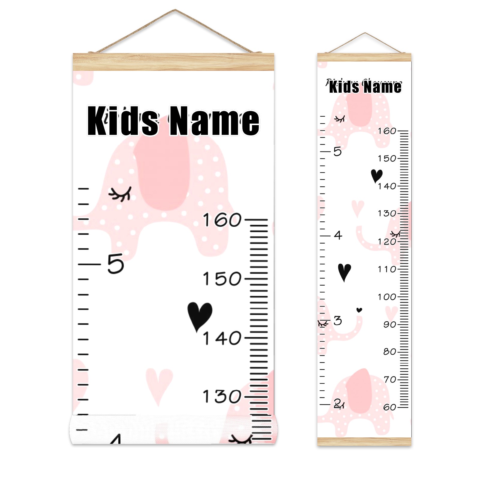 Personalized Kids Name Growth Chart Ruler for Wall Wood Frame Canvas Height Measure Chart 13.4x56 in Hanging Growth Chart Pink Elephant2.2-1 Boys Girls Room Decor