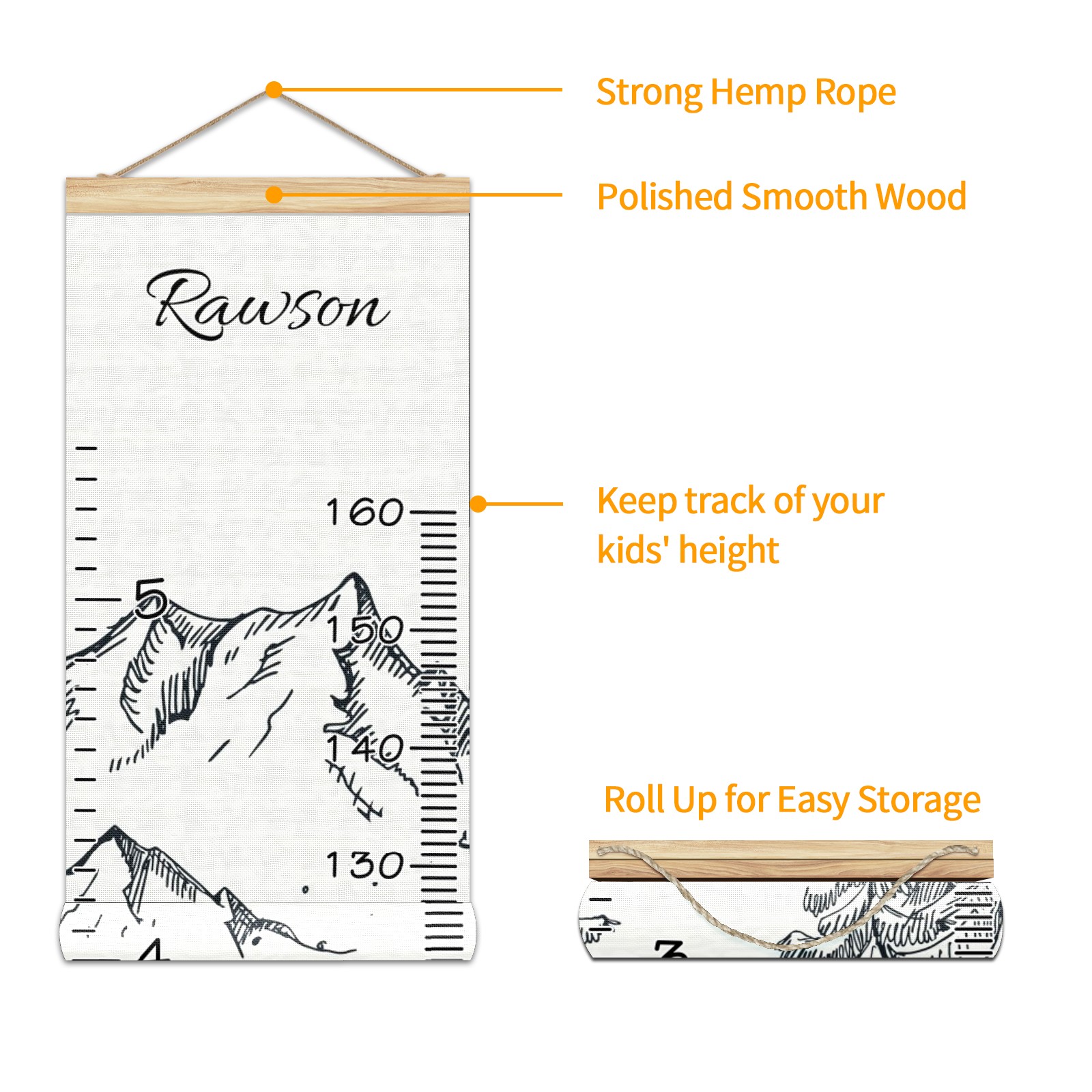 Personalized Kids Name Growth Chart Ruler for Wall Wood Frame Canvas Height Measure Chart 13.4x56 in Hanging Growth Chart Winter Mountain2.2-2 Boys Girls Room Decor