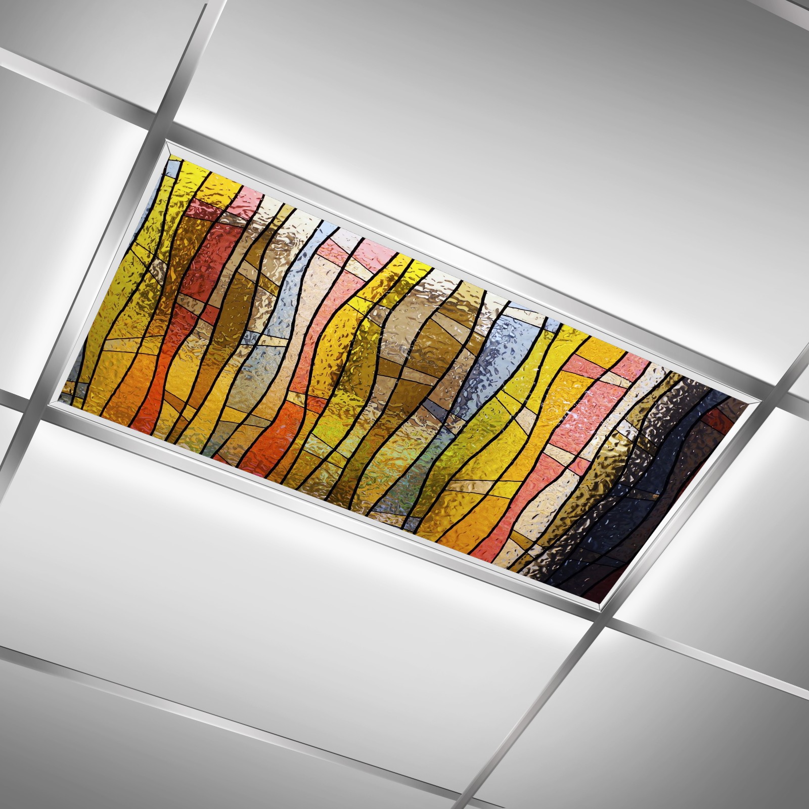 MSINMKOK Fluorescent Light Covers for Ceiling Lights Classroom Office 4x2ft Retro Stained Glasses Yellow (1) Decorative Drop Ceiling Light Cover Filters Hospital Home Ceiling Decorations
