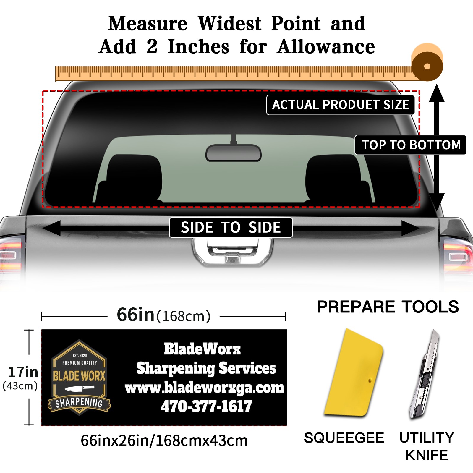 • <p><strong>Truck Rear Window Graphics Decals Pickup Trucks Back Window Film Stickers 66" x 22" Perforated Vinyl Wrap Stickers Decorations for Car Rear Window</strong></p><p><strong><br /></strong></p><p><strong>Features :</strong></p><p>- Size of the rear window decals for trucks is 66x22 Inches (168x56cm).</p><p>- High quality perforated vinyl window film, one way vision sticker.</p><p>- Perforated is see through from the inside but not from outside.</p><p>- Clear printing, waterproof and durable.</p><p>- The car back window graphics stickers fits most truck and makes your vehicle more beautiful.&nbsp;</p><p><br /></p><p><strong>【Installation Instructions】</strong></p><p><strong>1. CLEAN SURFACE -</strong> Clean the rear window thoroughly and make sure the surface clean.</p><p><strong>2. STICK THE DECALS -</strong> Tear off the paper on the back and stick the decal on the window.</p><p><strong>3. SCRAPE OFF AIR BUBBLES -</strong> Use a squeegee or other card to scrape off the excess air bubbles.</p><p><strong>4. TRIM THE EXCESS -</strong> Use a knife to cut off the excess stickers of the window, finally complete.</p><p><br /></p><p>1. Please measure the size before purchasing, back window graphics decal for truck can be cut to your desired size.</p><p>2.The graphics stickers for truck back window is a great gift for yourself also can as a birthday / halloween / christmas gift for your friends and family.</p>