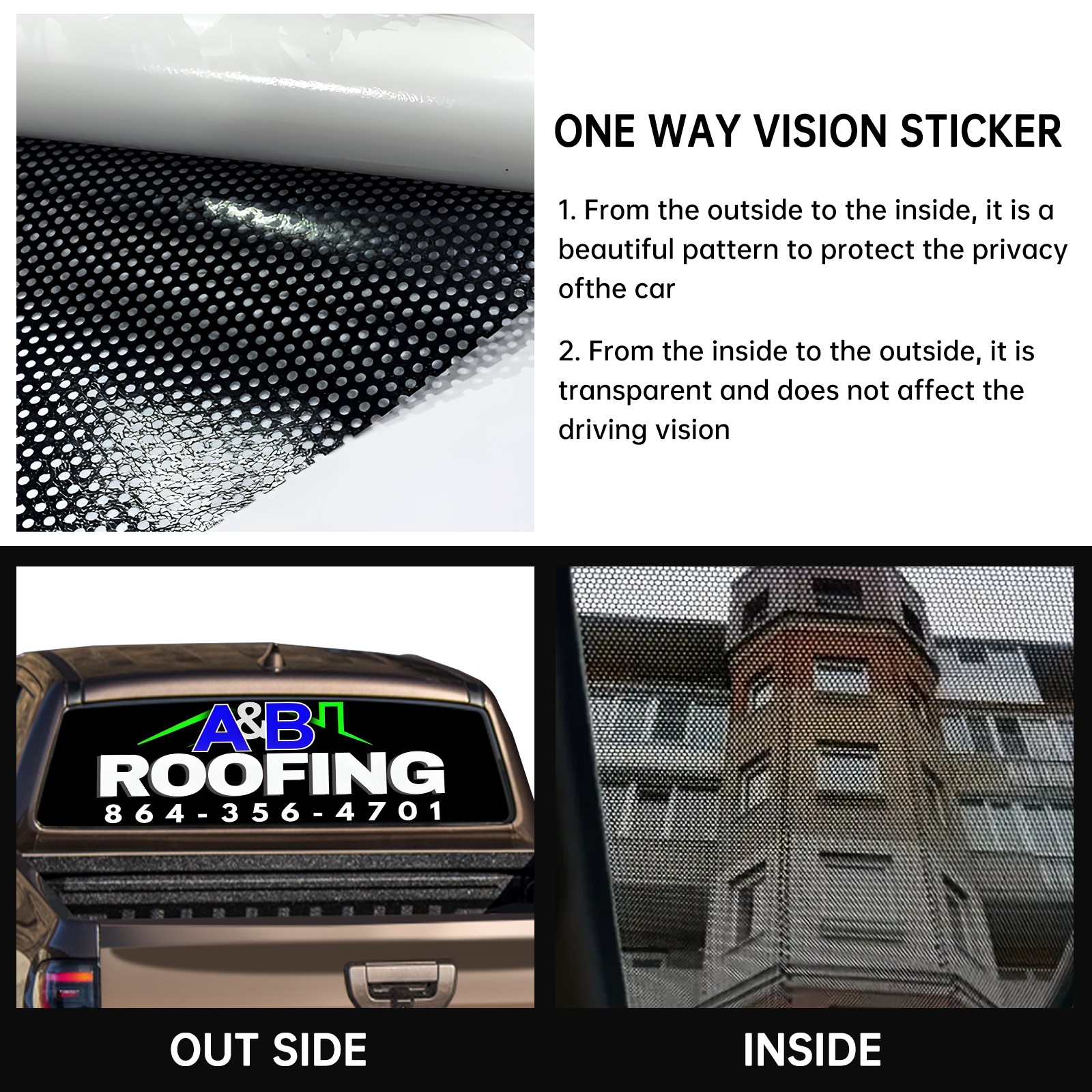 • <p><strong>Truck Rear Window Graphics Decals Pickup Trucks Back Window Film Stickers 66" x 22" Perforated Vinyl Wrap Stickers Decorations for Car Rear Window</strong></p><p><strong><br /></strong></p><p><strong>Features :</strong></p><p>- Size of the rear window decals for trucks is 66x22 Inches (168x56cm).</p><p>- High quality perforated vinyl window film, one way vision sticker.</p><p>- Perforated is see through from the inside but not from outside.</p><p>- Clear printing, waterproof and durable.</p><p>- The car back window graphics stickers fits most truck and makes your vehicle more beautiful.&nbsp;</p><p><br /></p><p><strong>【Installation Instructions】</strong></p><p><strong>1. CLEAN SURFACE -</strong> Clean the rear window thoroughly and make sure the surface clean.</p><p><strong>2. STICK THE DECALS -</strong> Tear off the paper on the back and stick the decal on the window.</p><p><strong>3. SCRAPE OFF AIR BUBBLES -</strong> Use a squeegee or other card to scrape off the excess air bubbles.</p><p><strong>4. TRIM THE EXCESS -</strong> Use a knife to cut off the excess stickers of the window, finally complete.</p><p><br /></p><p>1. Please measure the size before purchasing, back window graphics decal for truck can be cut to your desired size.</p><p>2.The graphics stickers for truck back window is a great gift for yourself also can as a birthday / halloween / christmas gift for your friends and family.</p>
