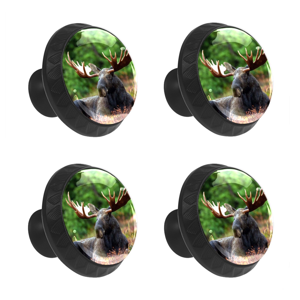 4 Pack Drawer Knobs Pulls Black Moose Lying On Ground Crystal Glass Round Knobs Pulls Handles for Cabinets Dressers Kitchen Bathroom - Cupboards Wardrobes Hardware Furniture Knobs