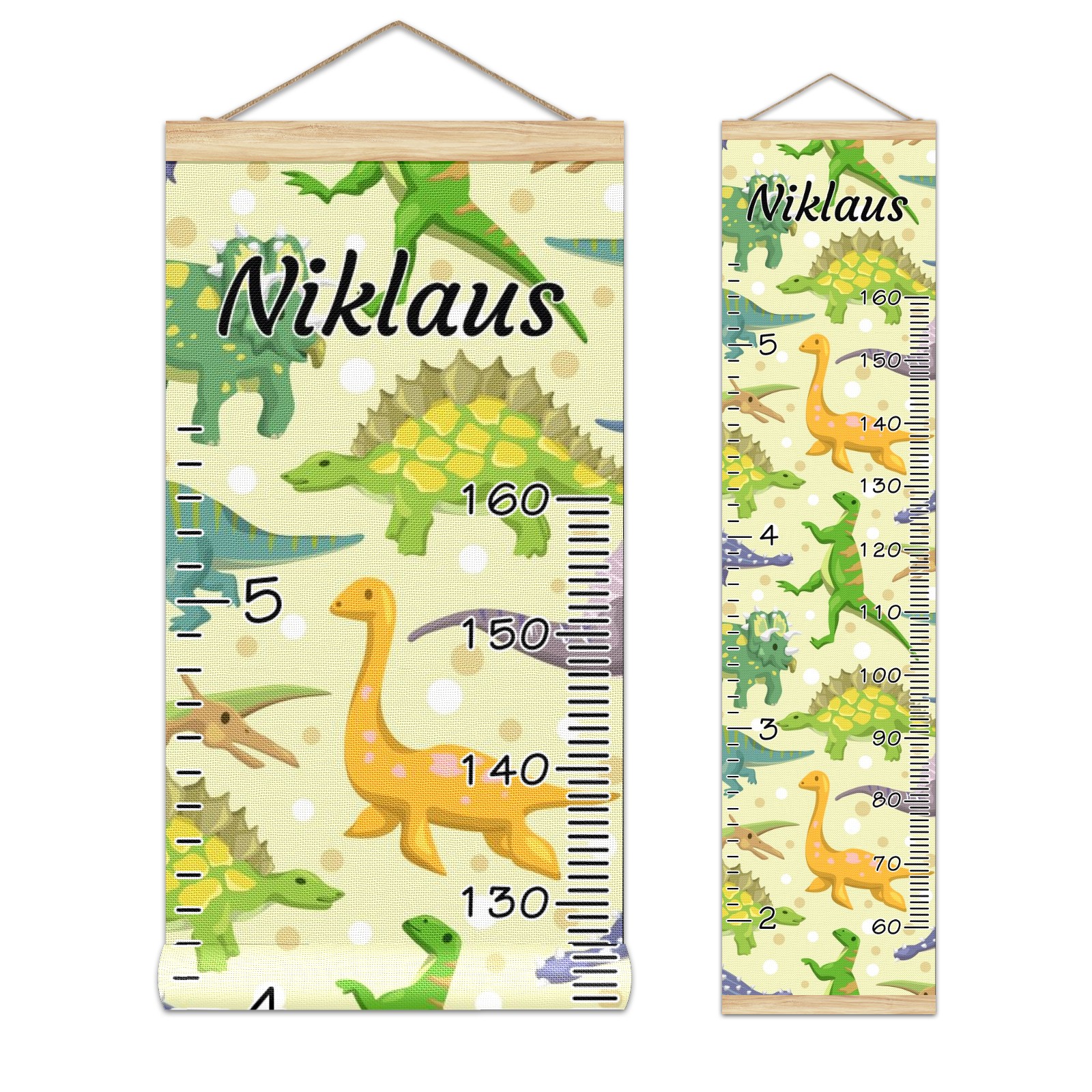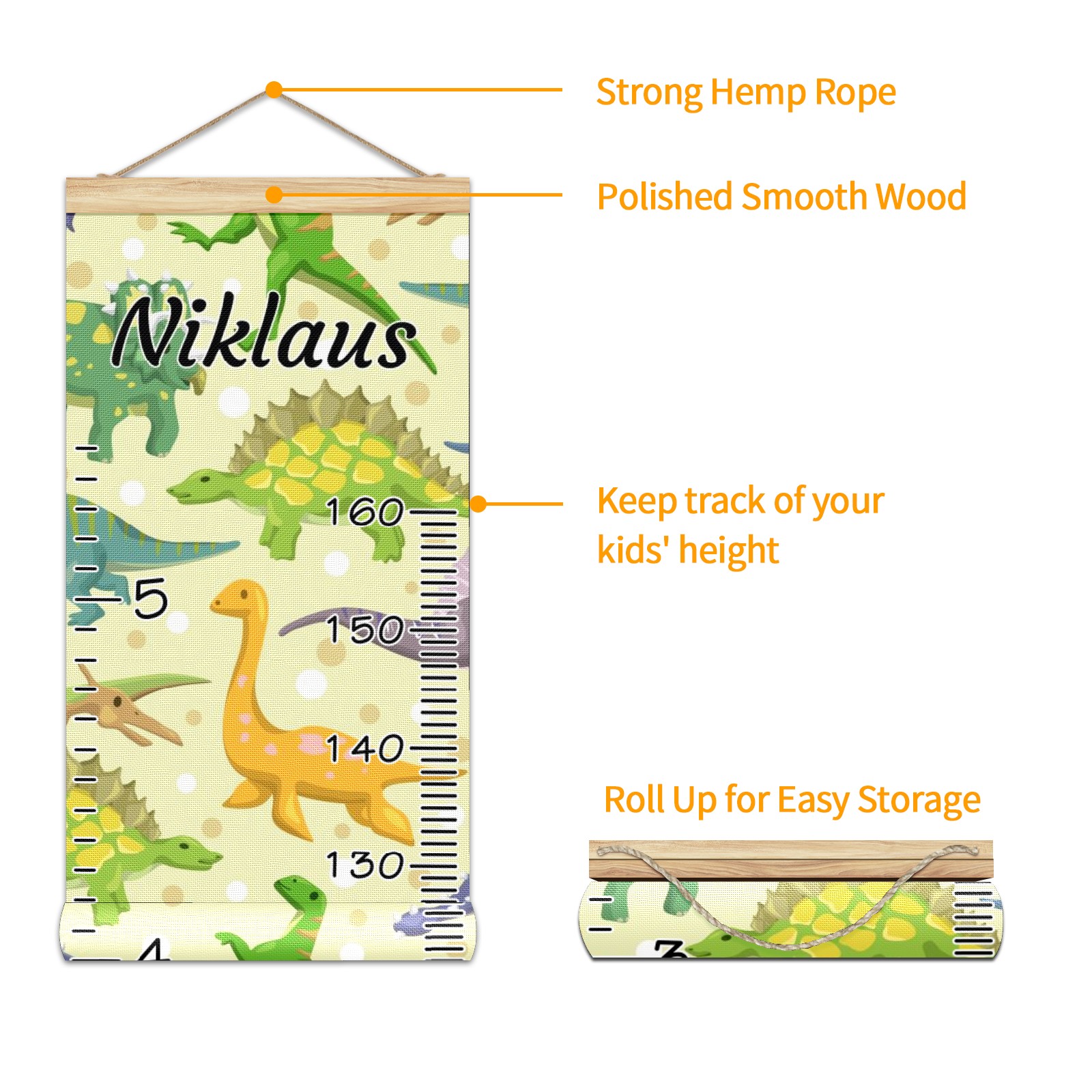 Personalized Kids Name Growth Chart Ruler for Wall Wood Frame Canvas Height Measure Chart 13.4x56 in Hanging Growth Chart Cartoon Dinosaur Animal2.8 Boys Girls Room Decor