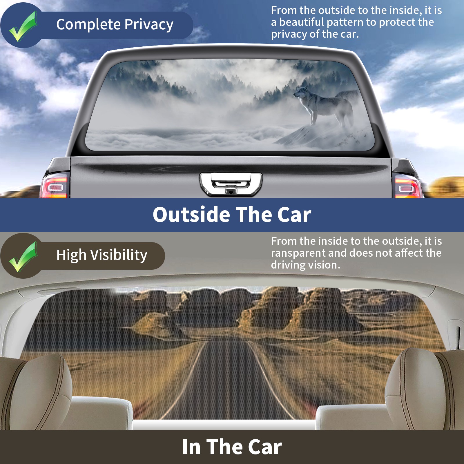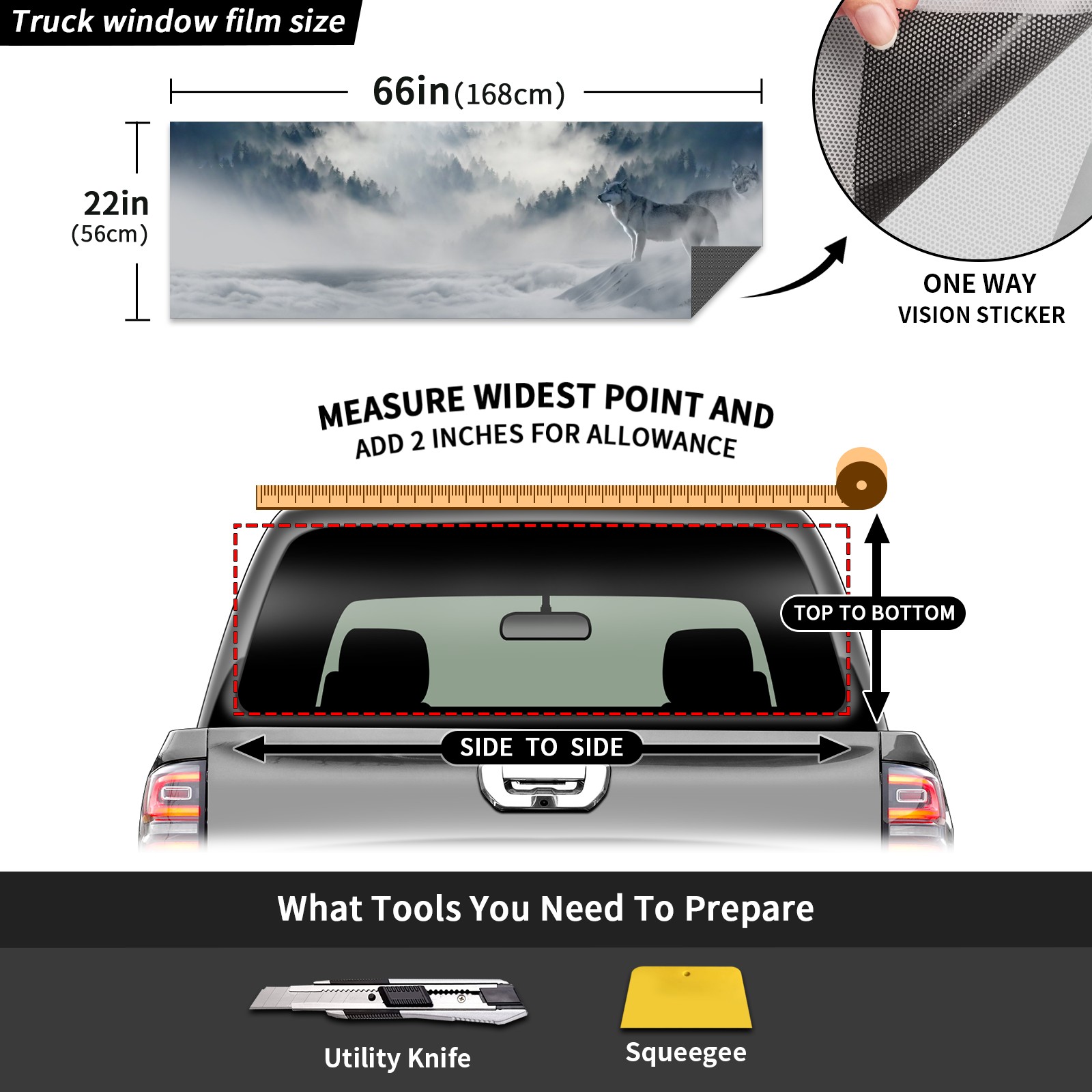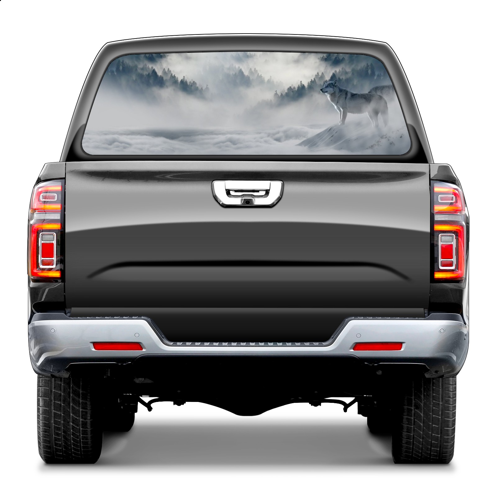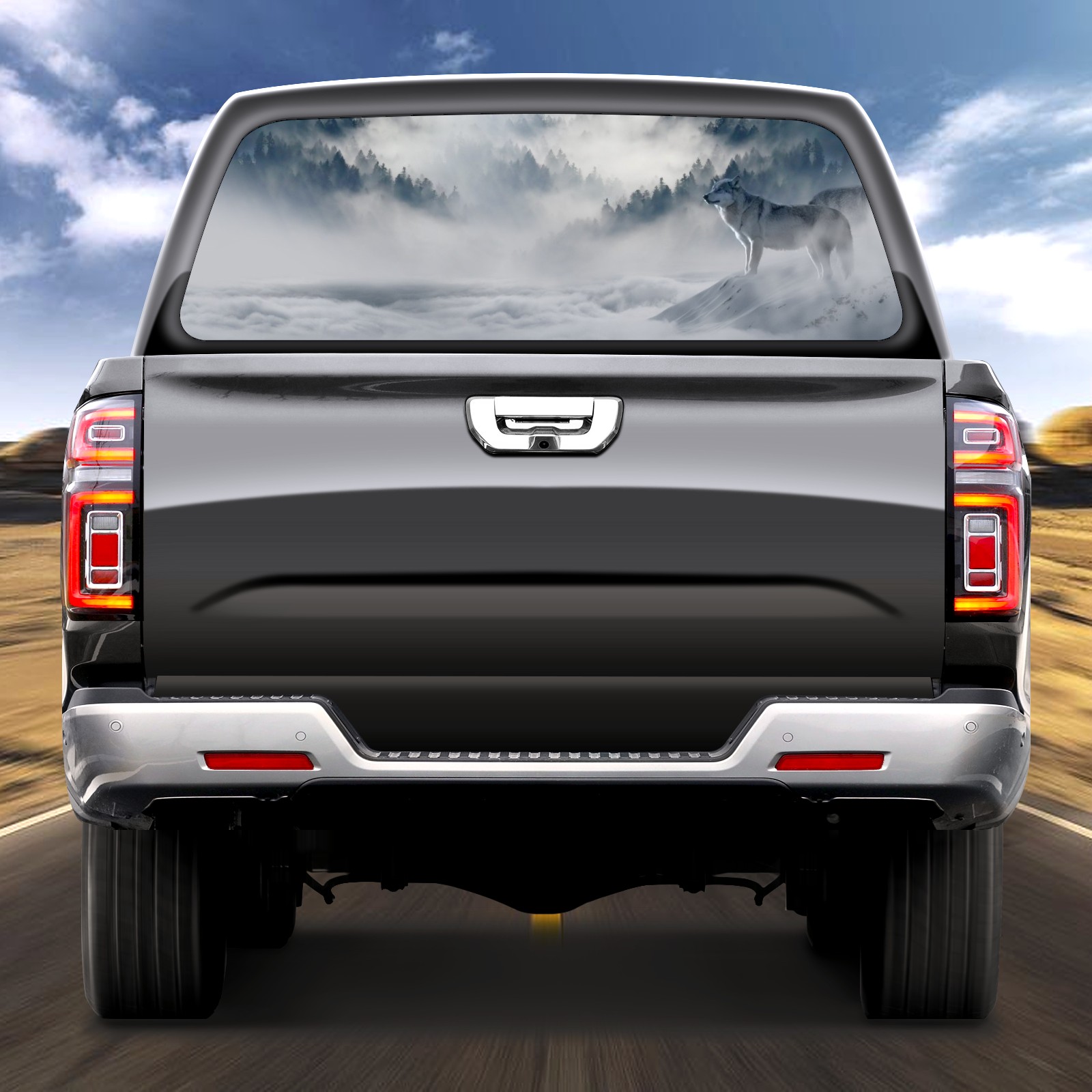 Wolf Wolves Snow Wintry Forest Animals Rear Window Decals for Trucks- Pickup Car Window Stickers Decal- Truck Back Window Tint Decal Graphic Perforated Vinyl Truck Stickers 66" X 22"