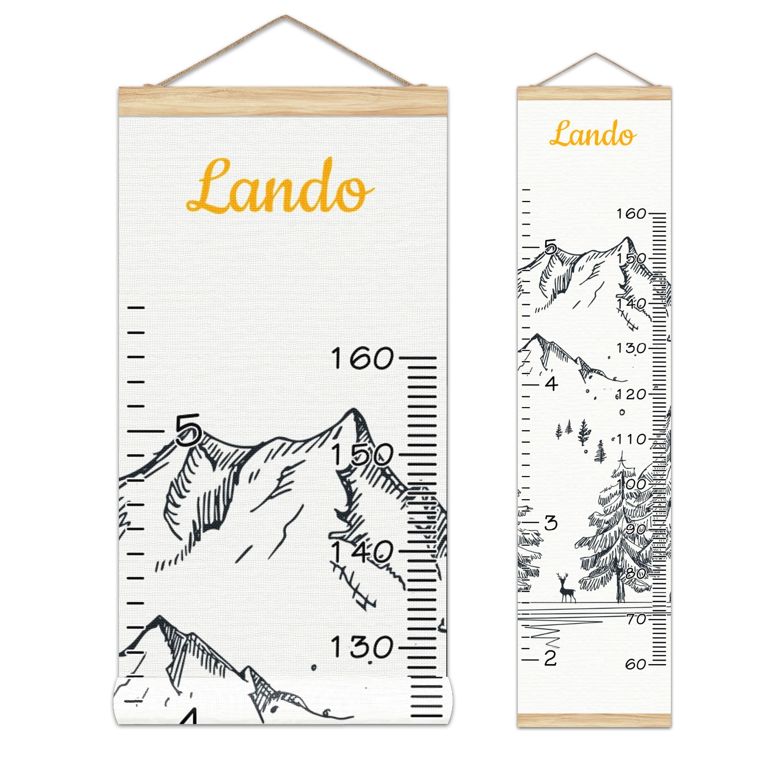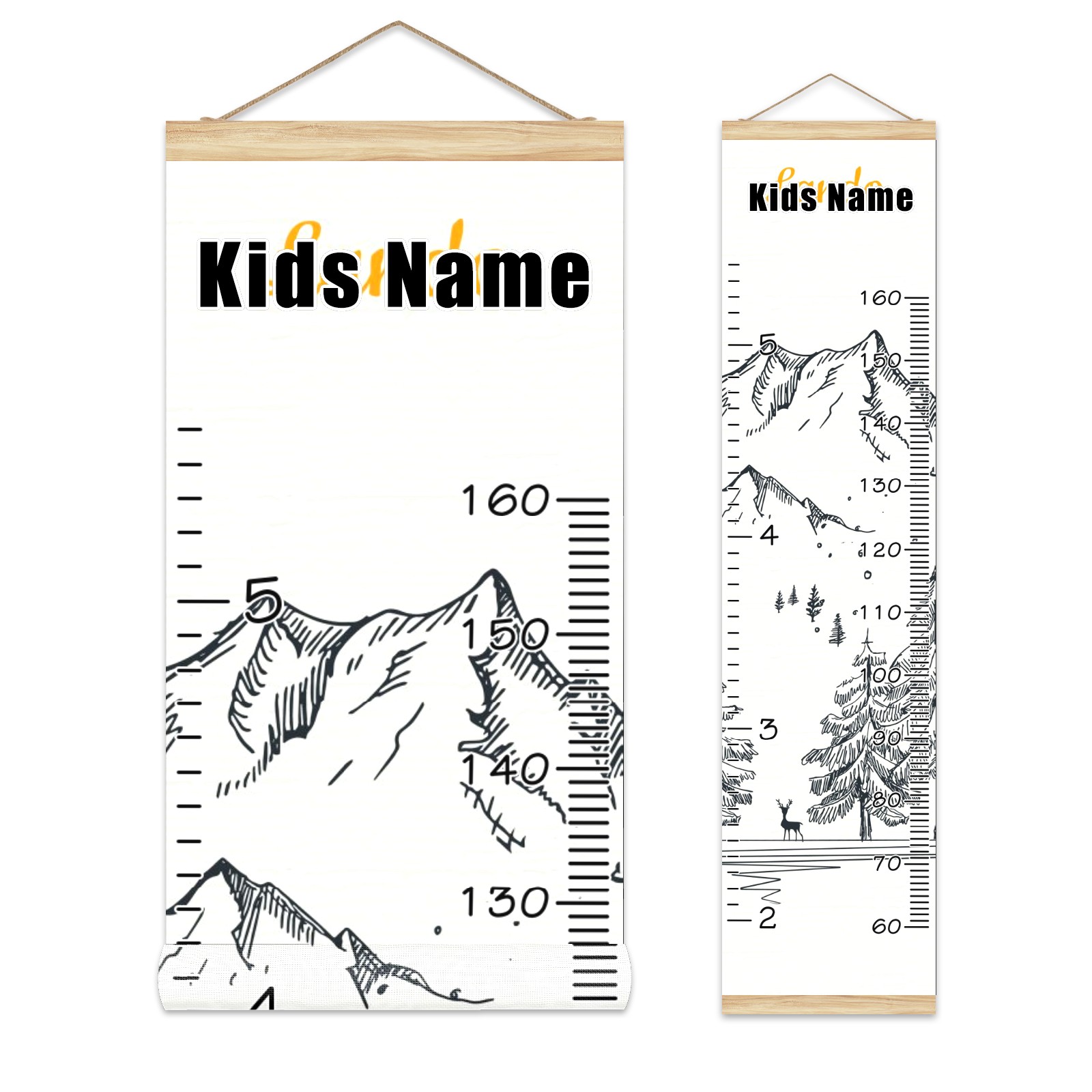 Personalized Kids Name Growth Chart Ruler for Wall Wood Frame Canvas Height Measure Chart 13.4x56 in Hanging Growth Chart Winter Mountain2.10 Boys Girls Room Decor