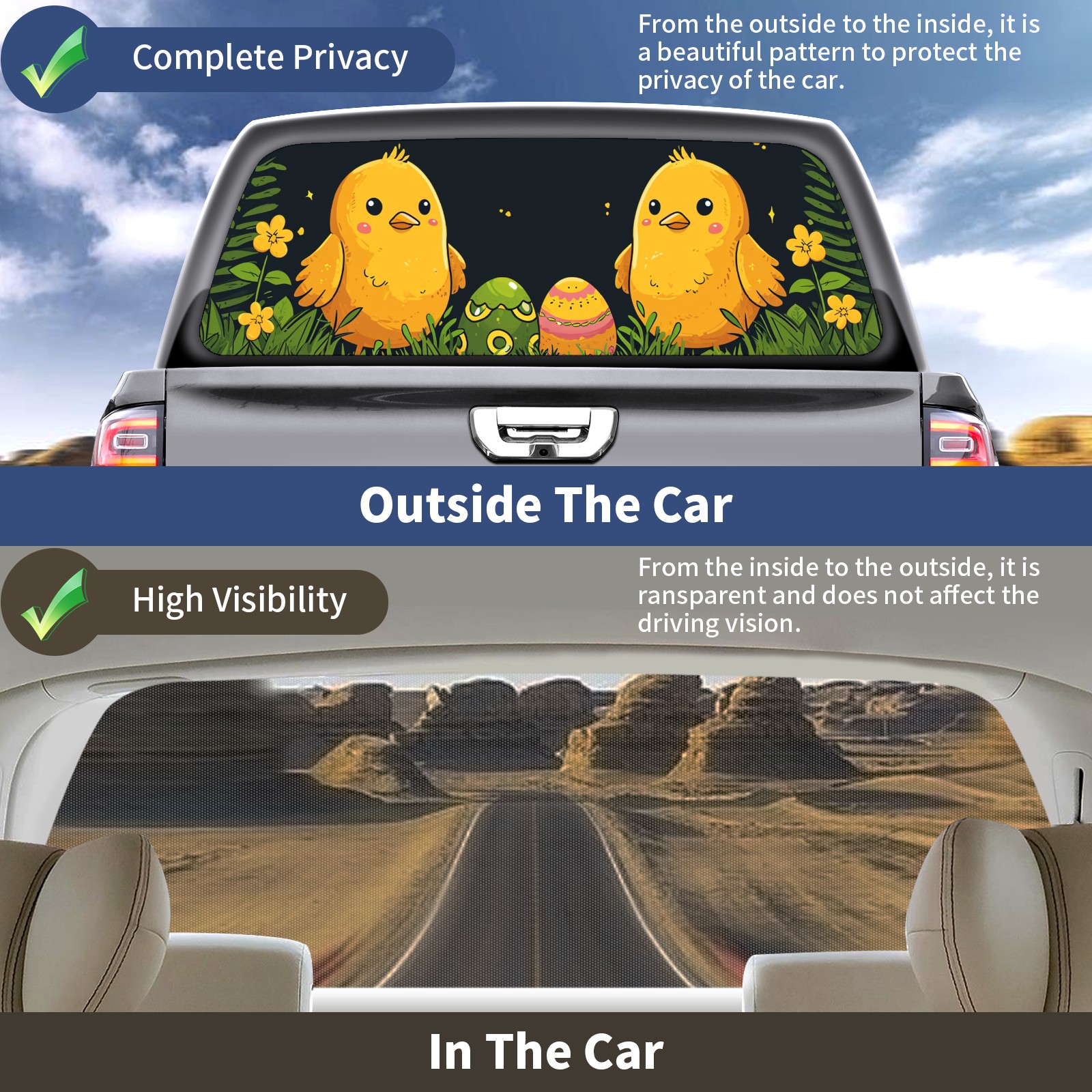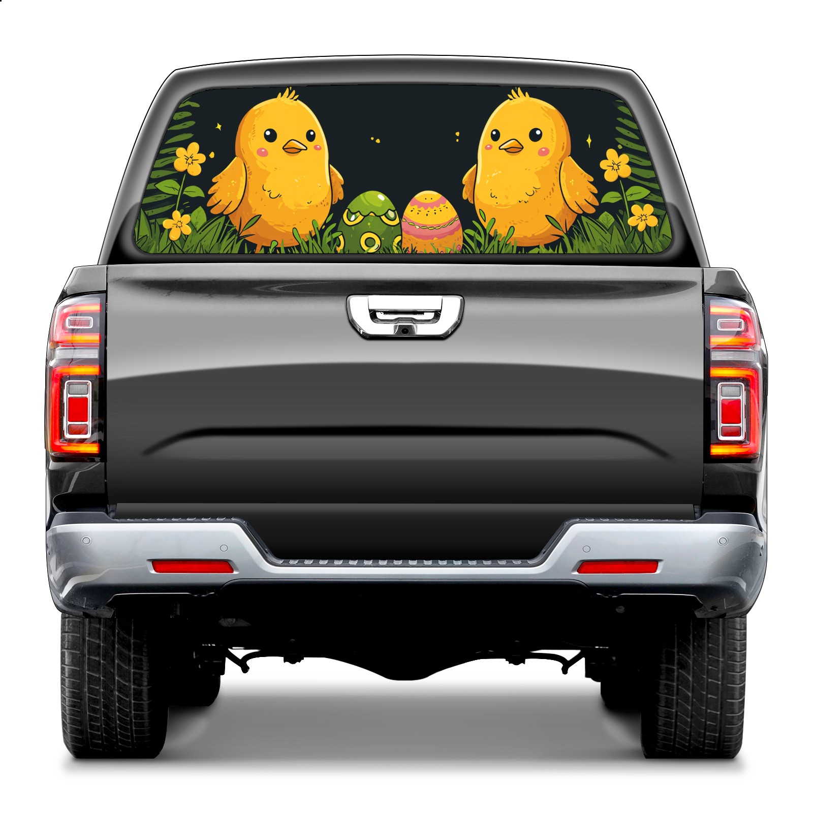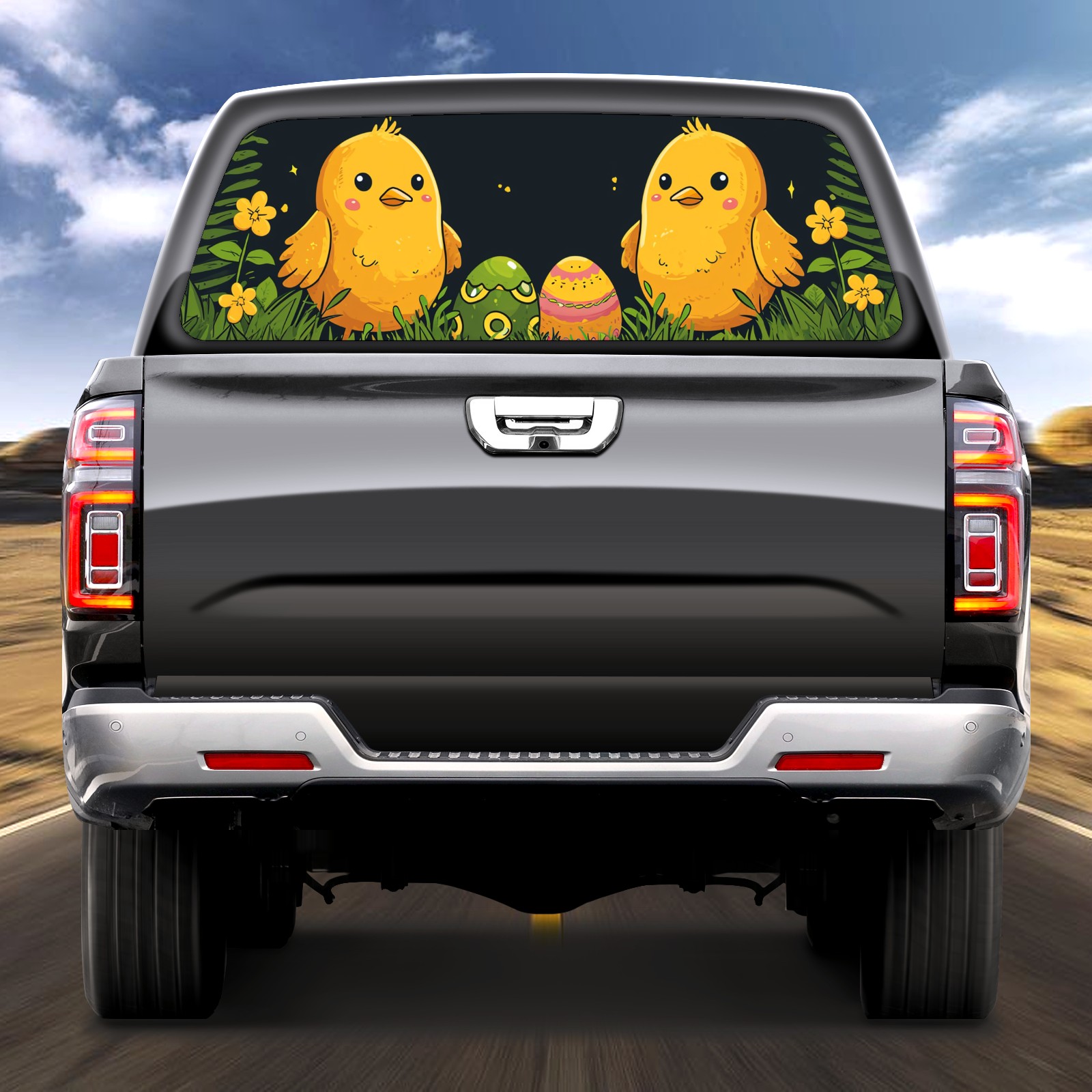 Easter Chick(9) Rear Window Decals for Trucks- Pickup Car Window Stickers Decal- Truck Back Window Tint Decal Graphic Perforated Vinyl Truck Stickers 66" X 22"