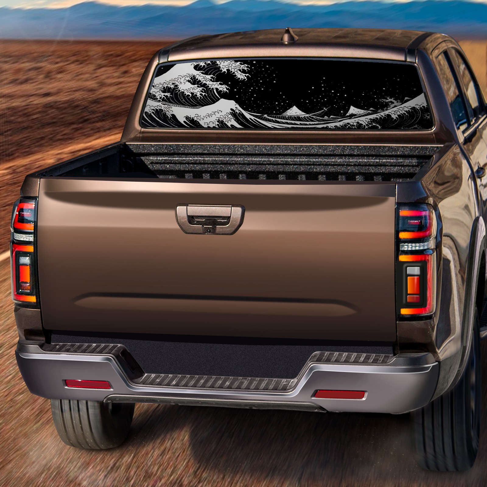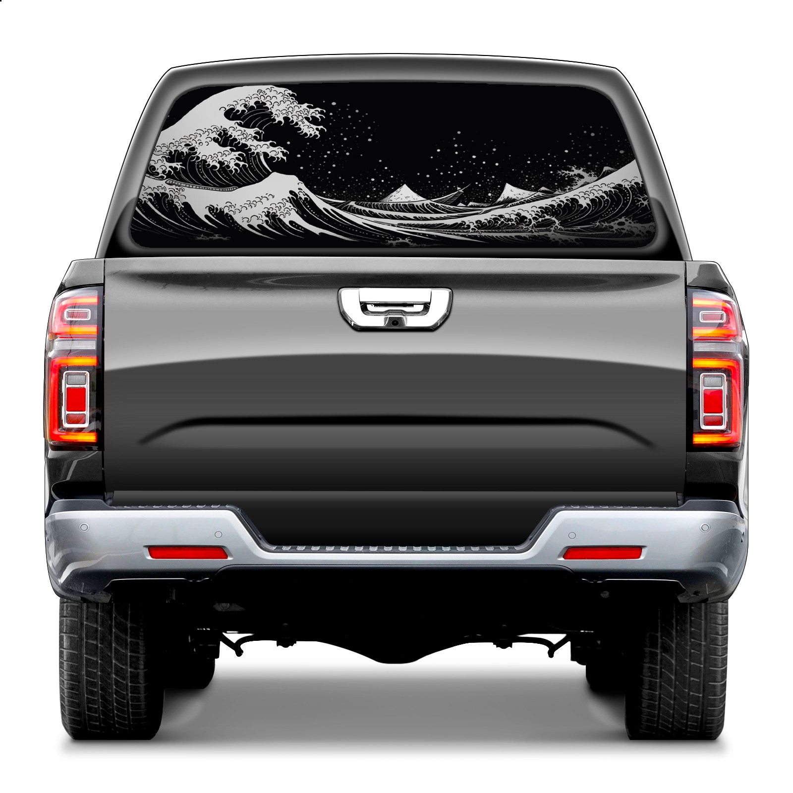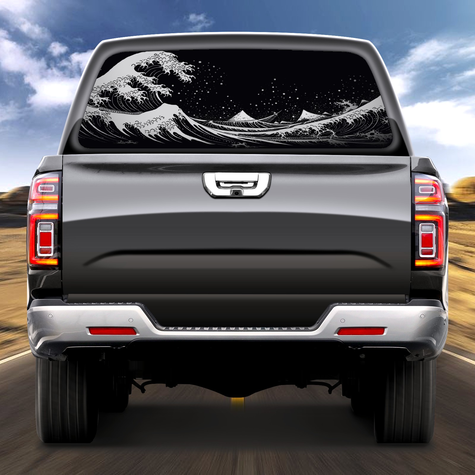 Black White Wave (1) Rear Window Decals for Trucks- Pickup Car Window Stickers Decal- Truck Back Window Tint Decal Graphic Perforated Vinyl Truck Stickers 66" X 22"