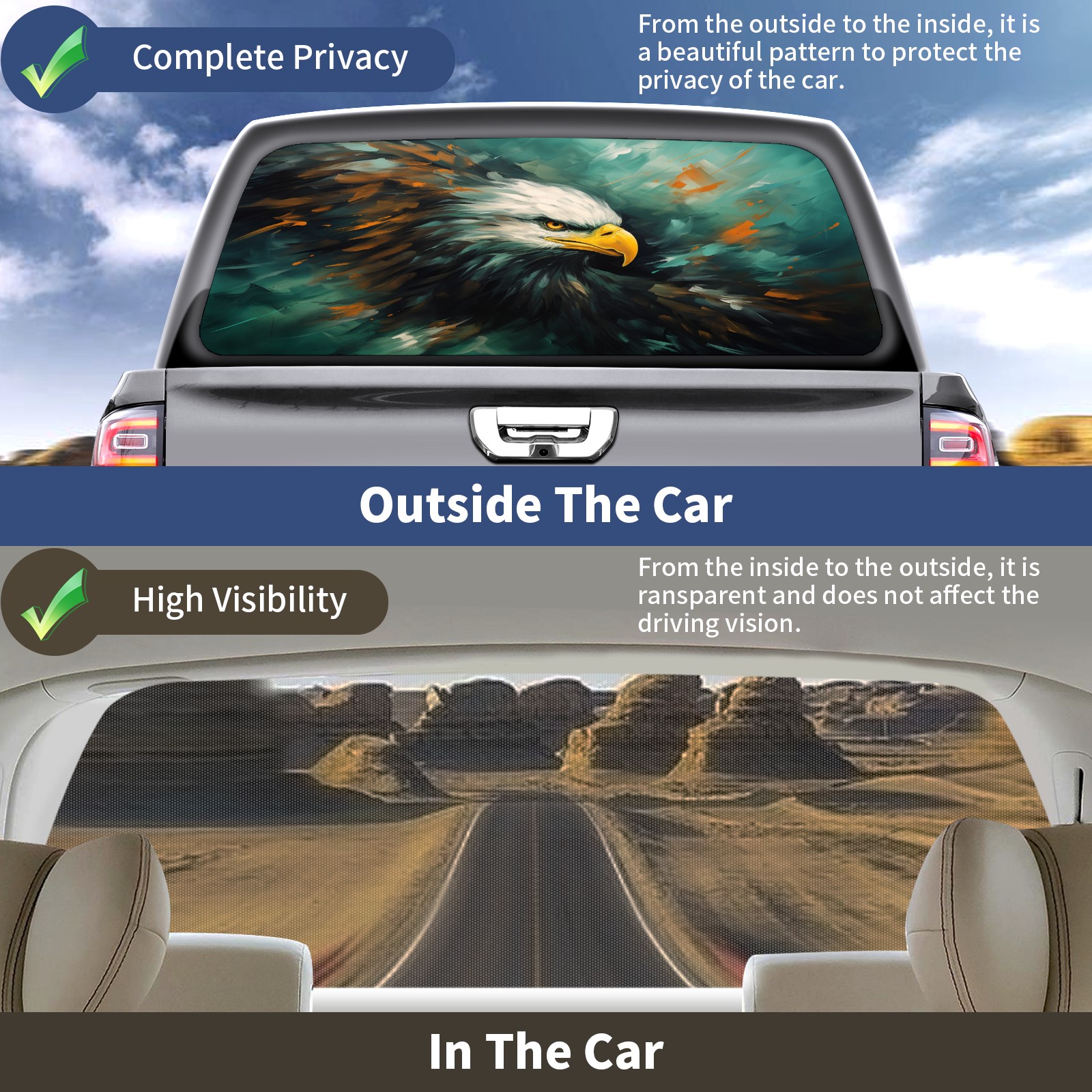 Eagle 26 Rear Window Decals for Trucks- Pickup Car Window Stickers Decal- Truck Back Window Tint Decal Graphic Perforated Vinyl Truck Stickers 66" X 22"