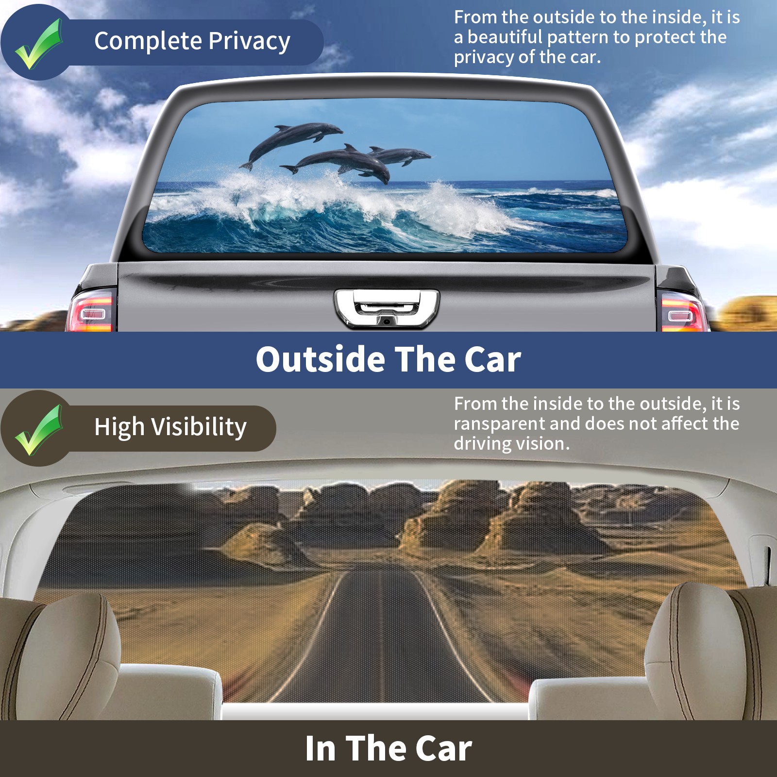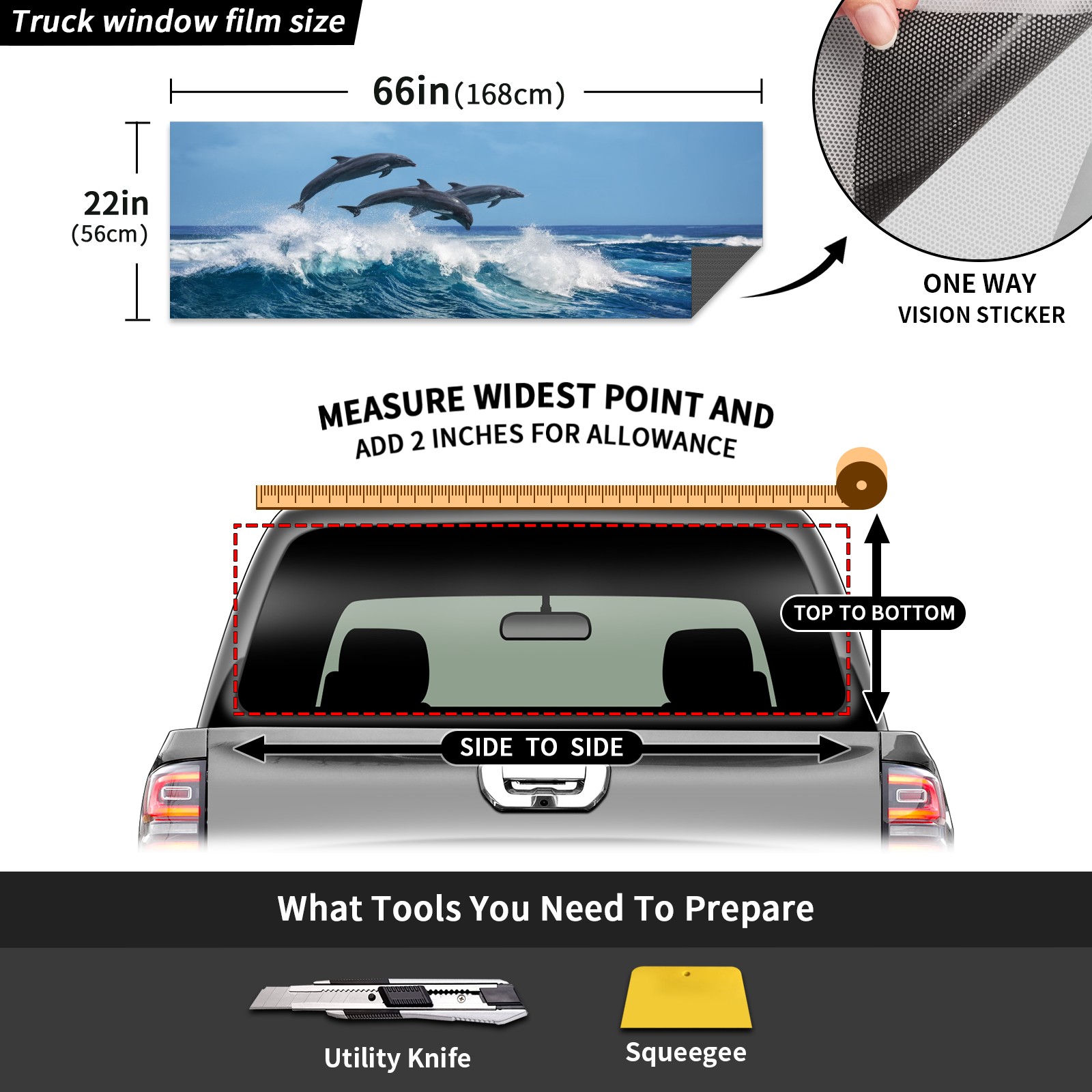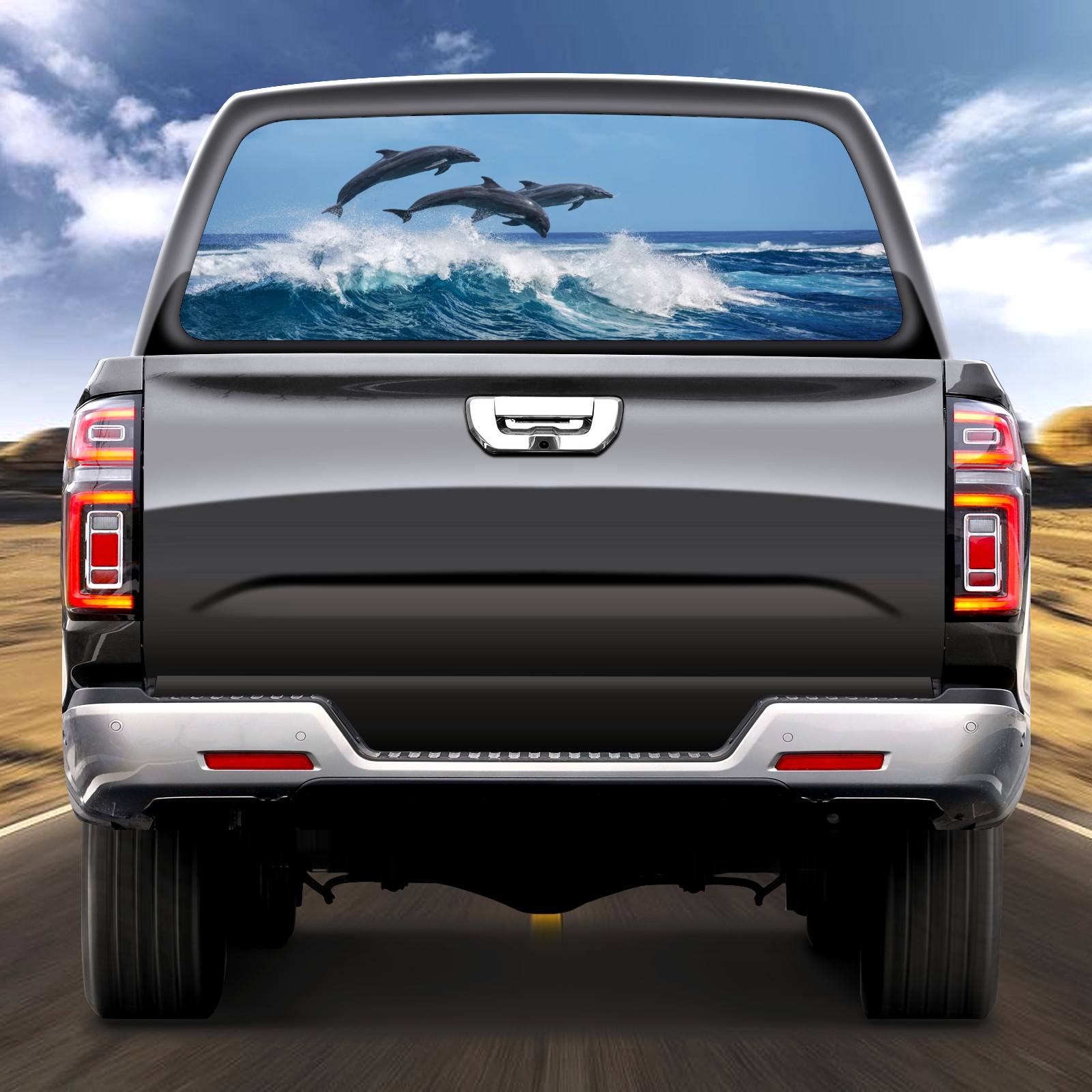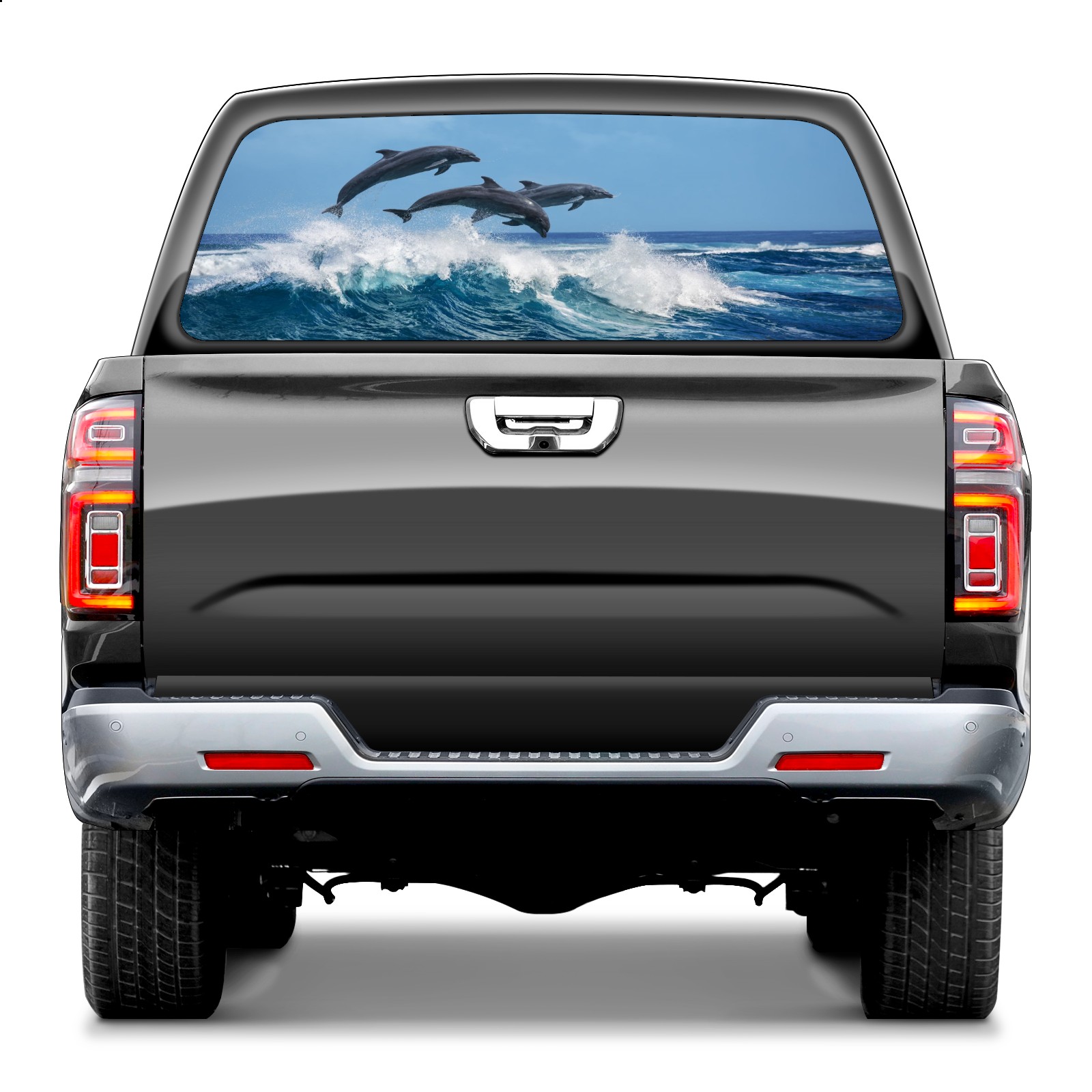 Three Sea Dolphin Surfing Rear Window Decals for Trucks- Pickup Car Window Stickers Decal- Truck Back Window Tint Decal Graphic Perforated Vinyl Truck Stickers 66" X 22"