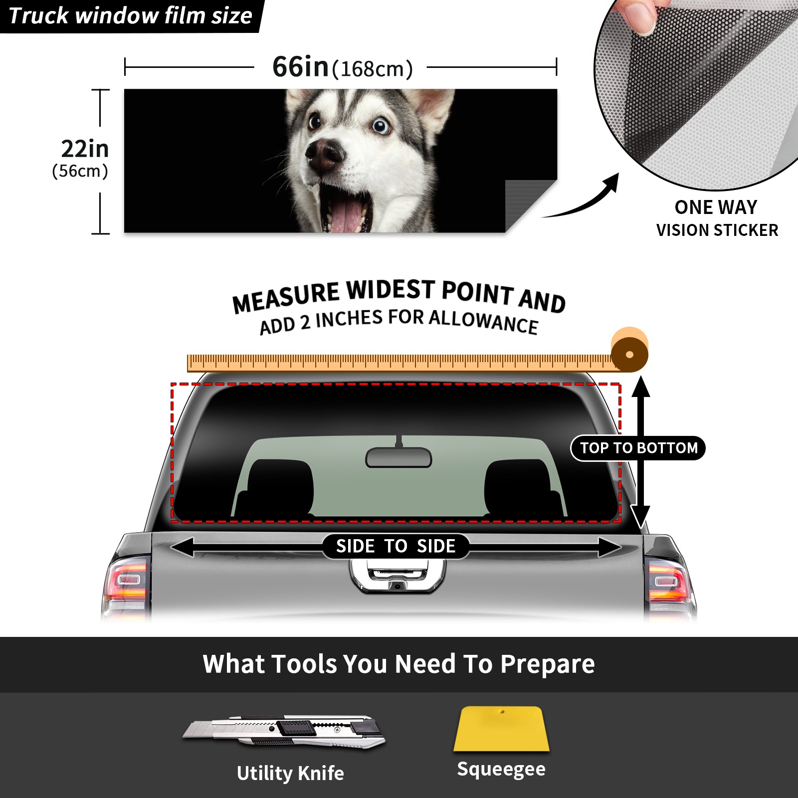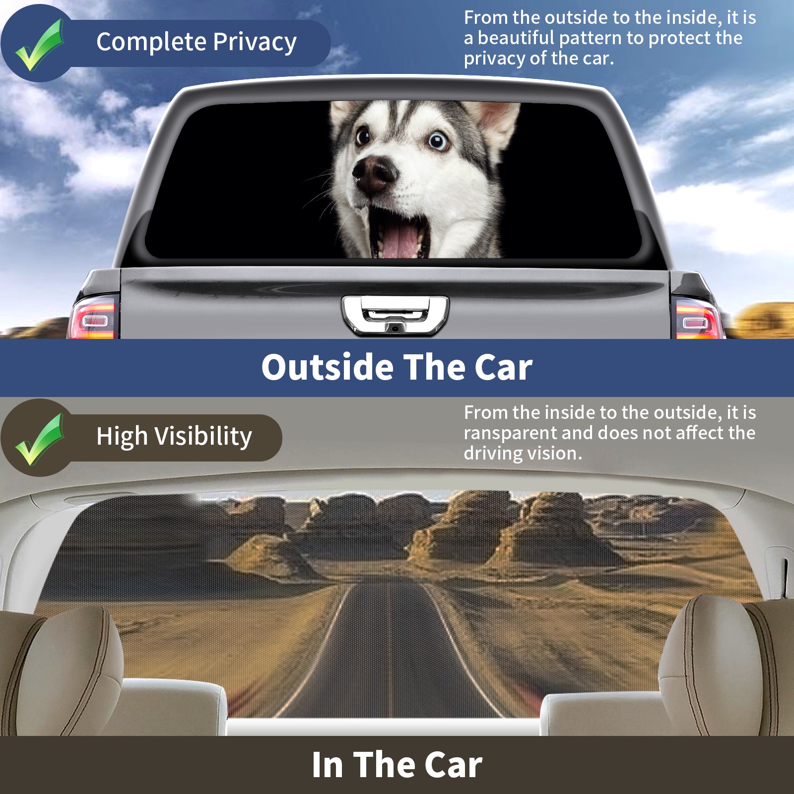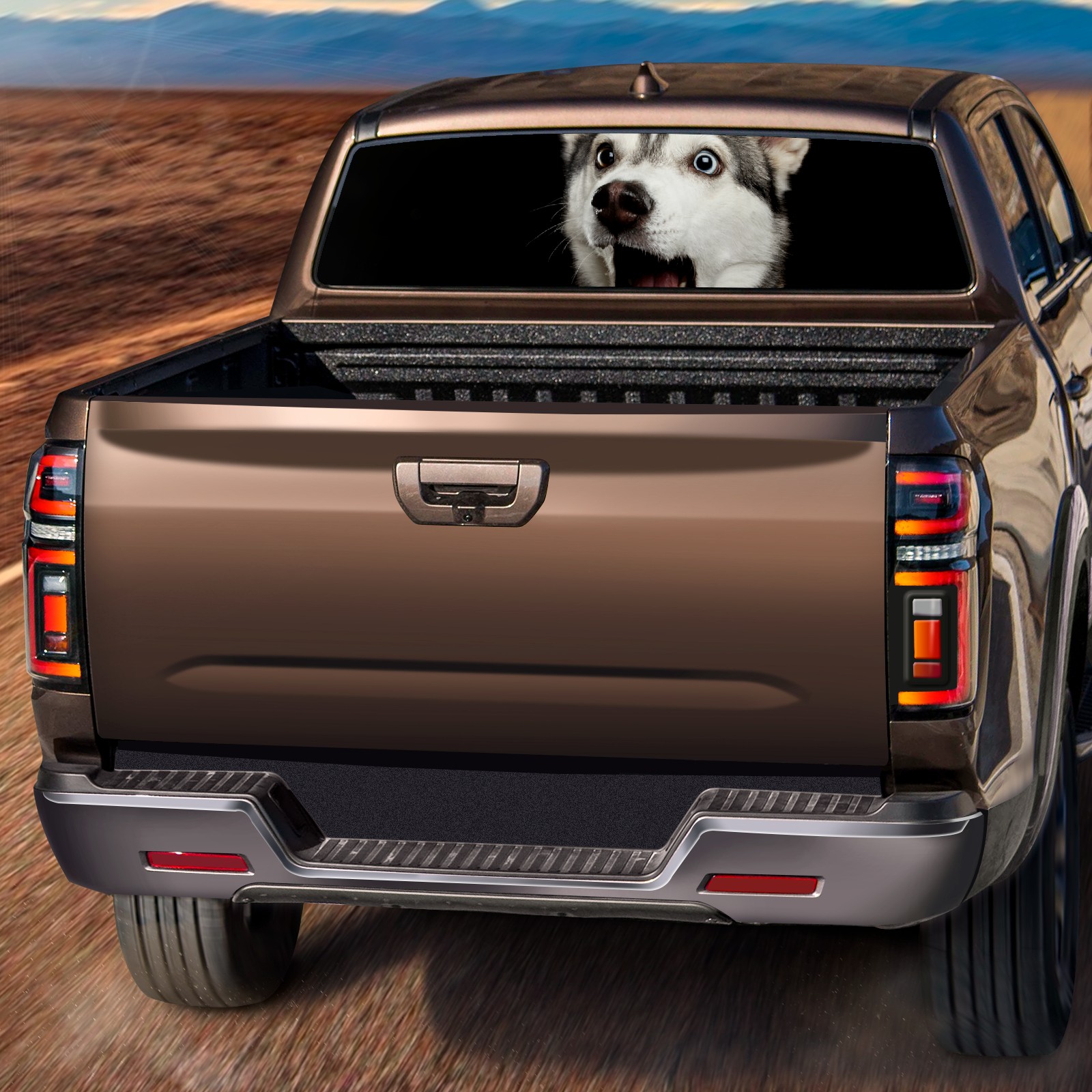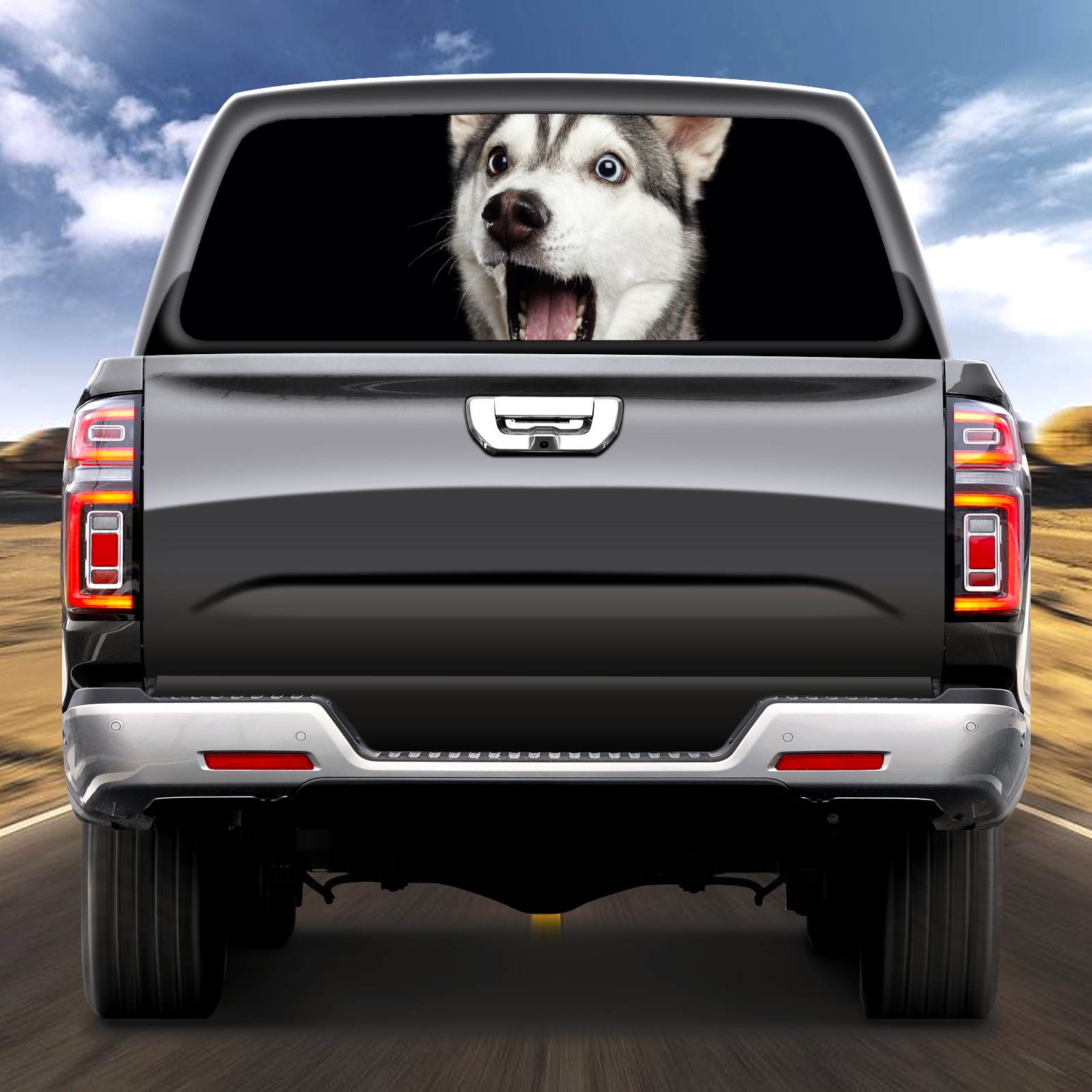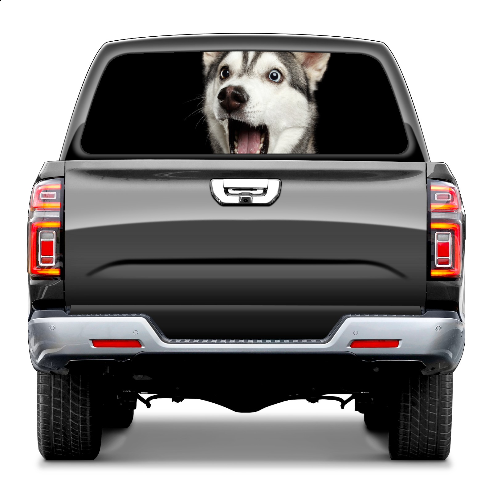 Swiss Husky Dog Howl Rear Window Decals for Trucks- Pickup Car Window Stickers Decal- Truck Back Window Tint Decal Graphic Perforated Vinyl Truck Stickers 66" X 22"