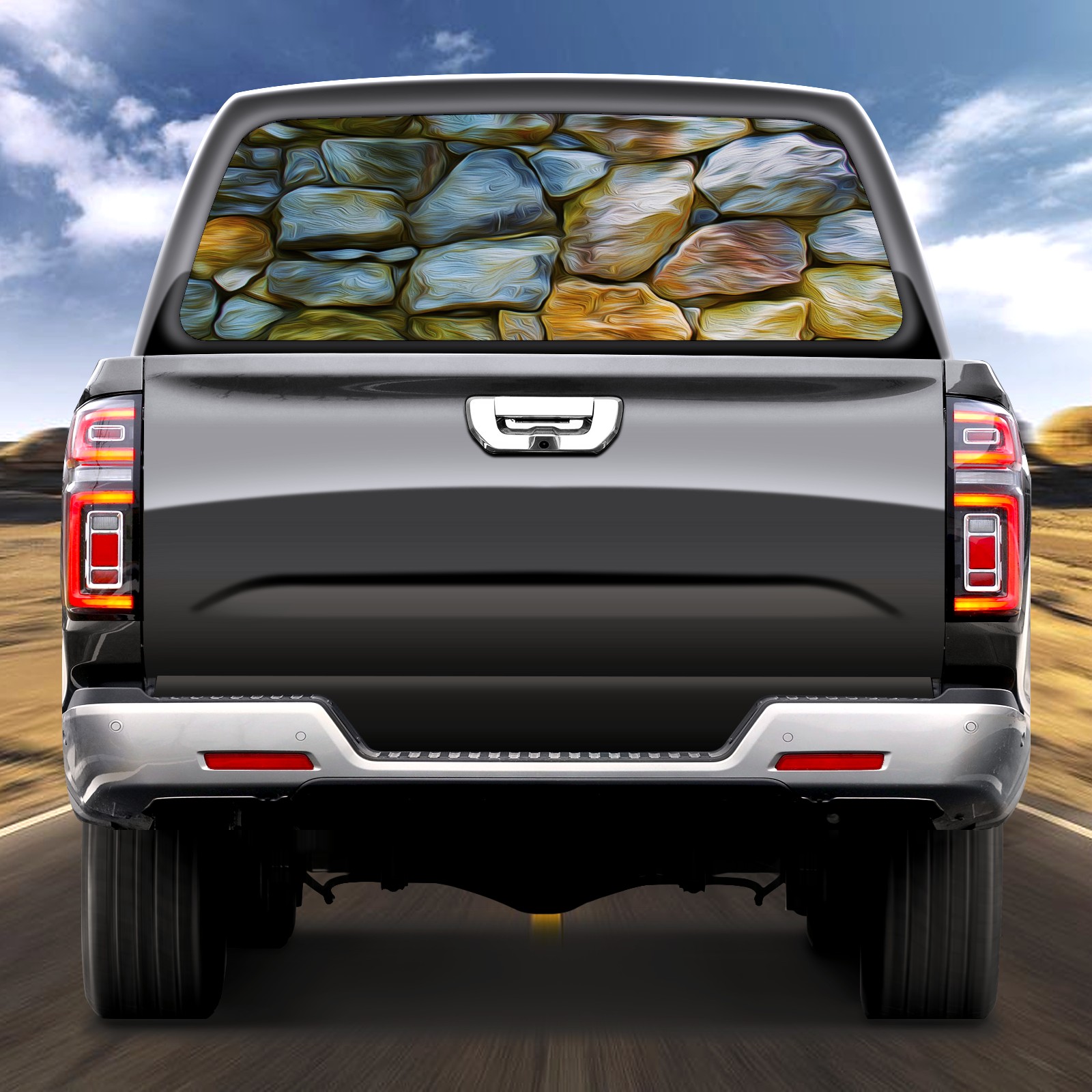 • ●<b>Truck Rear Window Graphics Decals Pickup Trucks Back Window Film Stickers 66" x 22" Perforated Vinyl Wrap Stickers Decorations for Car Rear Window.</b><br> <br> <b>Features :</b><br> - Size of the rear window decals for trucks is 66x22 Inches (168x56cm).<br> - High quality perforated vinyl window film, one way vision sticker.<br> - Perforated is see through from the inside but not from outside.<br> - Clear printing, waterproof and continued.<br> - The car back window graphics stickers fits most truck and makes your vehicle more beautiful.<br> <br> <b>【Installation Instructions】</b><br> <b>1. CLEAN SURFACE - </b>Clean the rear window thoroughly and make sure the surface clean.<br> <b>2. STICK THE DECALS - </b>Tear off the paper on the back and stick the decal on the window.<br> <b>3. SCRAPE OFF AIR BUBBLES - </b>Use a squeegee or other card to scrape off the excess air bubbles.<br> <b>4. TRIM THE EXCESS -</b> Use a knife to cut off the excess stickers of the window, finally complete.<br> 1. Please measure the size before purchasing, back window graphics decal for truck can be cut to your desired size.<br> 2.The graphics stickers for truck back window is a great gift for yourself also can as a birthday / halloween / christmas gift for your friends and family.<br> <b>Decorate Your Pickup Truck With Rear Window Decal Today!</b>