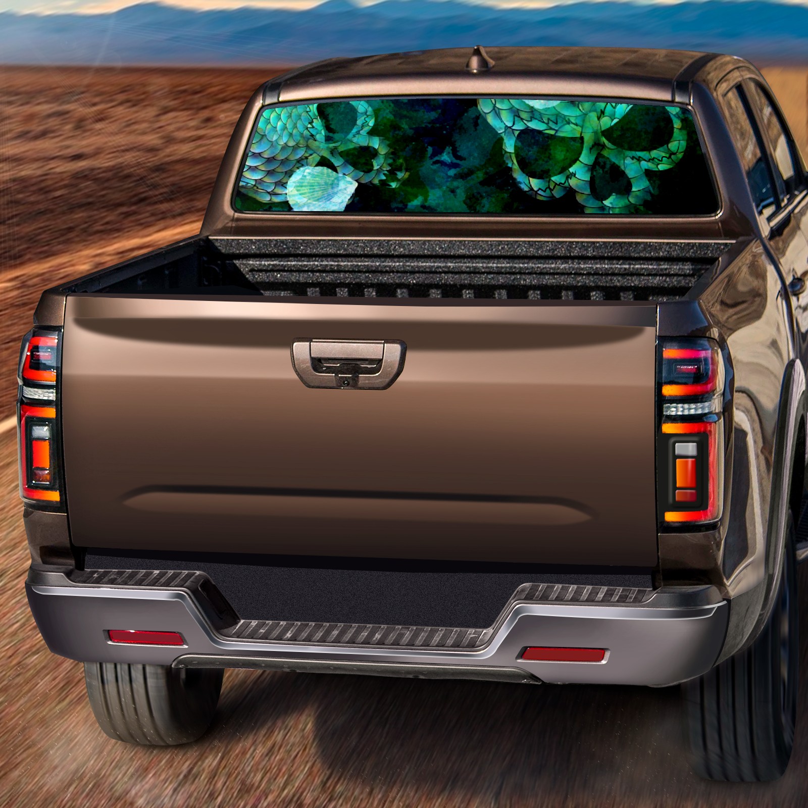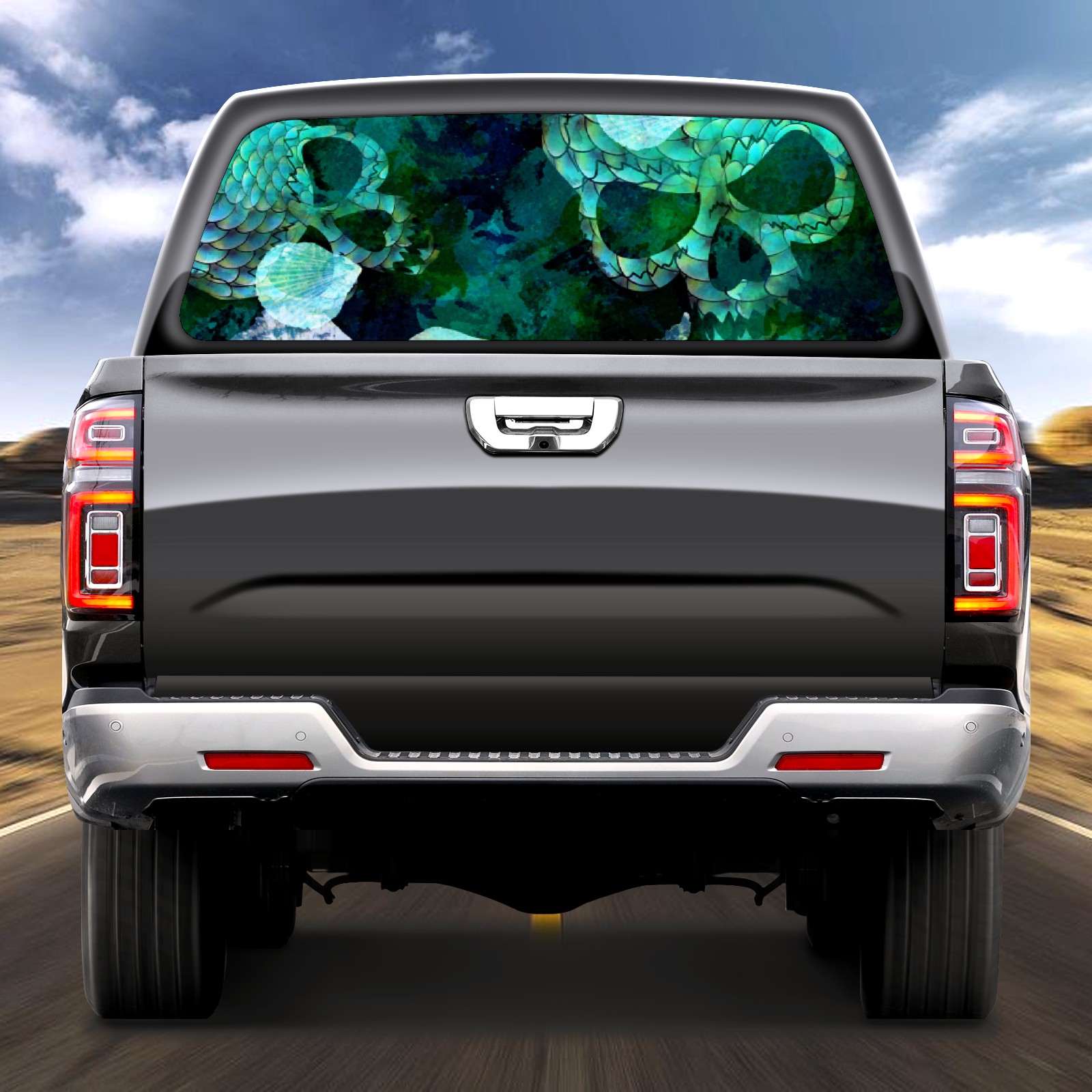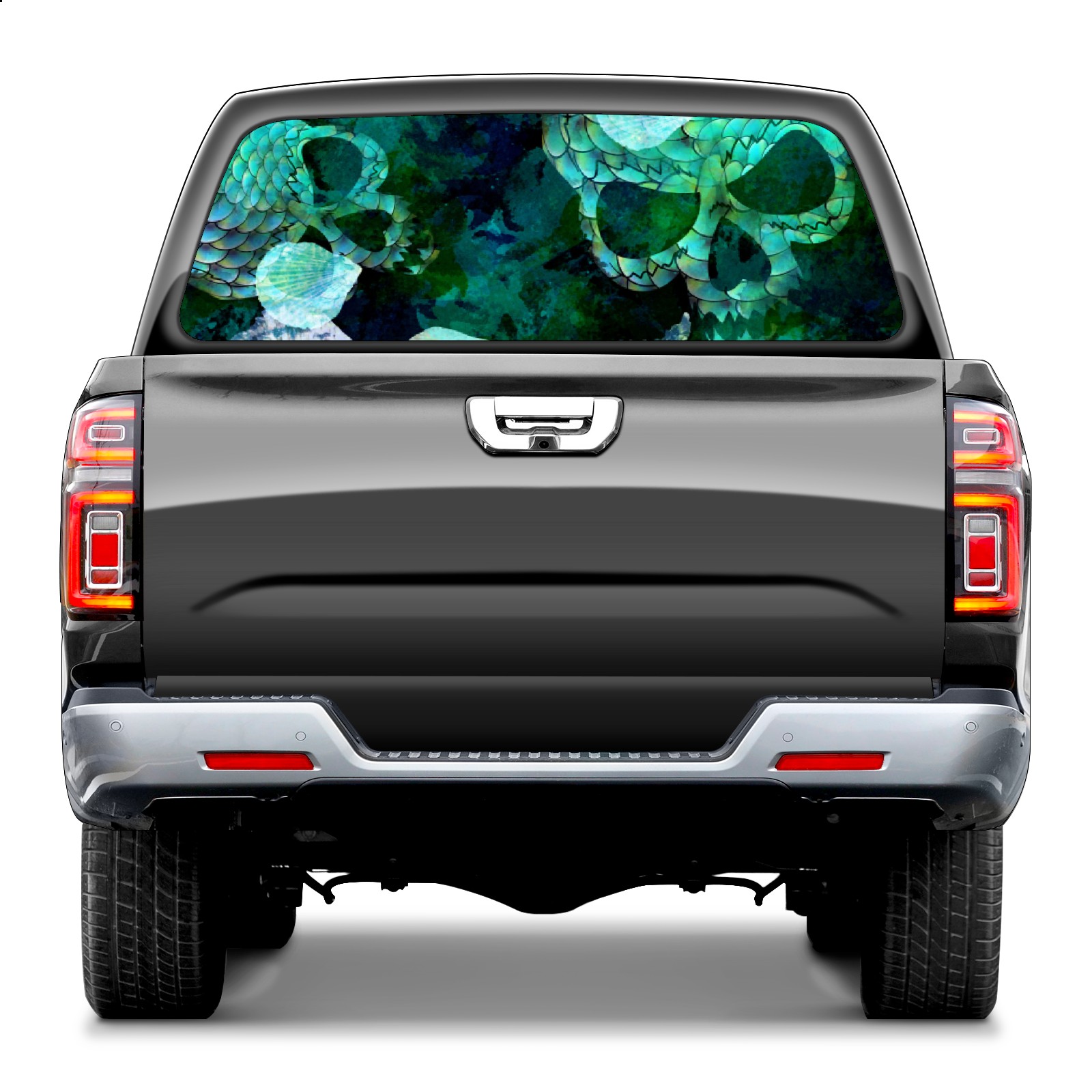 Turquoise Skull Fish Scales Rear Window Decals for Trucks- Pickup Car Window Stickers Decal- Truck Back Window Tint Decal Graphic Perforated Vinyl Truck Stickers 66" X 22"