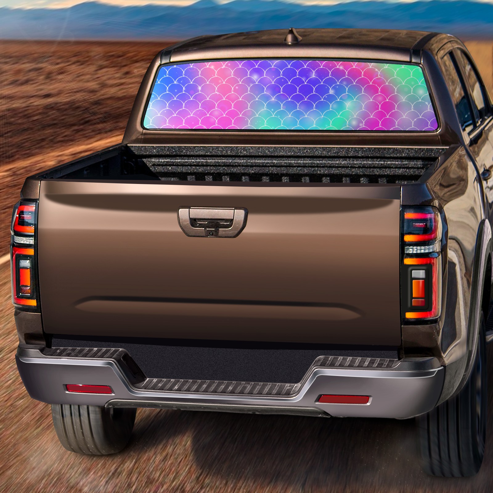 Fish Scales Rear Window Decals for Trucks- Pickup Car Window Stickers Decal- Truck Back Window Tint Decal Graphic Perforated Vinyl Truck Stickers 66" X 22"