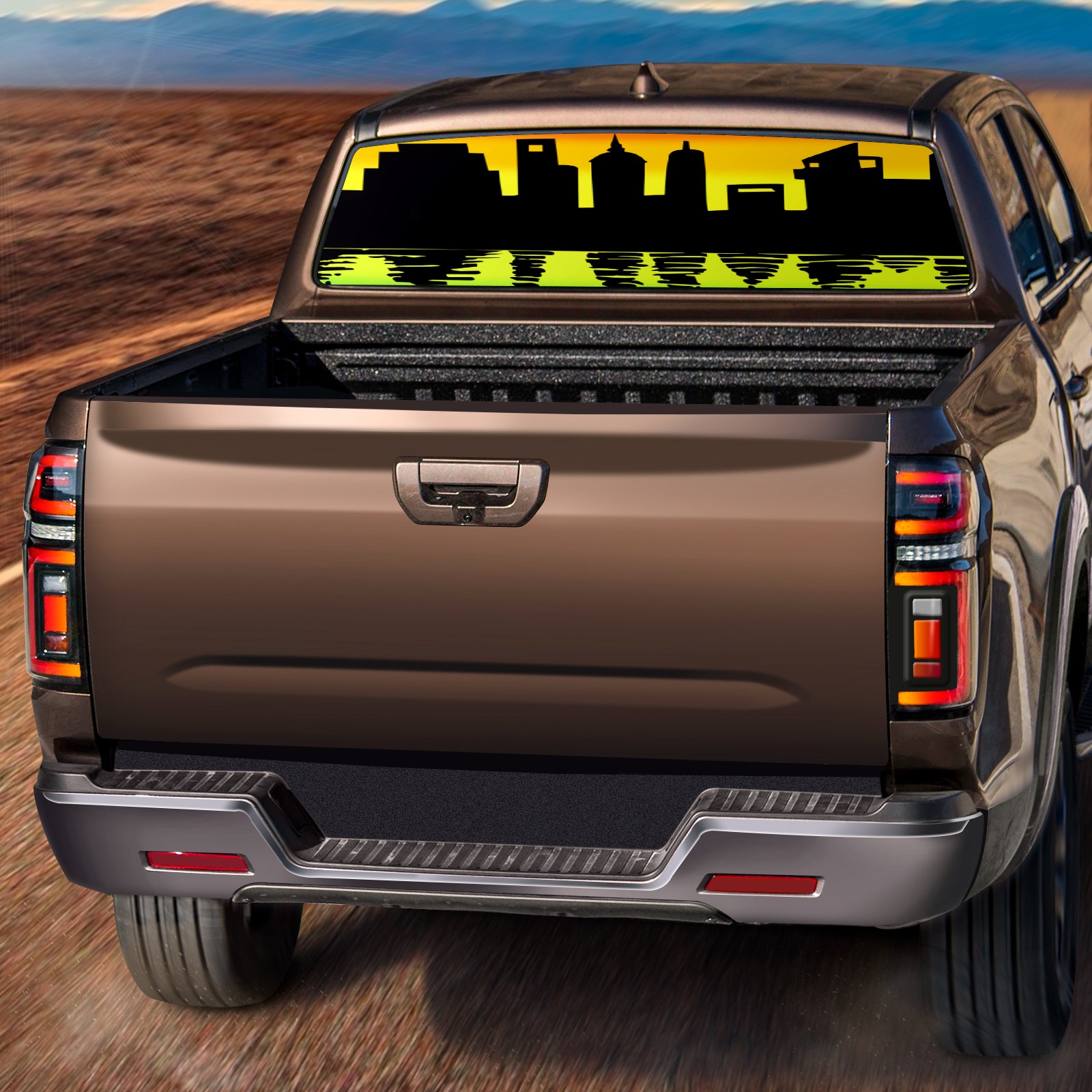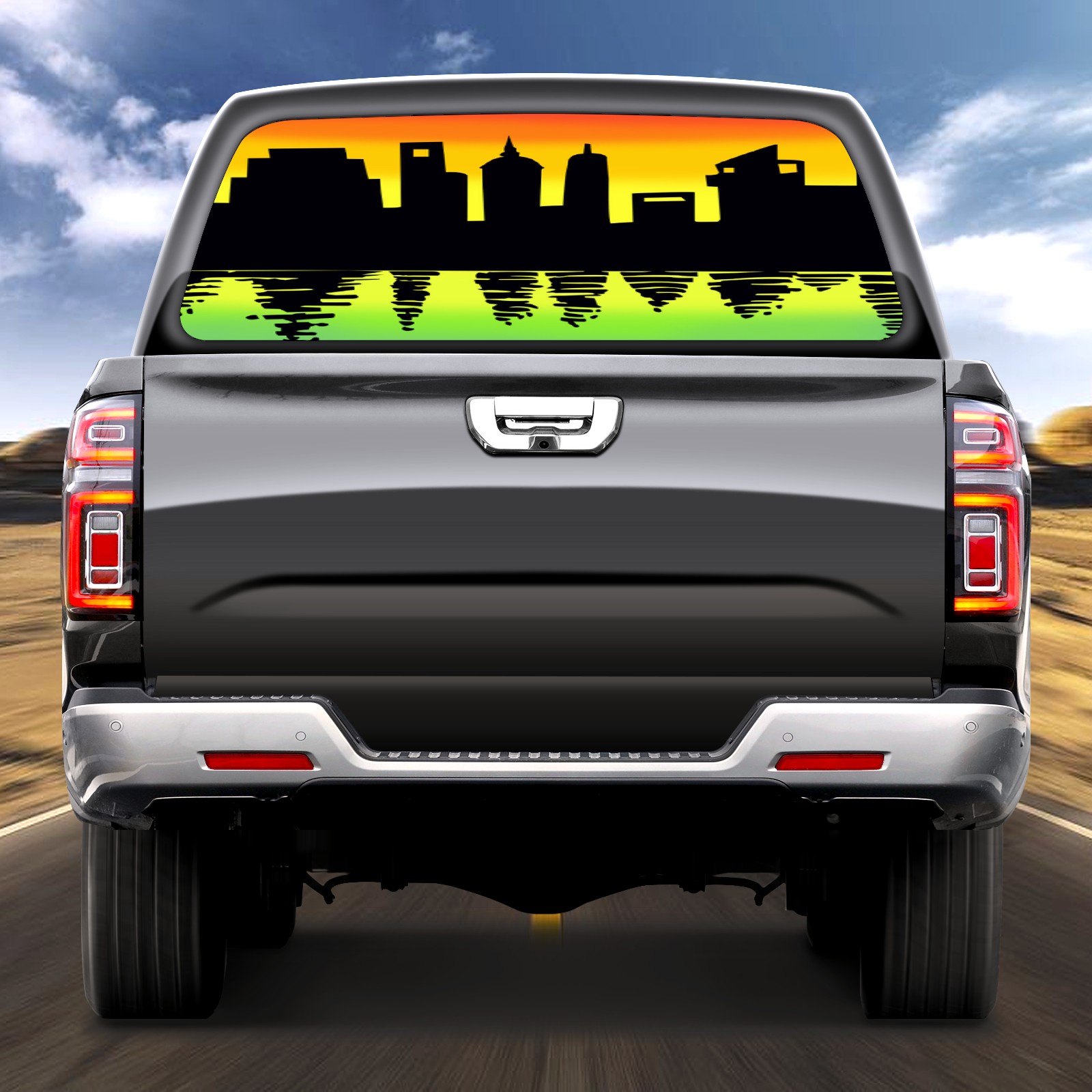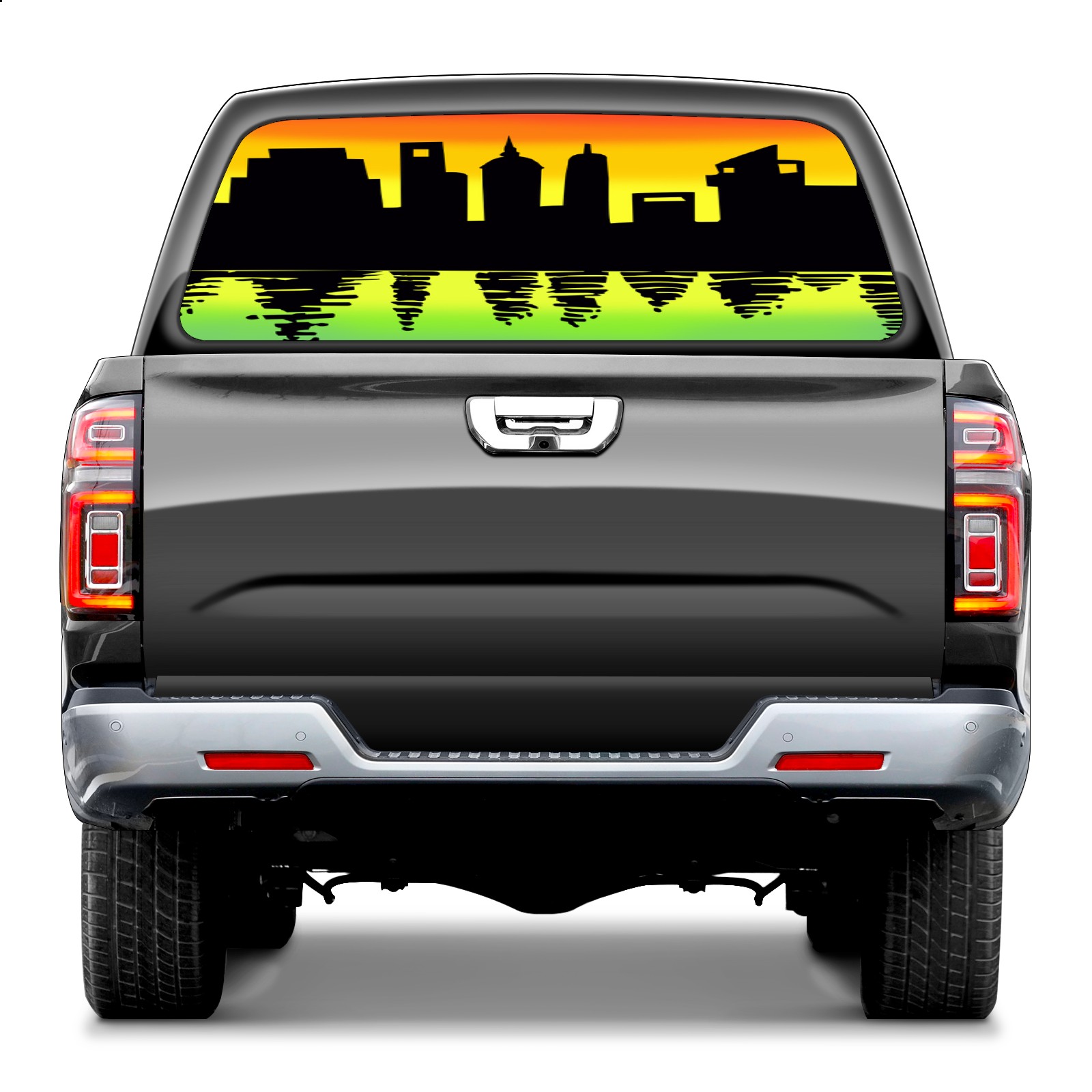 Reflection of city Rear Window Decals for Trucks- Pickup Car Window Stickers Decal- Truck Back Window Tint Decal Graphic Perforated Vinyl Truck Stickers 66" X 22"