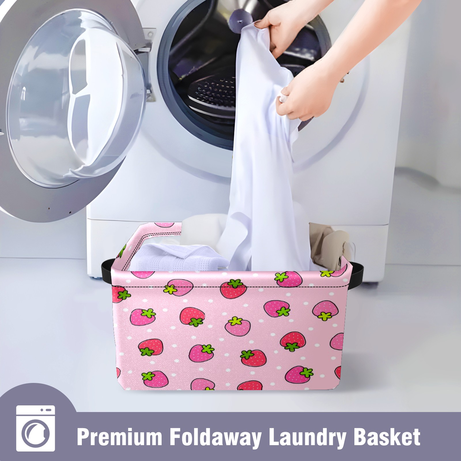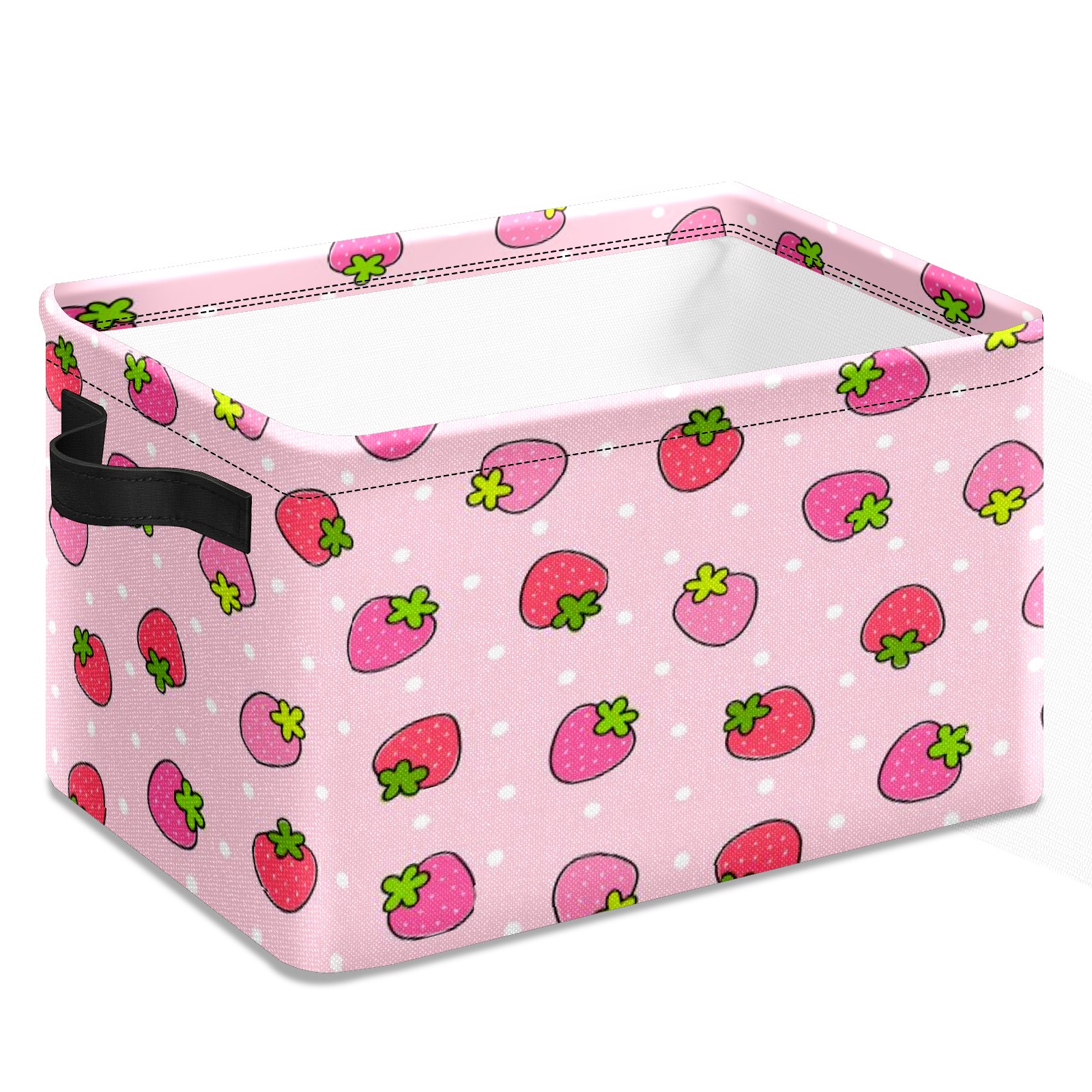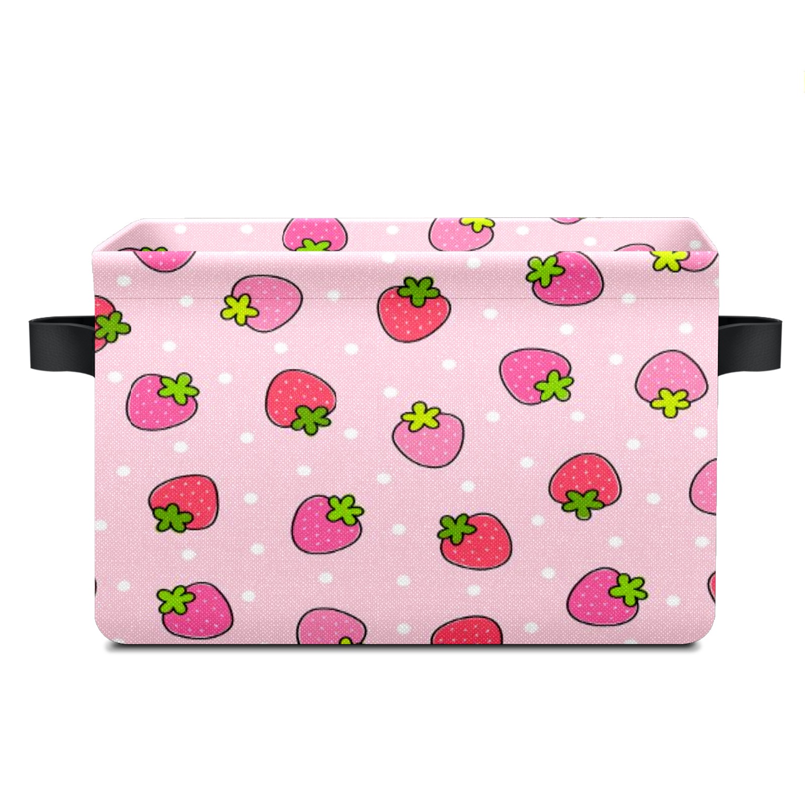 MSINMKOK Storage Basket Strawberry On Pink Fabric Storage Shelves Cubes - Collapsible Storage Bins Organizers for Home Toys Clothes Large Fabric Basket with Handles 14x10x8 inches