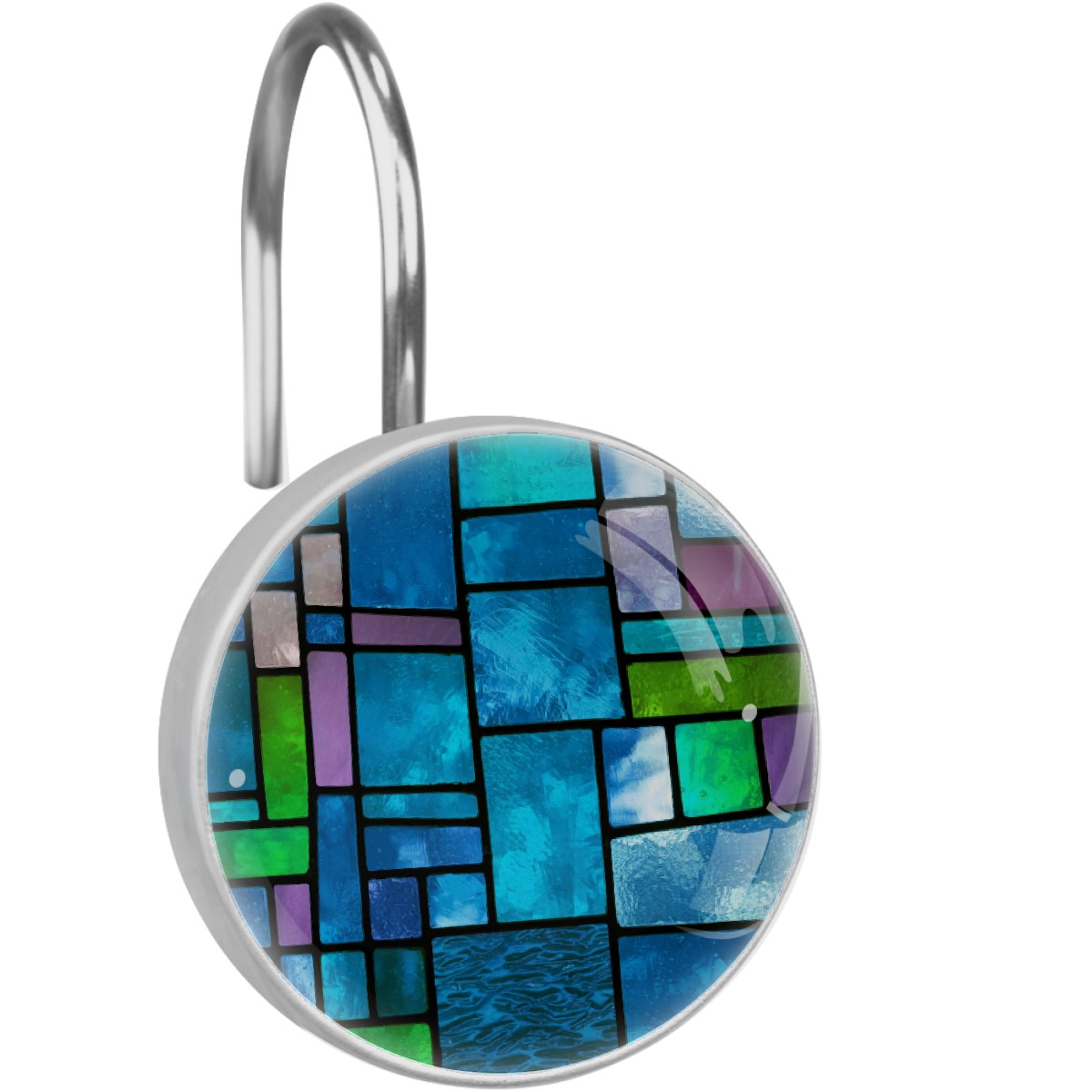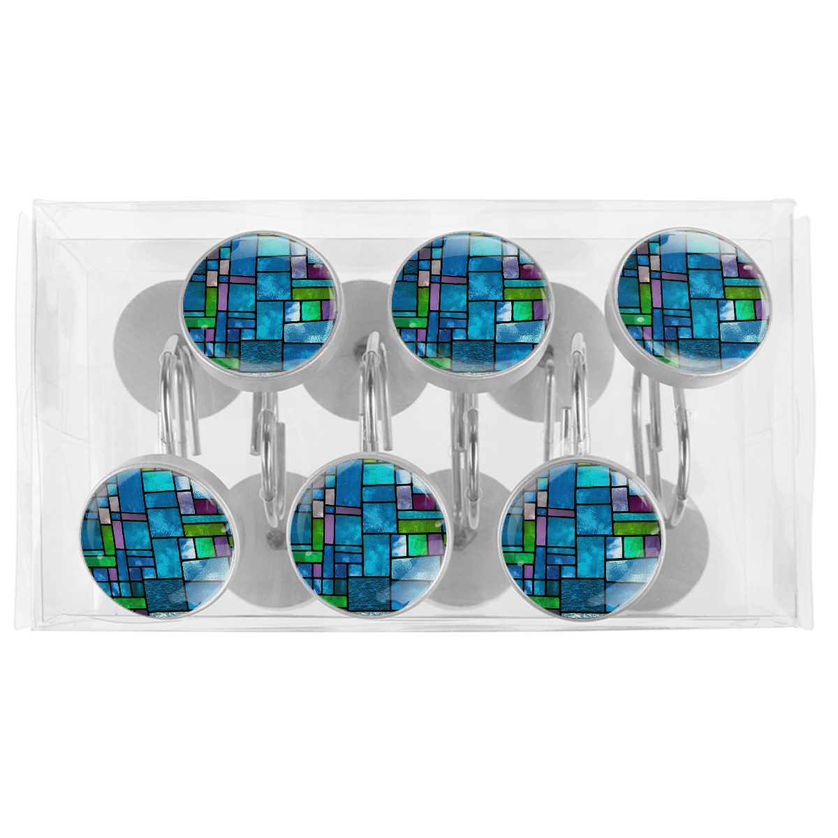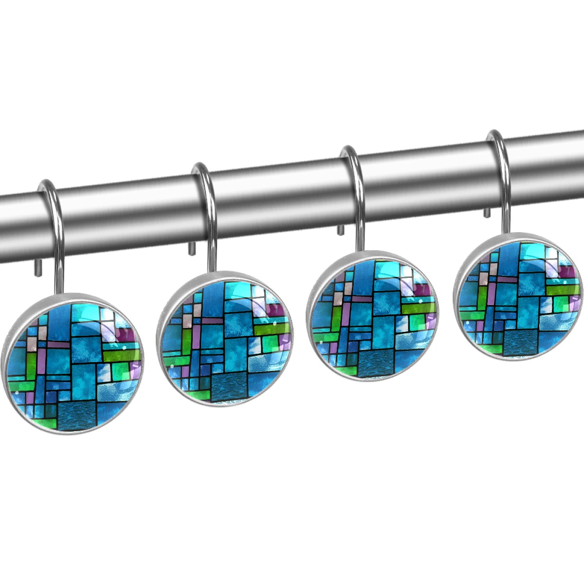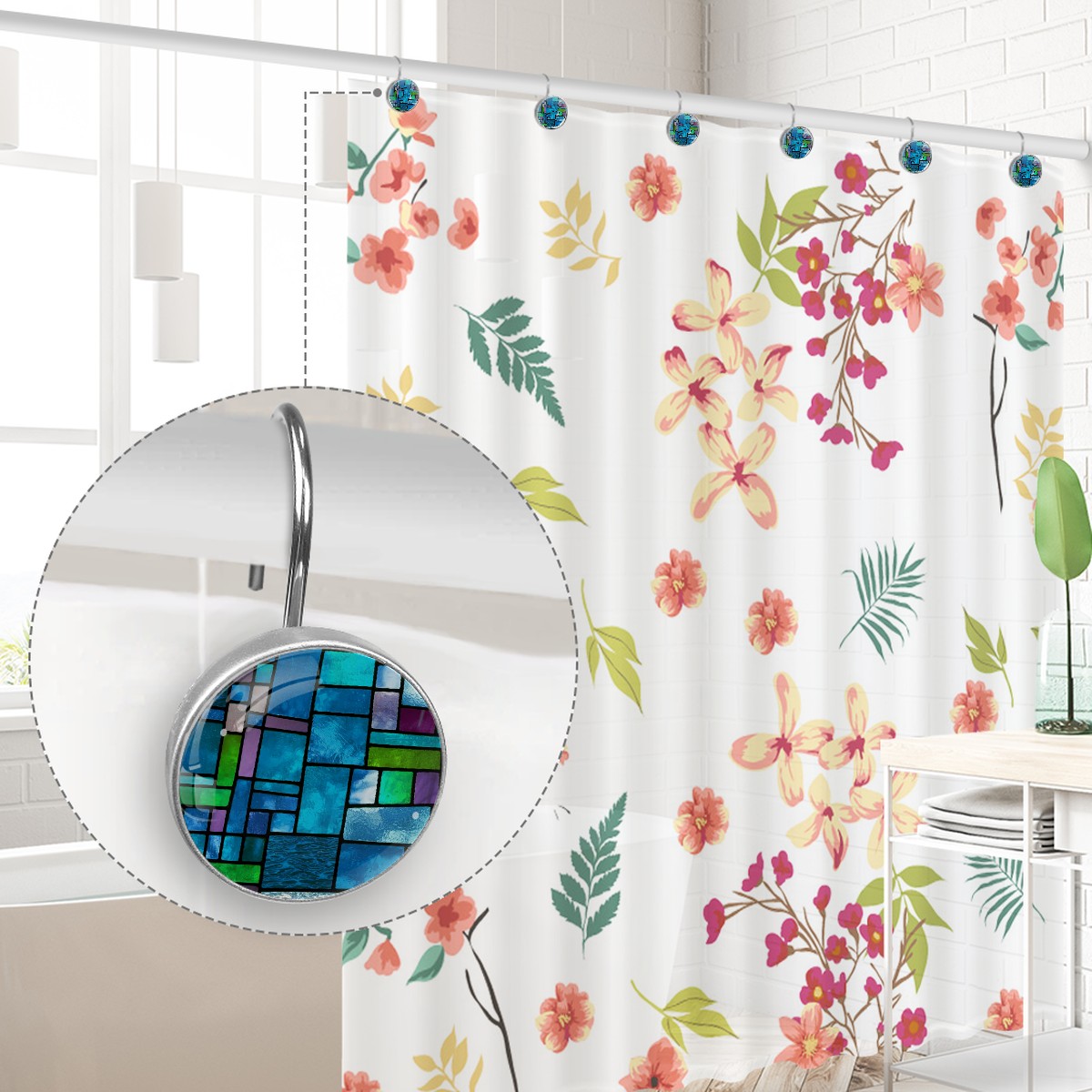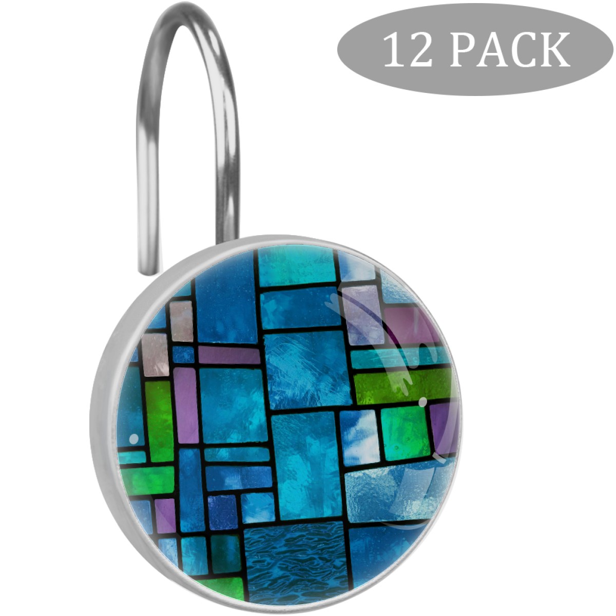 Decorative Blue Green Stained Glass Shower Curtain Hooks 12pcs Crystal Glass Rustproof Shower Hooks for Bathroom Home Decor Stainless Steel Resin Shower Curtain Rings