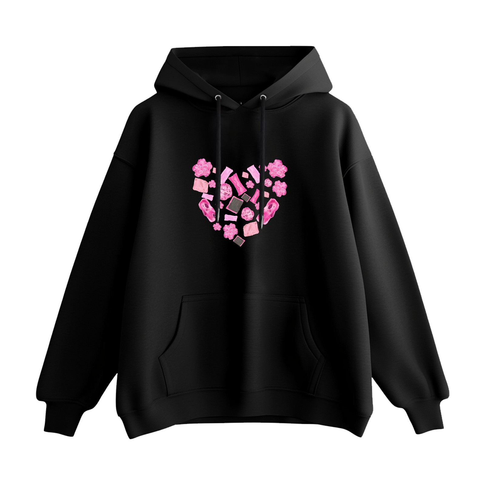 Trendy Pink Love Printed Women's Hooded Sweatshirt, Loose And Stylish Long Sleeved Top, Is The Perfect Gift For Valentine's Day, Suitable For Daily Outdoor Wear