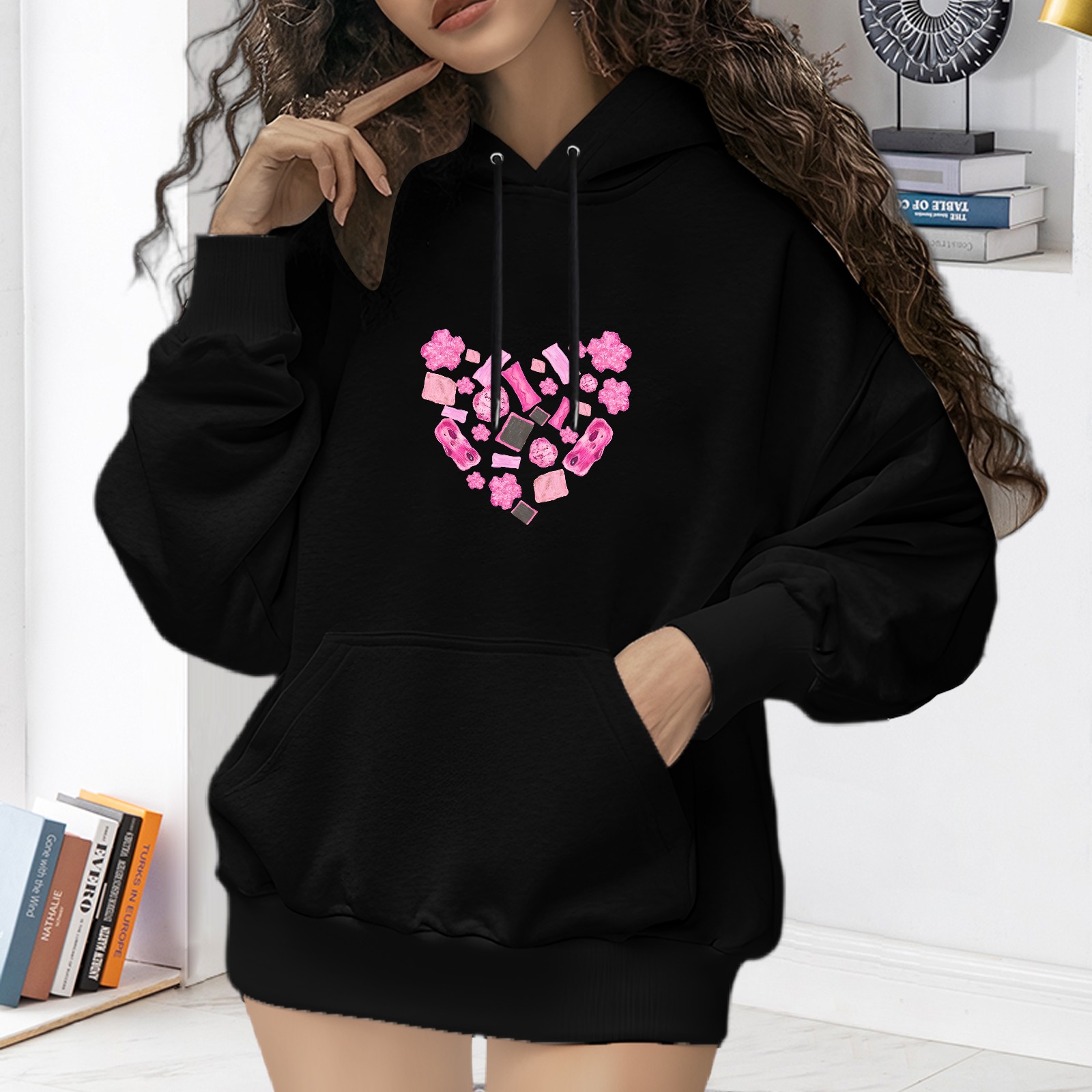 Trendy #replace# Printed Women's Hooded Sweatshirt, Loose And Stylish Long Sleeved Top, Is The Perfect Gift For Valentine's Day, Suitable For Daily Outdoor Wear