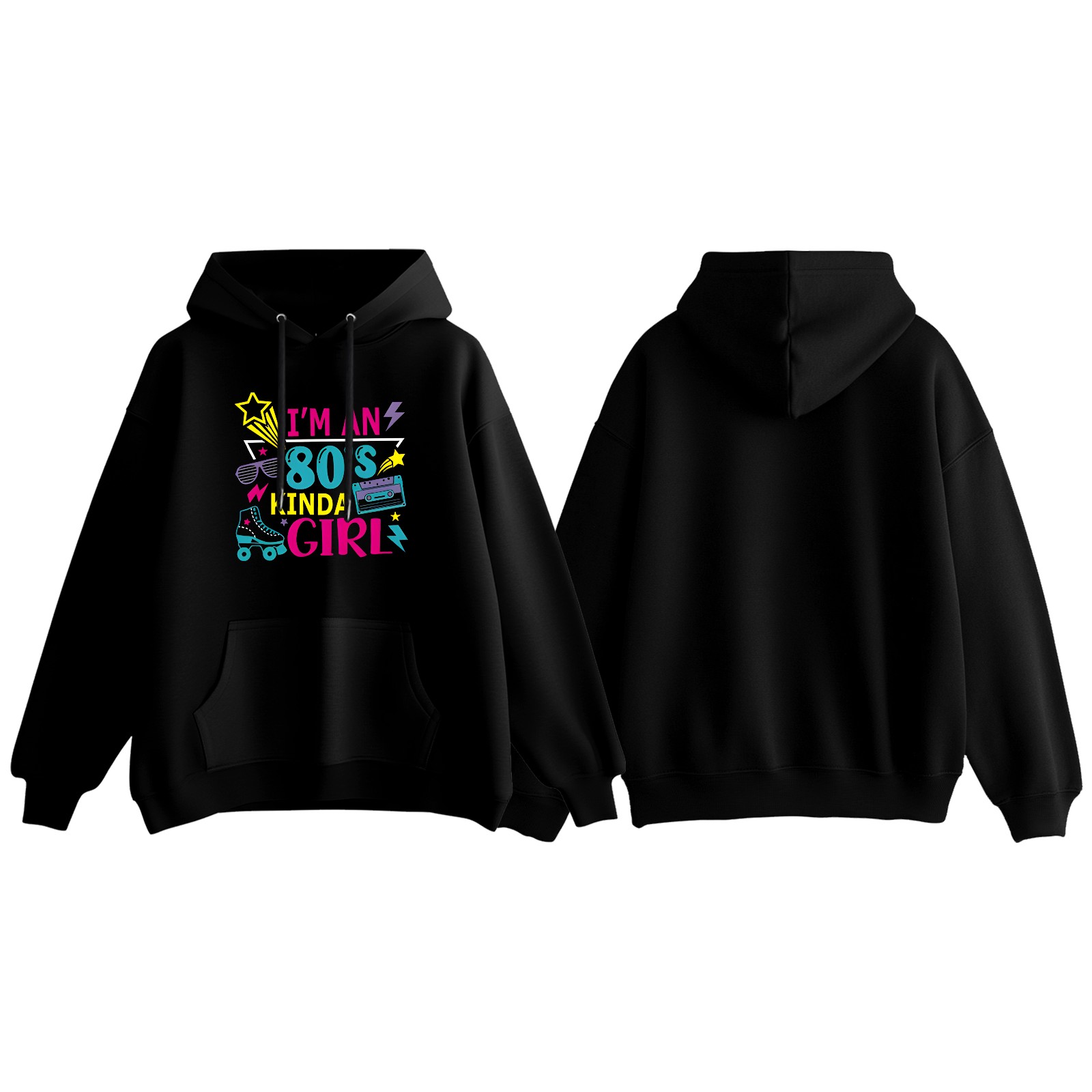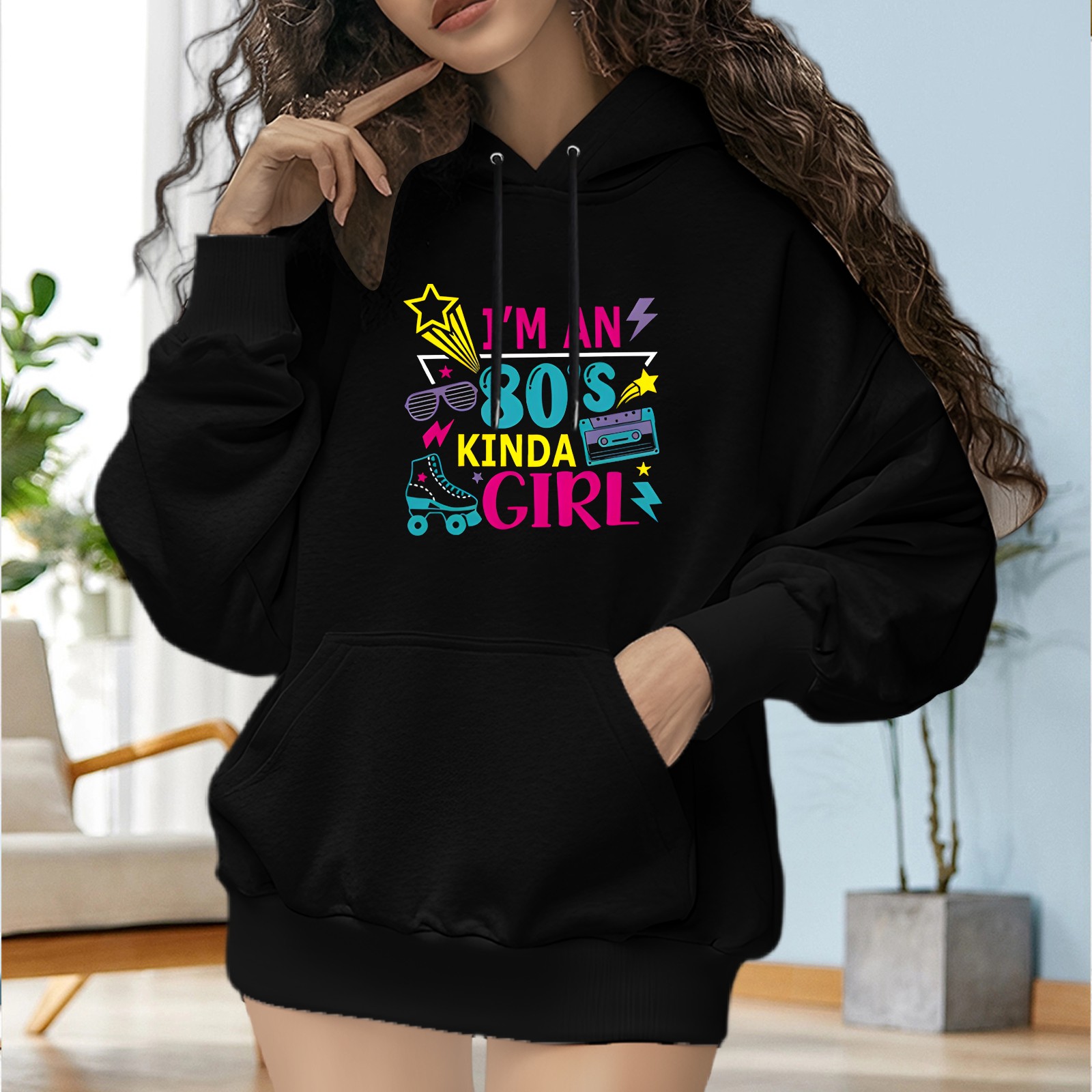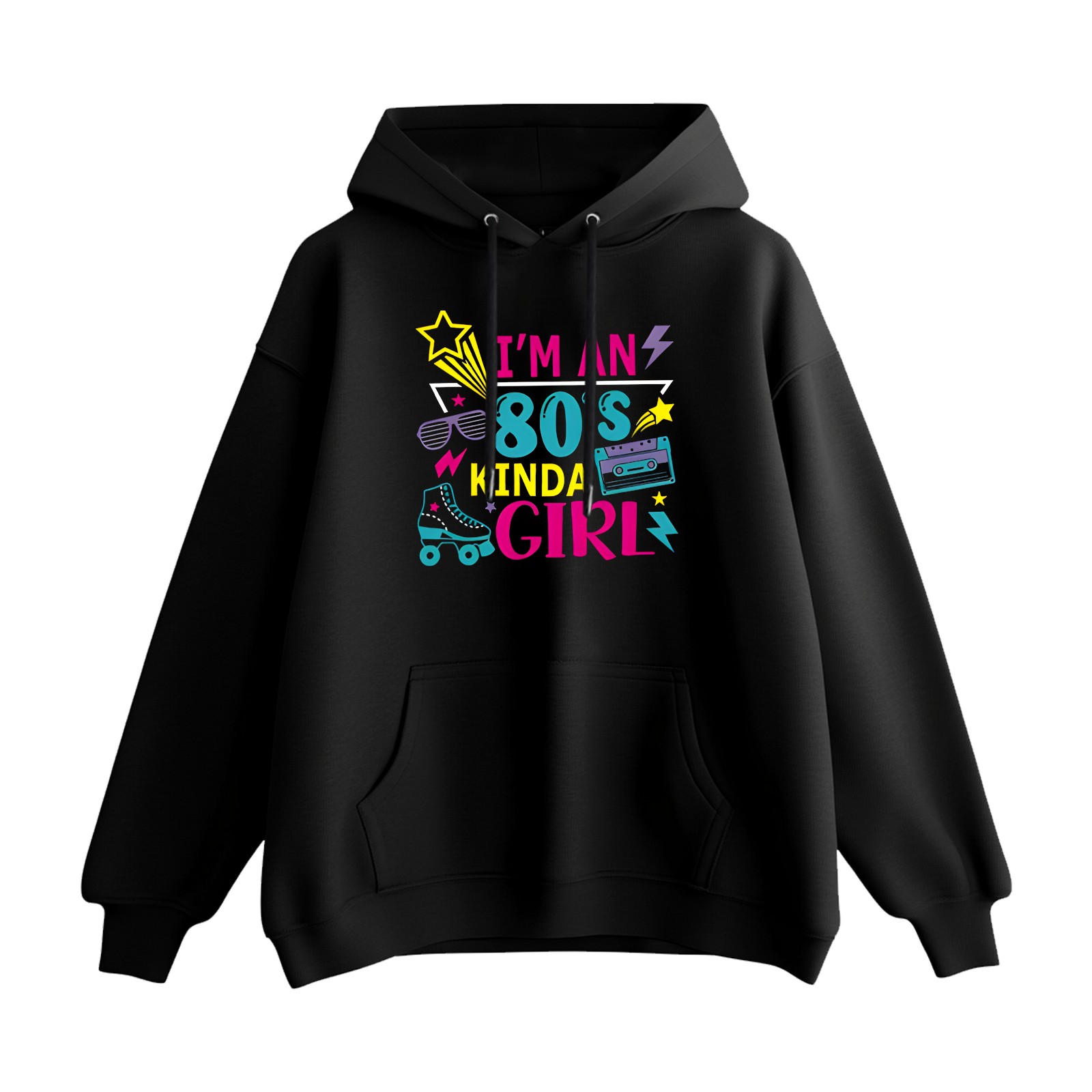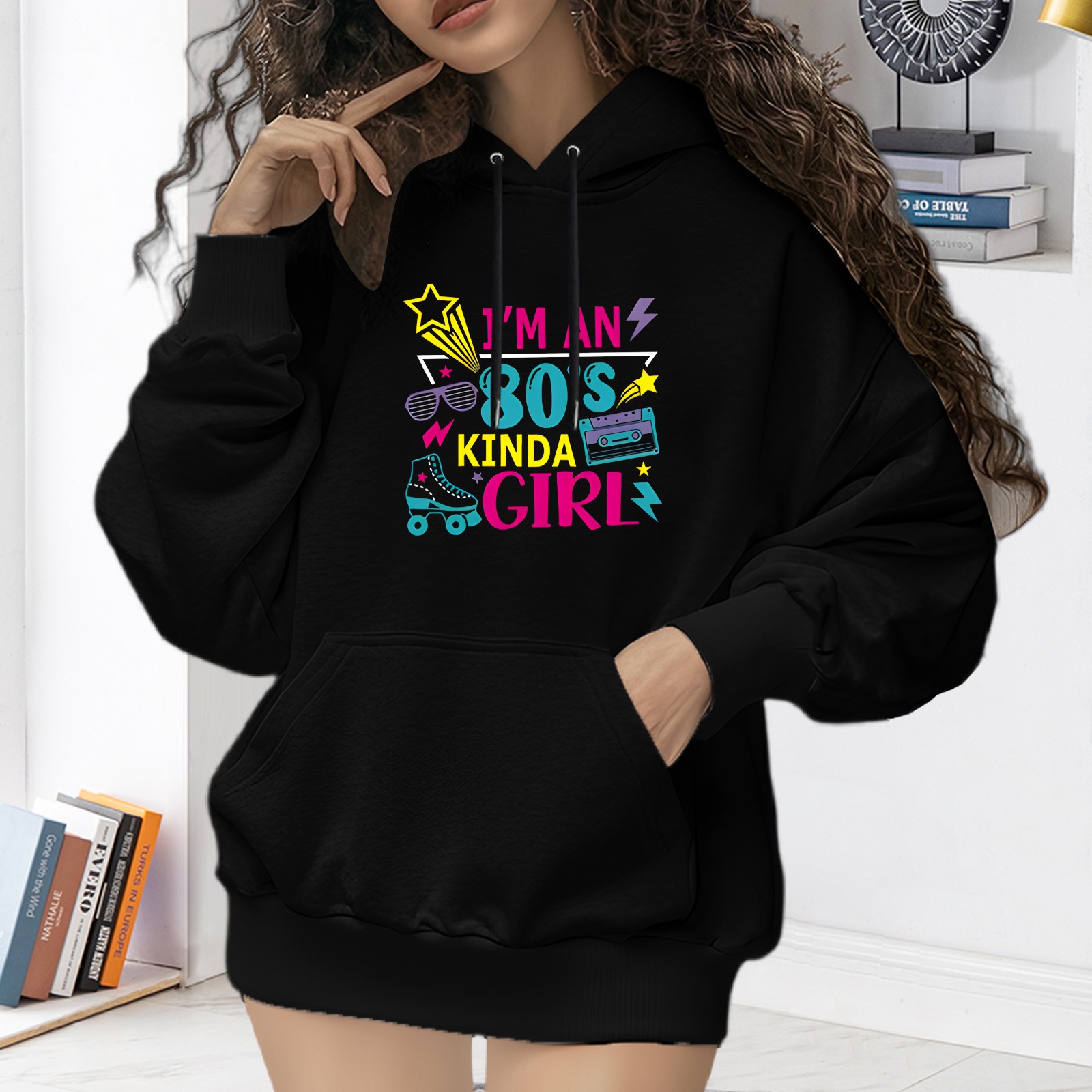 Trendy I'M ANS80's KINDA GIRL Printed Women's Hooded Sweatshirt, Loose And Stylish Long Sleeved Top, Is The Perfect Gift For Valentine's Day, Suitable For Daily Outdoor Wear