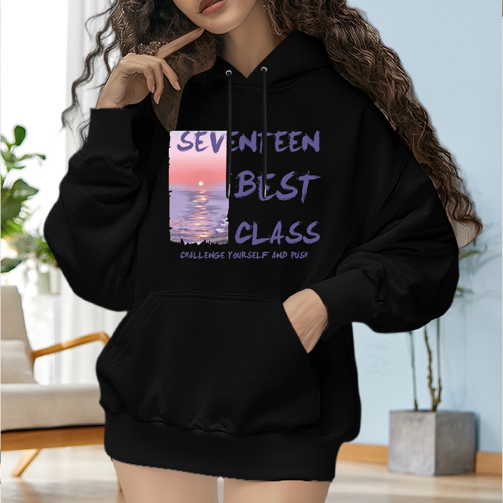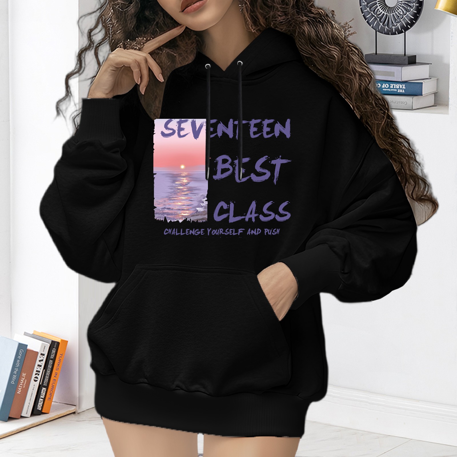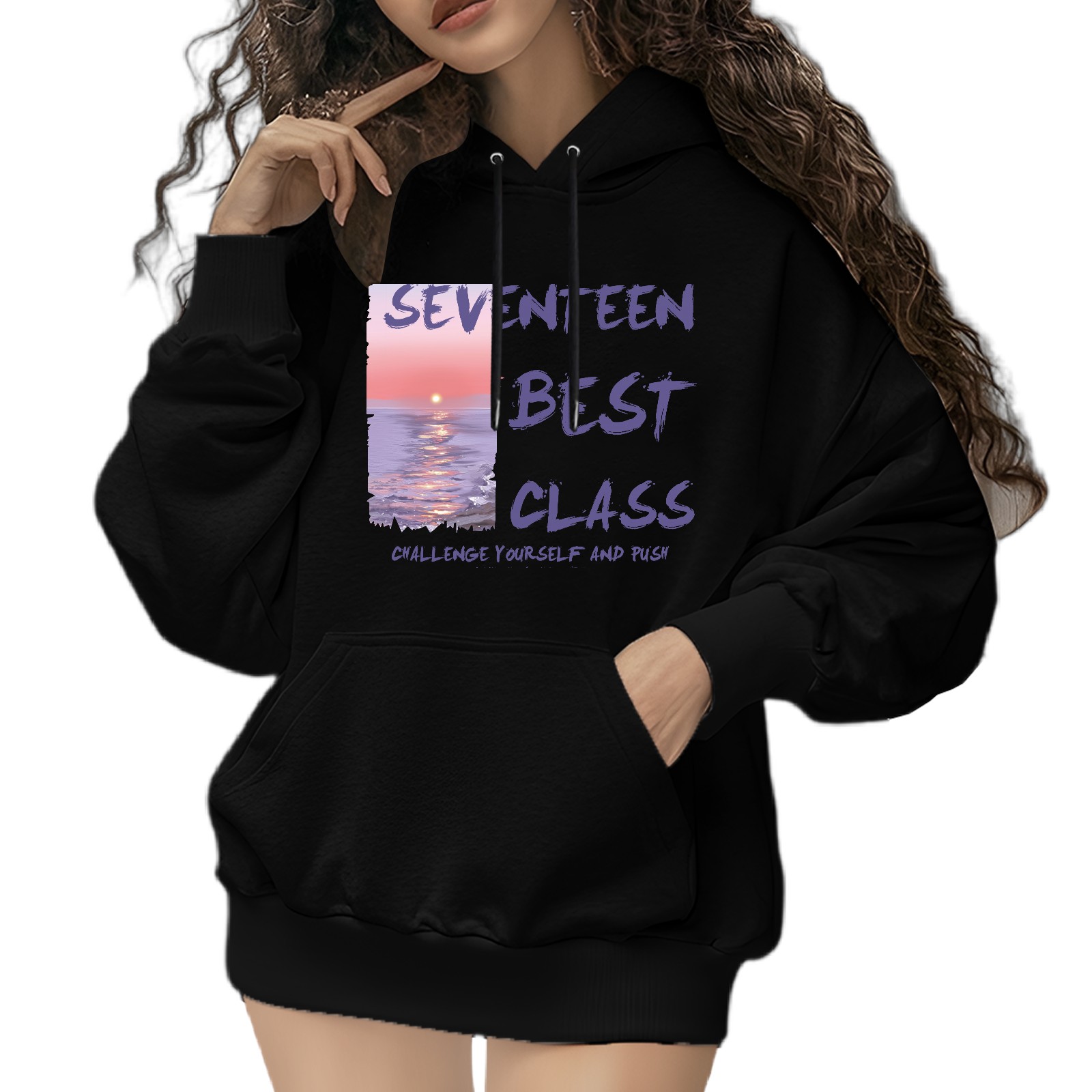 Trendy Class Seventeen Printed Women's Hooded Sweatshirt, Loose And Stylish Long Sleeved Top, Is The Perfect Gift For Valentine's Day, Suitable For Daily Outdoor Wear