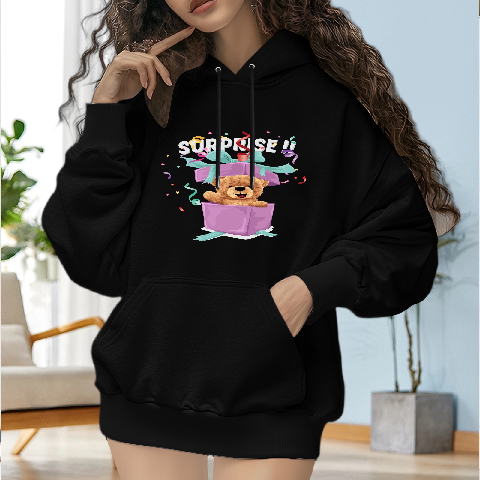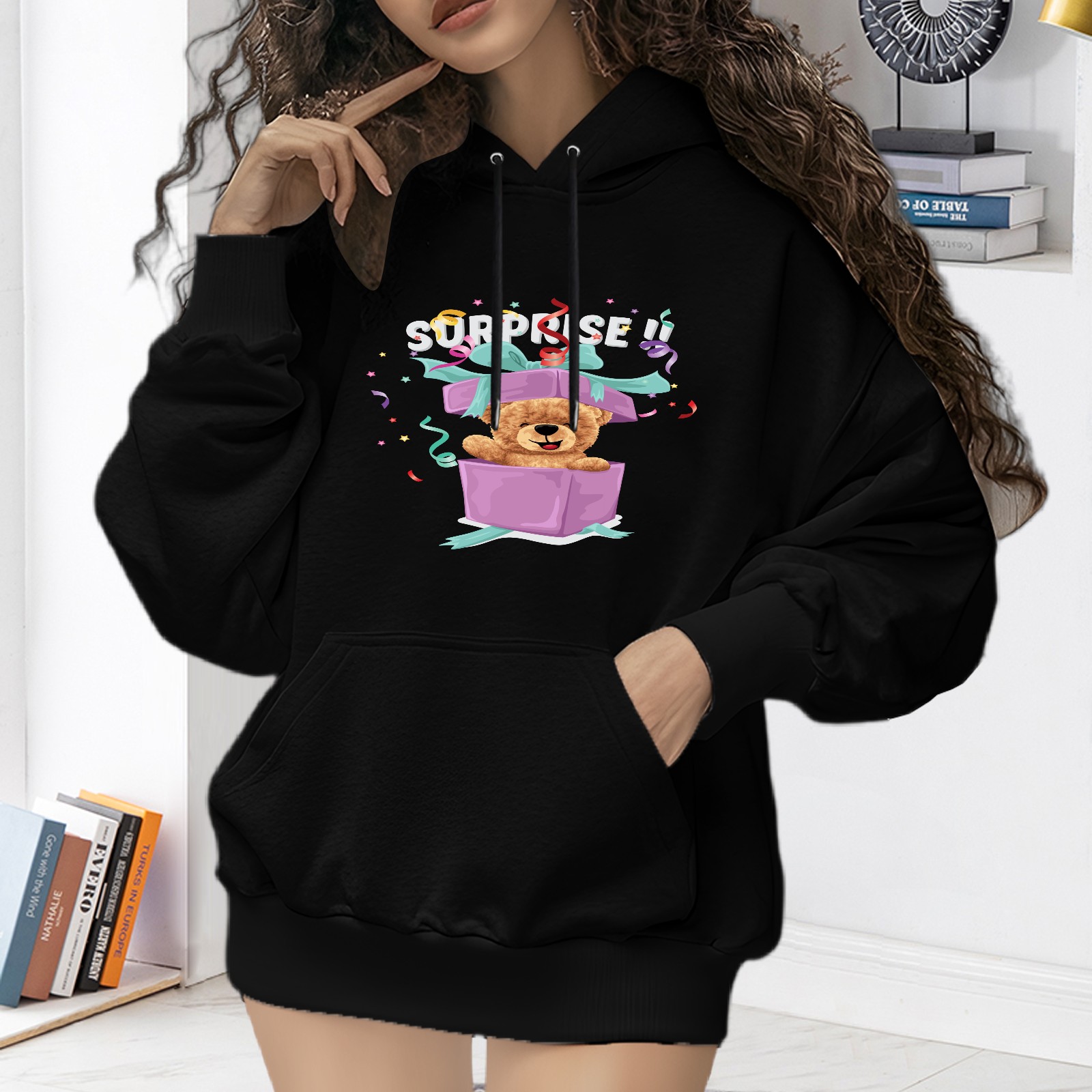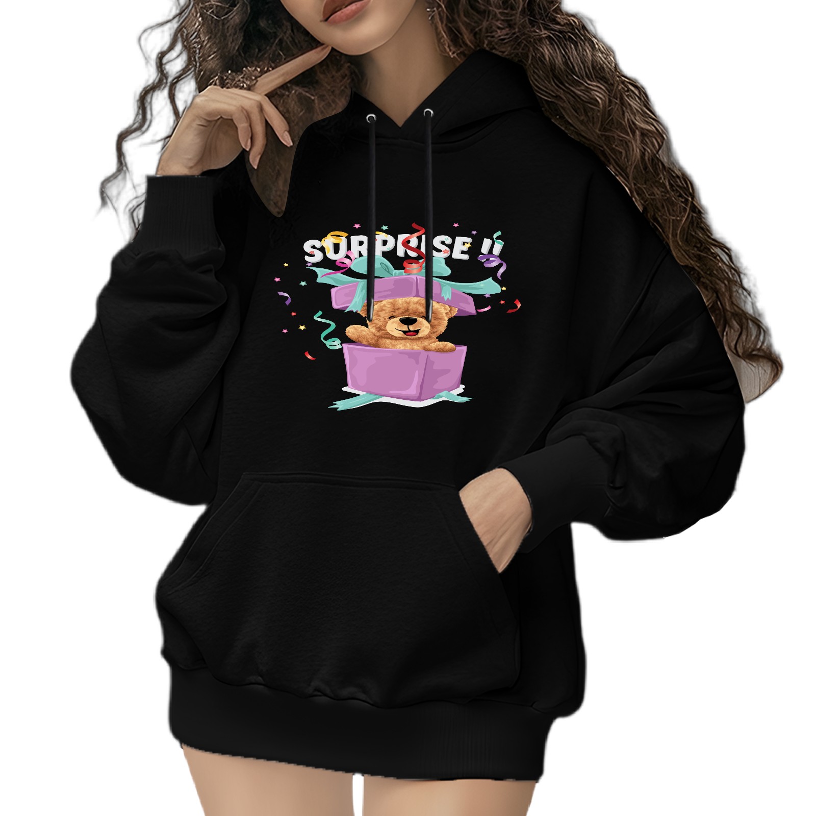 Trendy Surprise Printed Women's Hooded Sweatshirt, Loose And Stylish Long Sleeved Top, Is The Perfect Gift For Valentine's Day, Suitable For Daily Outdoor Wear