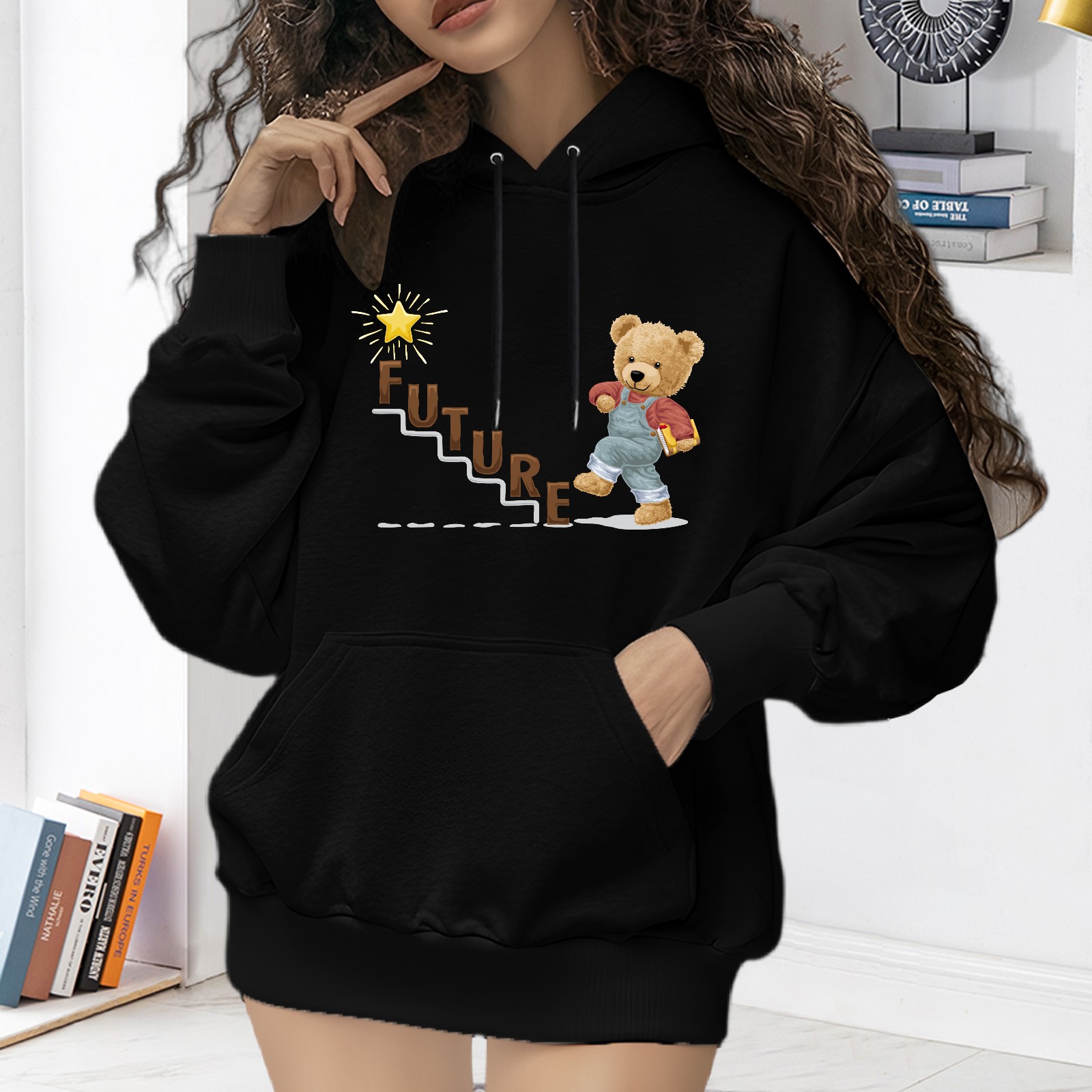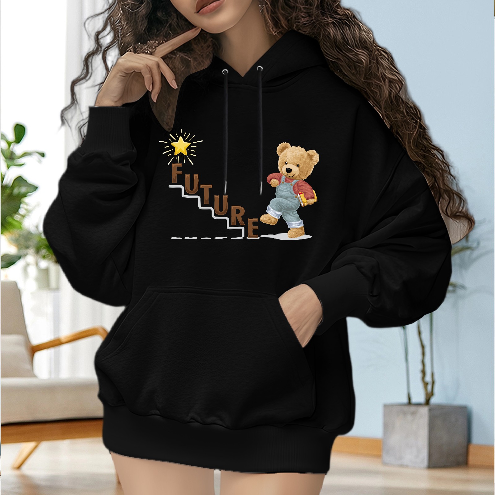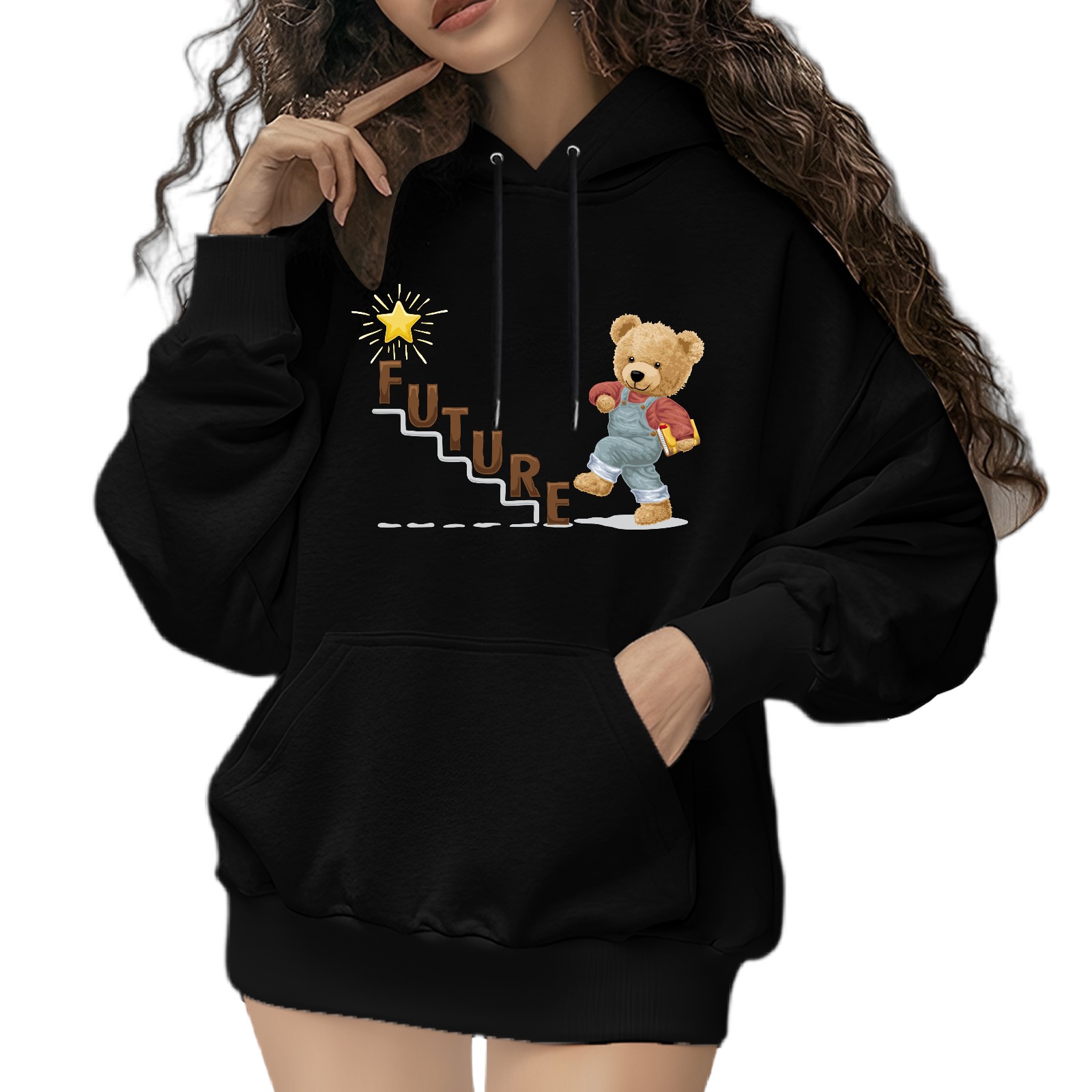 Trendy Future Printed Women's Hooded Sweatshirt, Loose And Stylish Long Sleeved Top, Is The Perfect Gift For Valentine's Day, Suitable For Daily Outdoor Wear