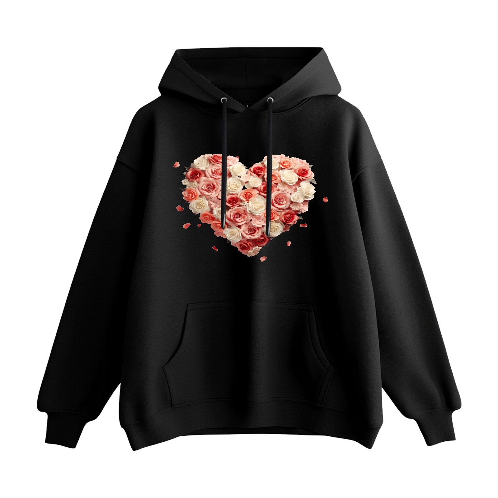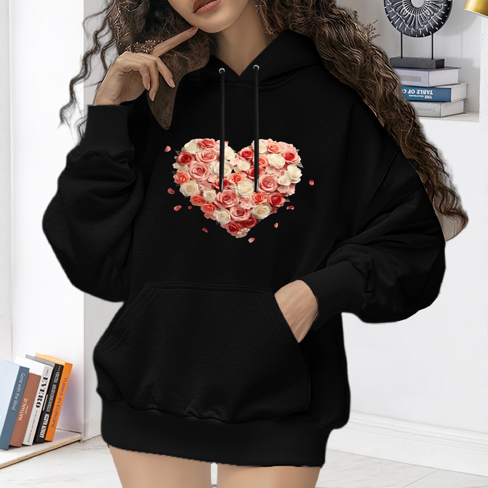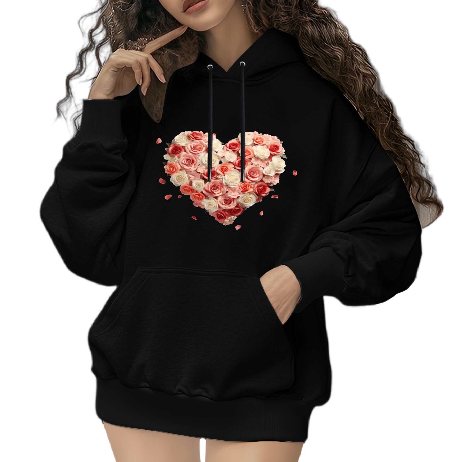 Trendy Flower Printed Women's Hooded Sweatshirt, Loose And Stylish Long Sleeved Top, Is The Perfect Gift For Valentine's Day, Suitable For Daily Outdoor Wear