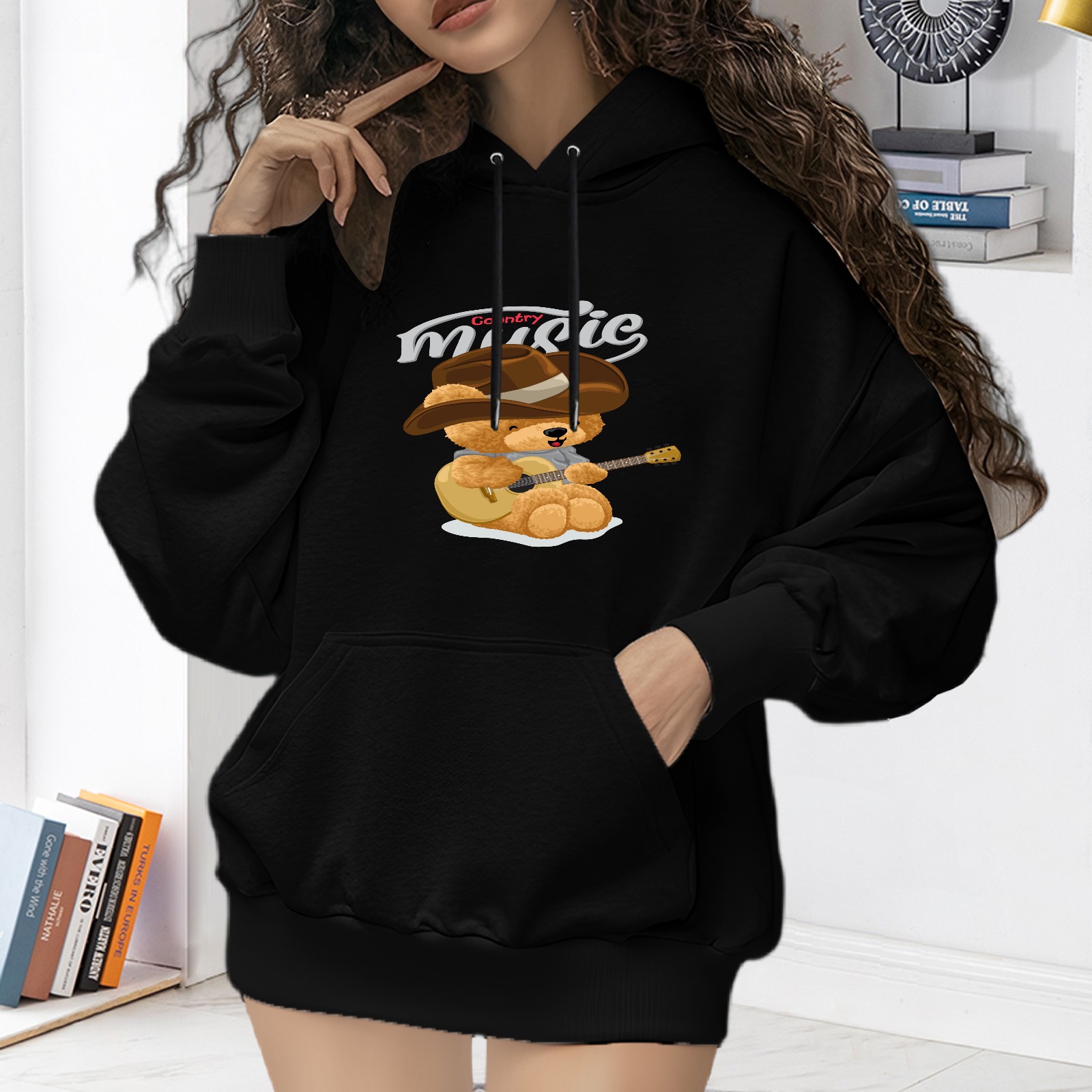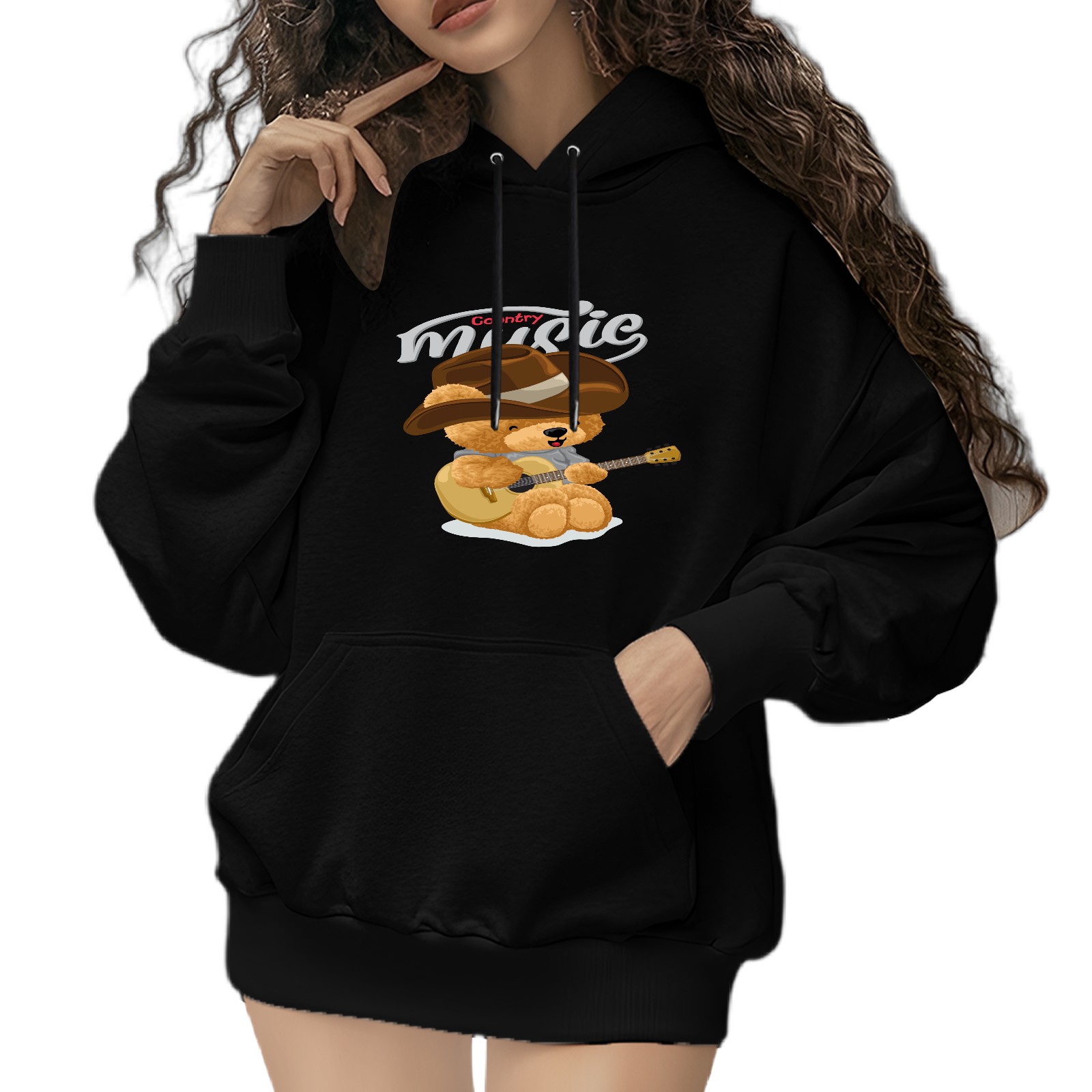 Trendy Country Music Printed Women's Hooded Sweatshirt, Loose And Stylish Long Sleeved Top, Is The Perfect Gift For Valentine's Day, Suitable For Daily Outdoor Wear