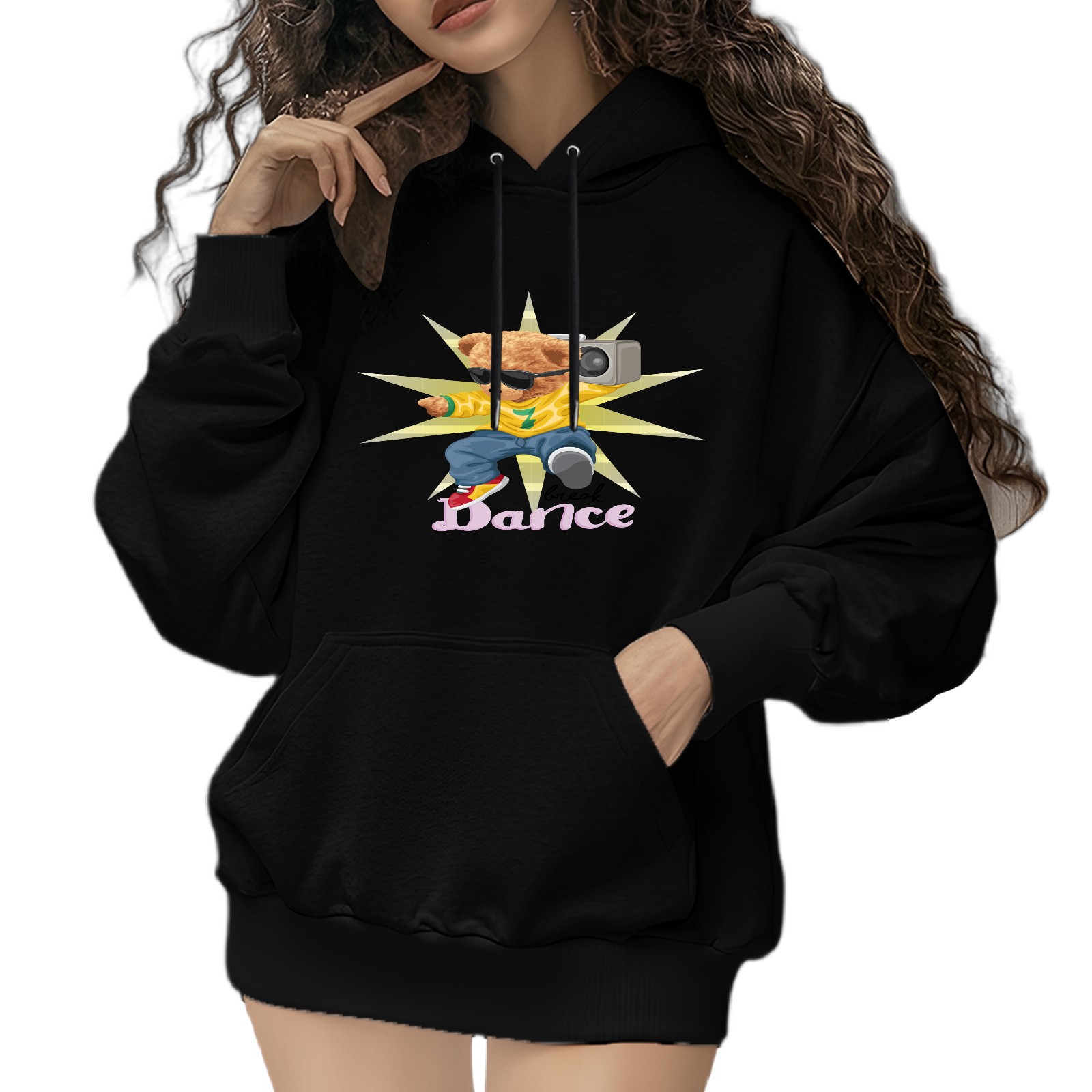 Trendy Dance Printed Women's Hooded Sweatshirt, Loose And Stylish Long Sleeved Top, Is The Perfect Gift For Valentine's Day, Suitable For Daily Outdoor Wear