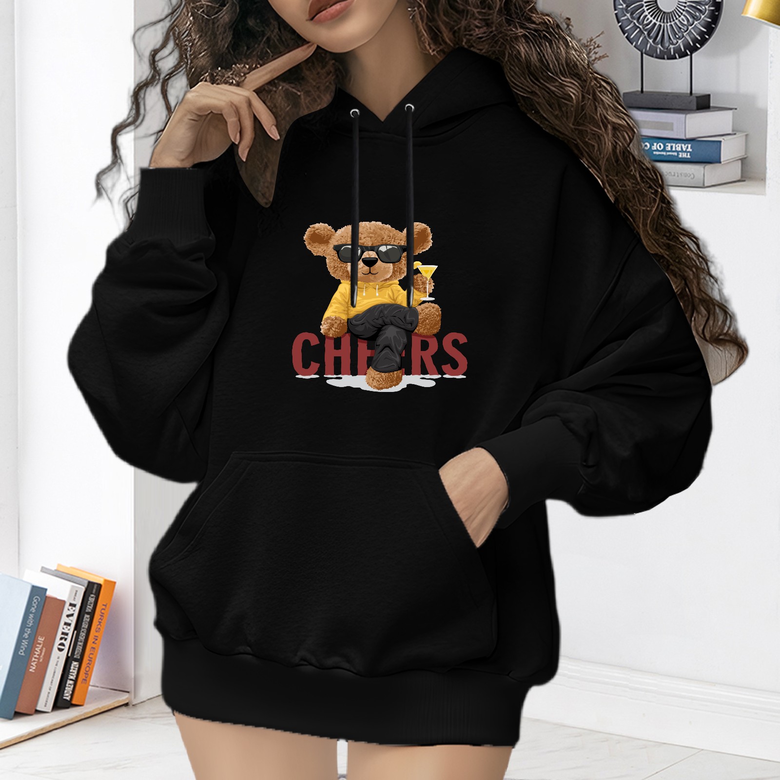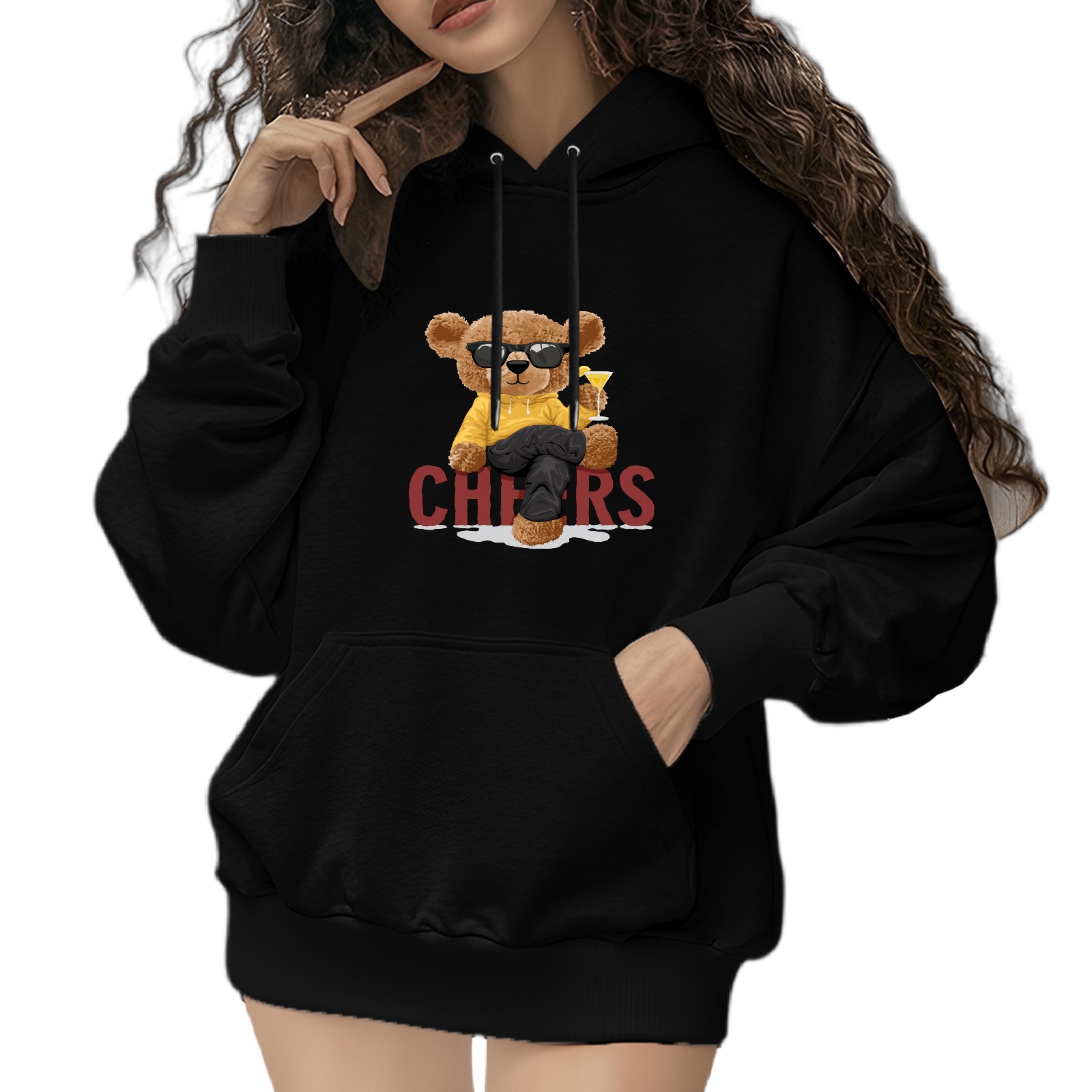 Trendy Cheers Printed Women's Hooded Sweatshirt, Loose And Stylish Long Sleeved Top, Is The Perfect Gift For Valentine's Day, Suitable For Daily Outdoor Wear