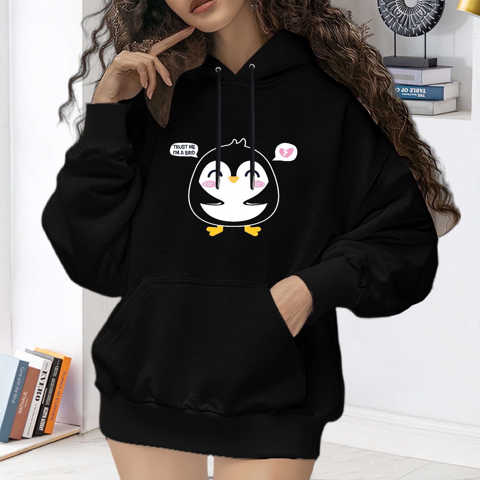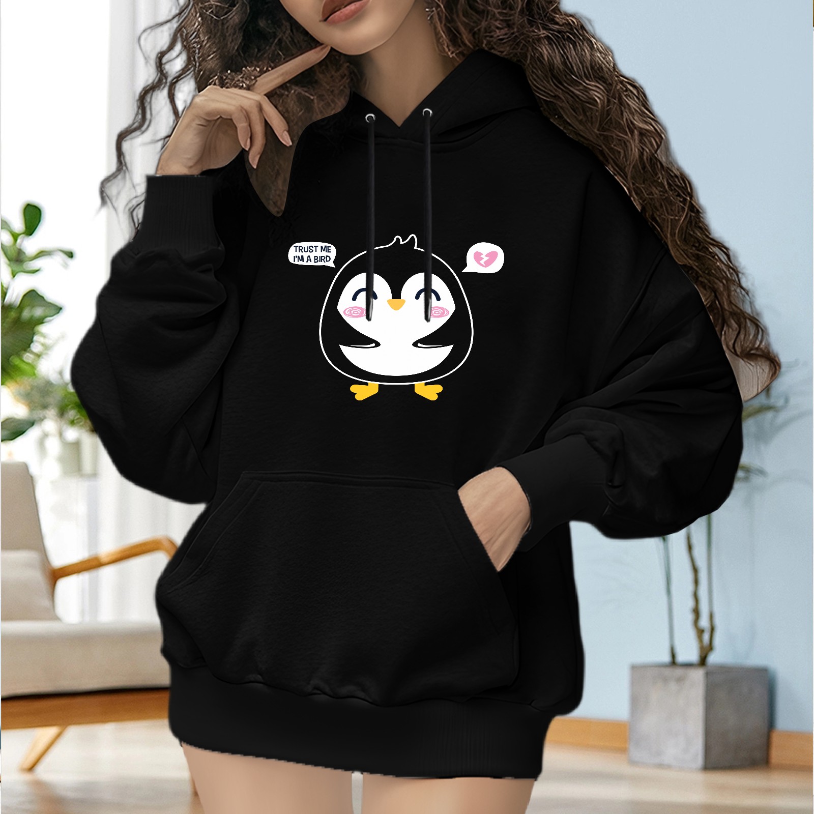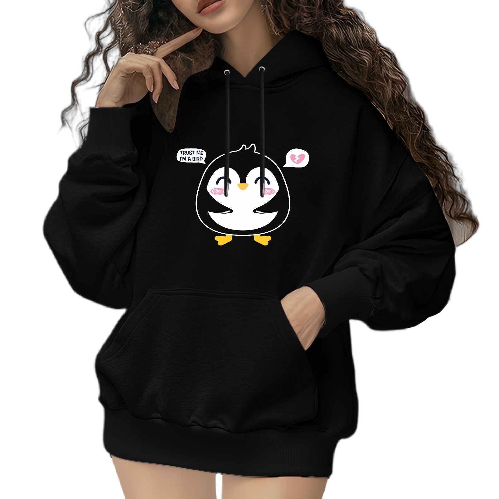 Trendy Trust Me Im A Bird Printed Women's Hooded Sweatshirt, Loose And Stylish Long Sleeved Top, Is The Perfect Gift For Valentine's Day, Suitable For Daily Outdoor Wear
