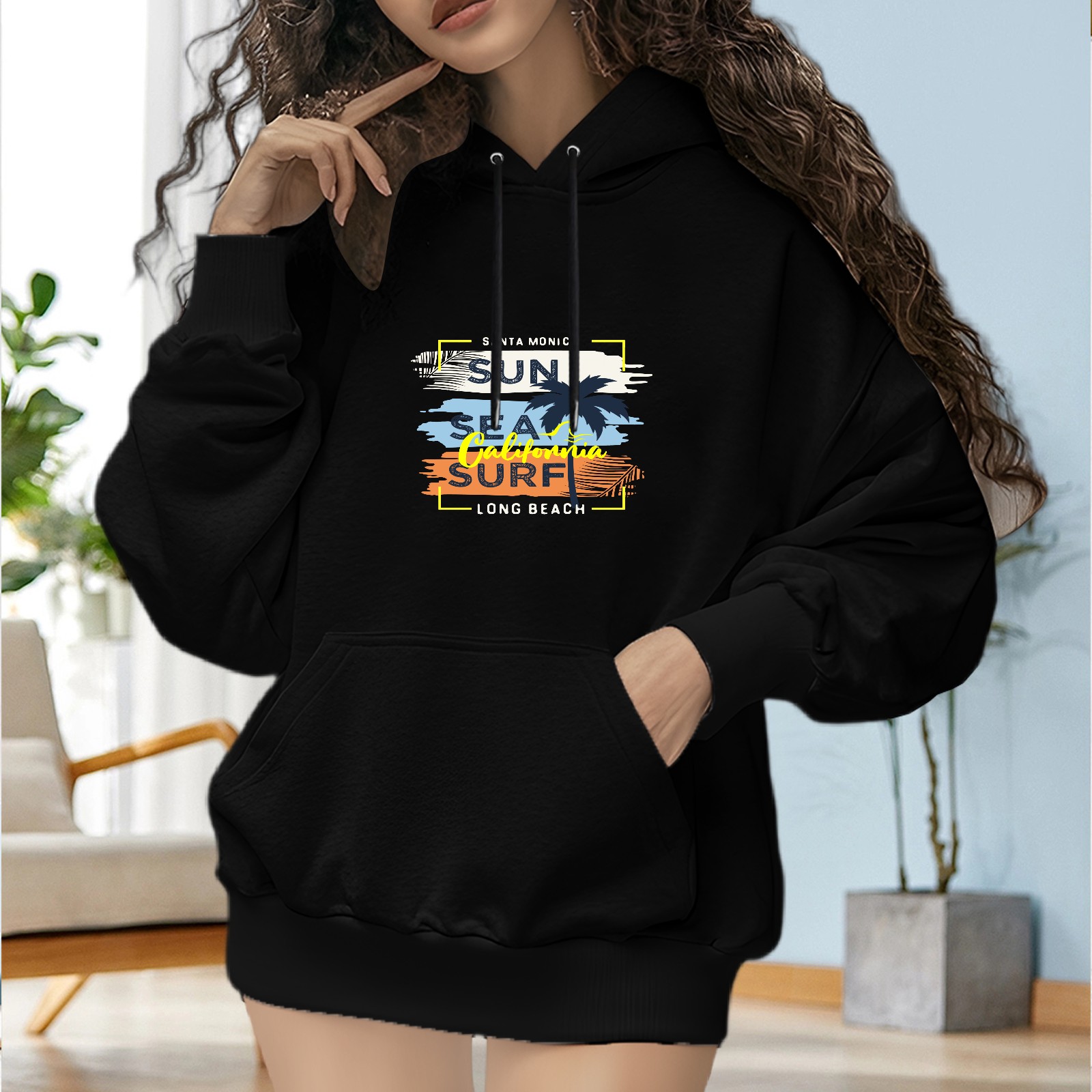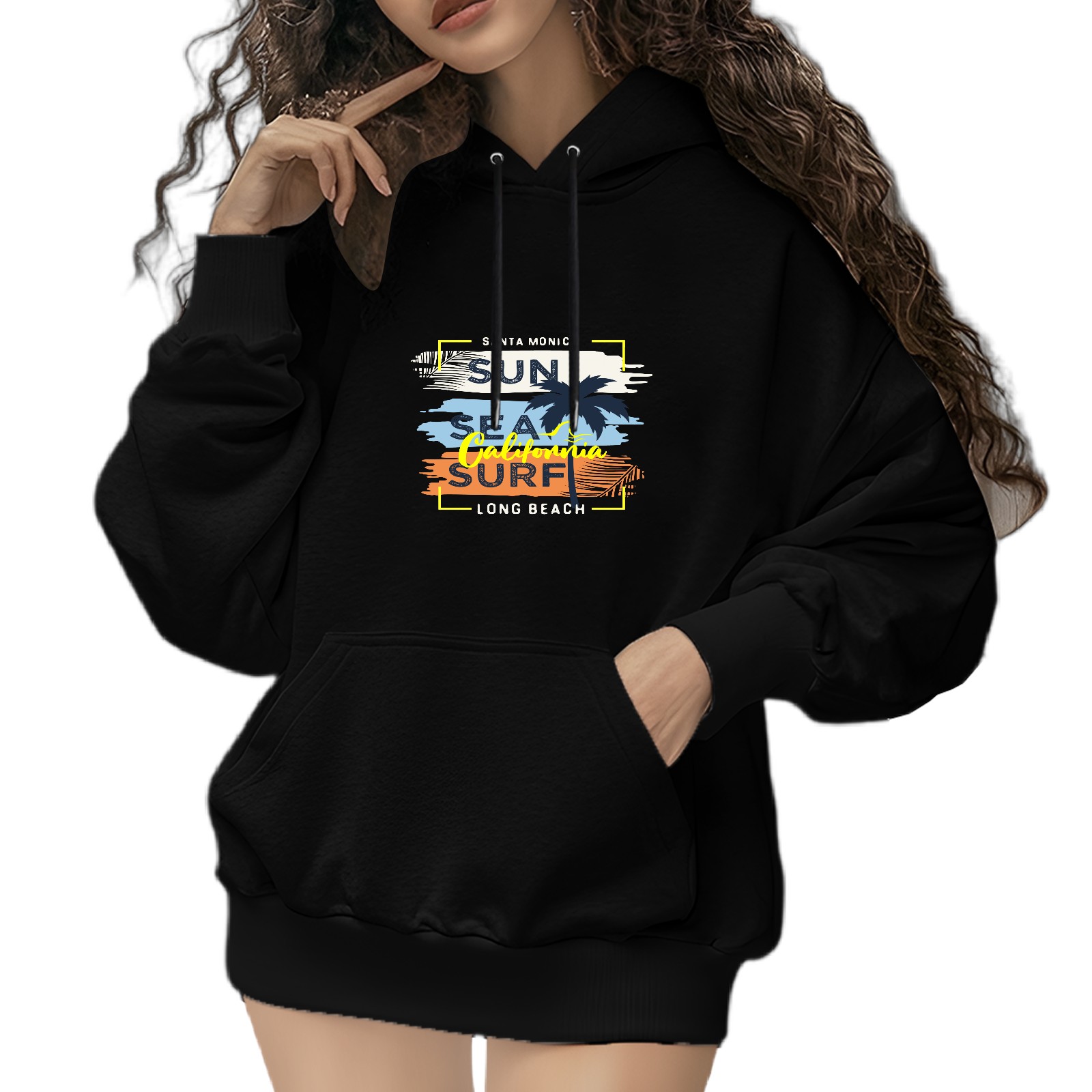 Trendy Beach Printed Women's Hooded Sweatshirt, Loose And Stylish Long Sleeved Top, Is The Perfect Gift For Valentine's Day, Suitable For Daily Outdoor Wear
