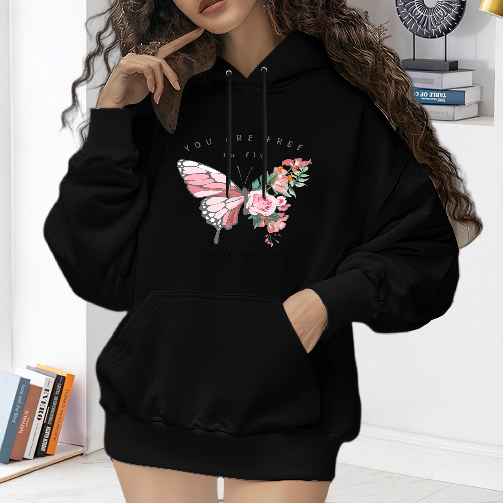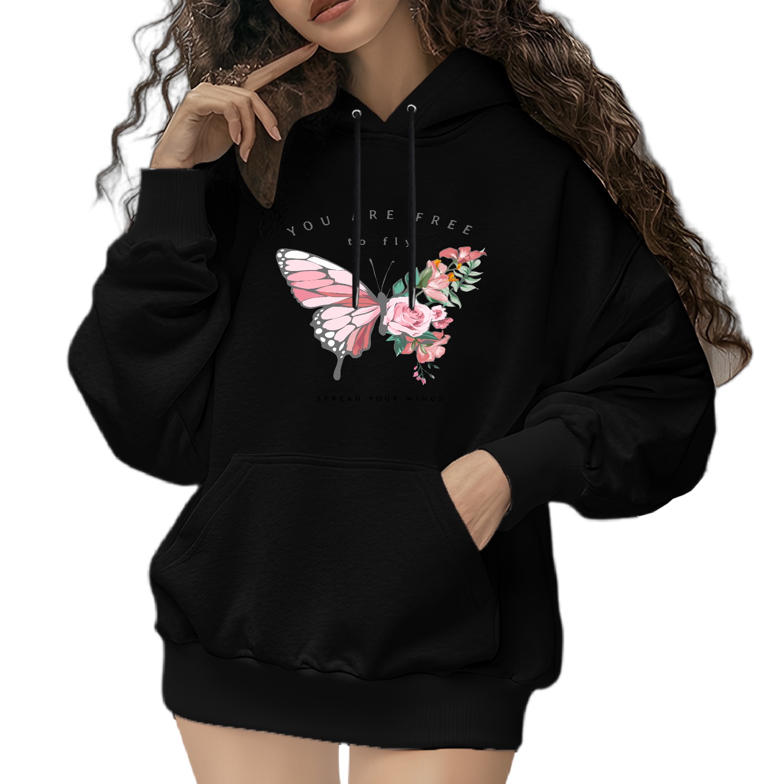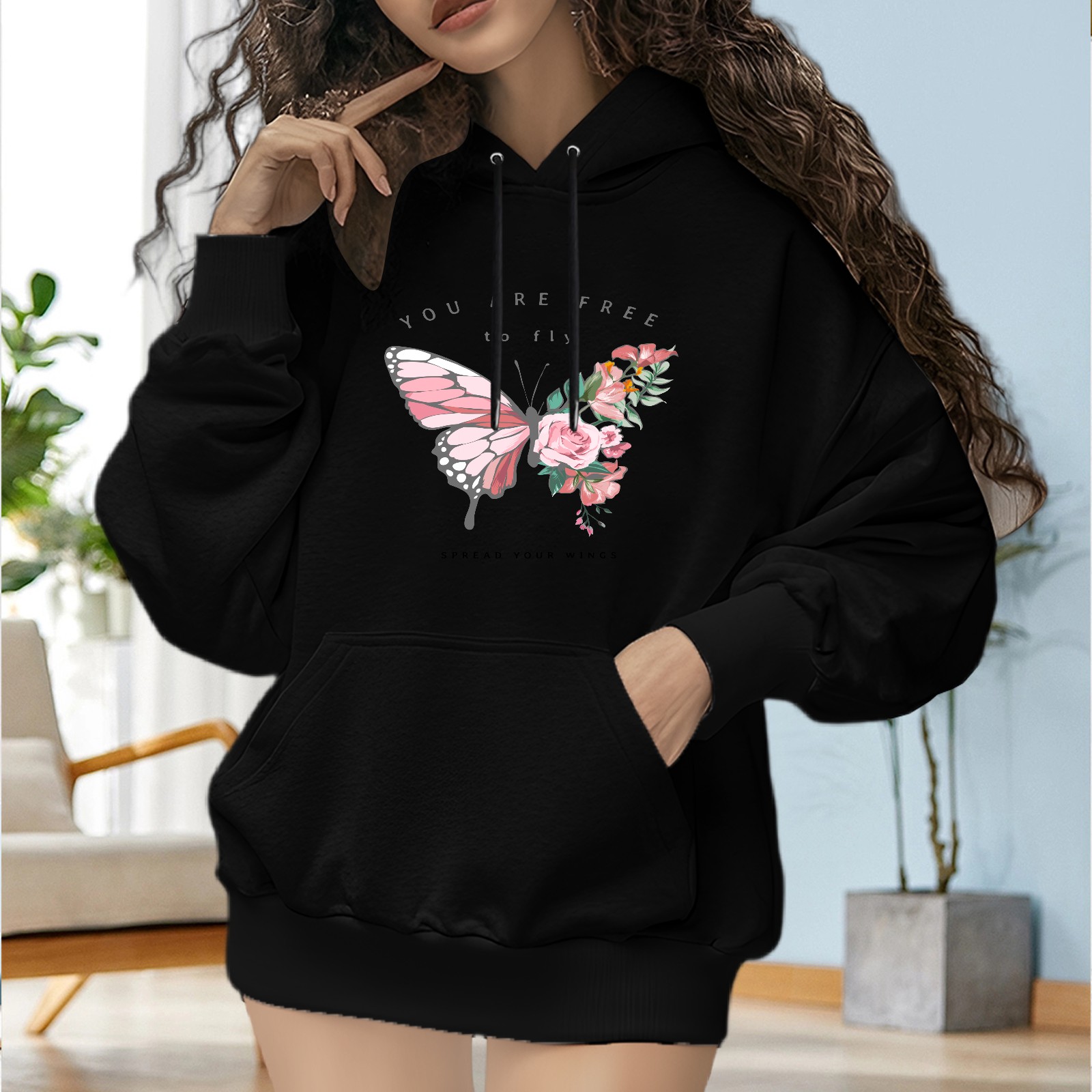 Trendy You Are Free To Fly Printed Women's Hooded Sweatshirt, Loose And Stylish Long Sleeved Top, Is The Perfect Gift For Valentine's Day, Suitable For Daily Outdoor Wear