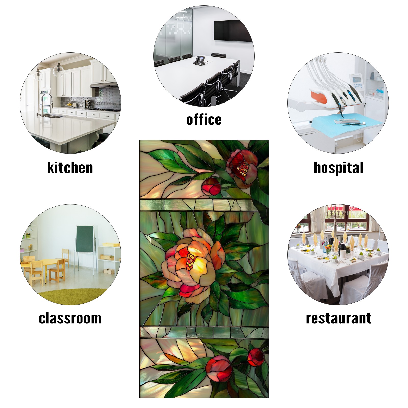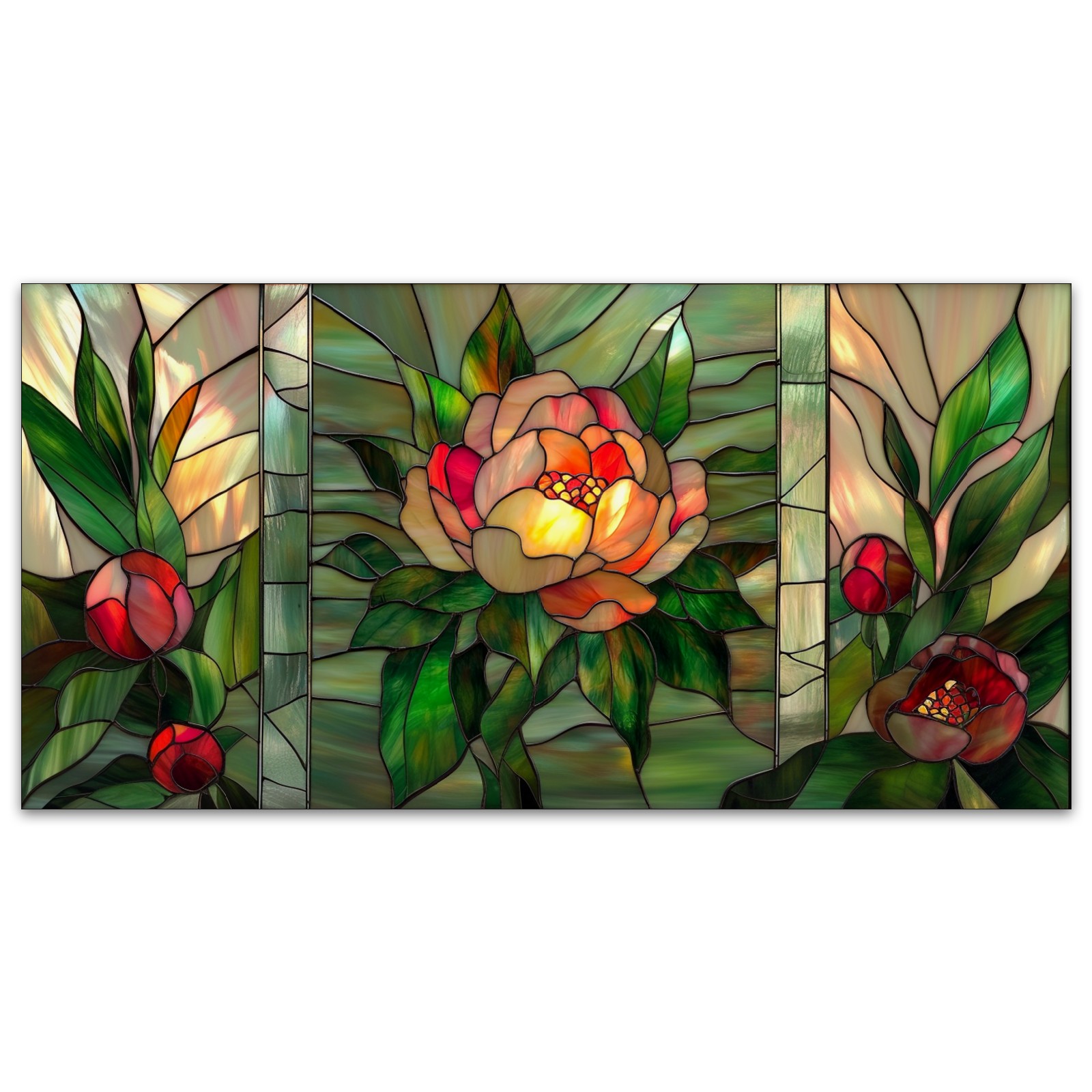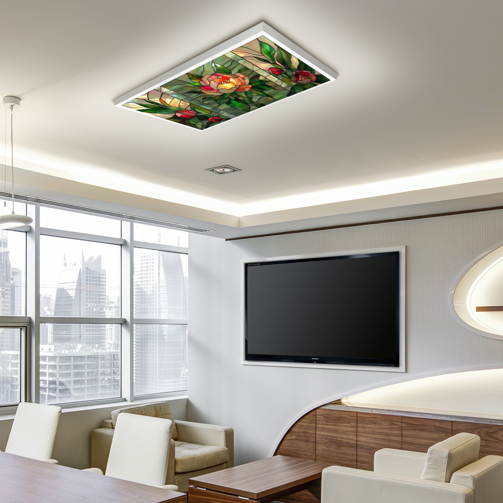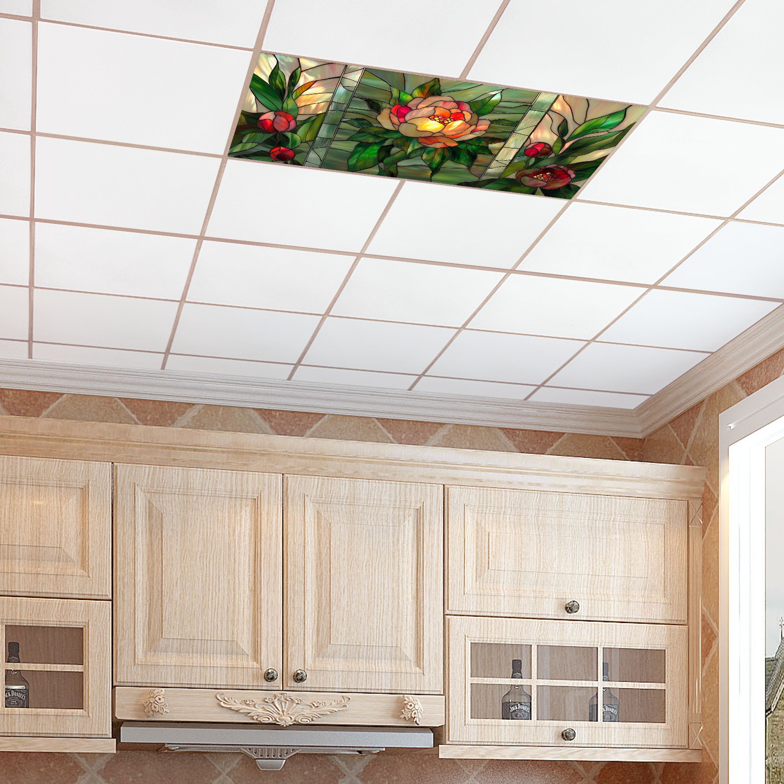 MSINMKOK Fluorescent Light Covers for Ceiling Lights Classroom Office 4x2ft Stained Glass Peony Flower Decorative Drop Ceiling Light Cover Filters Hospital Home Ceiling Decorations