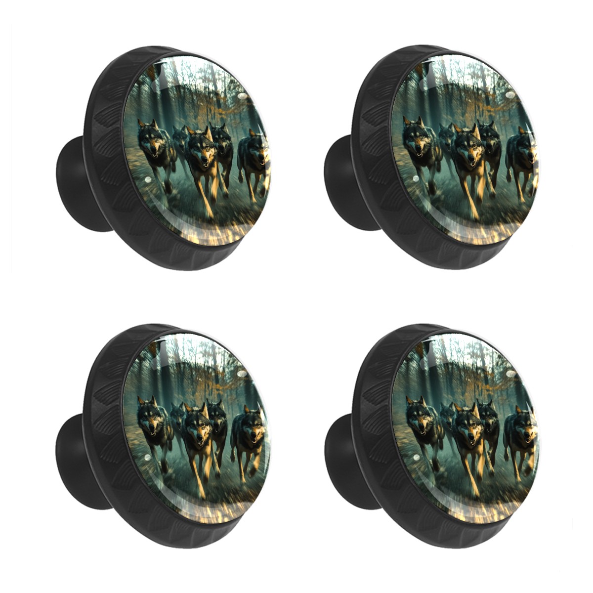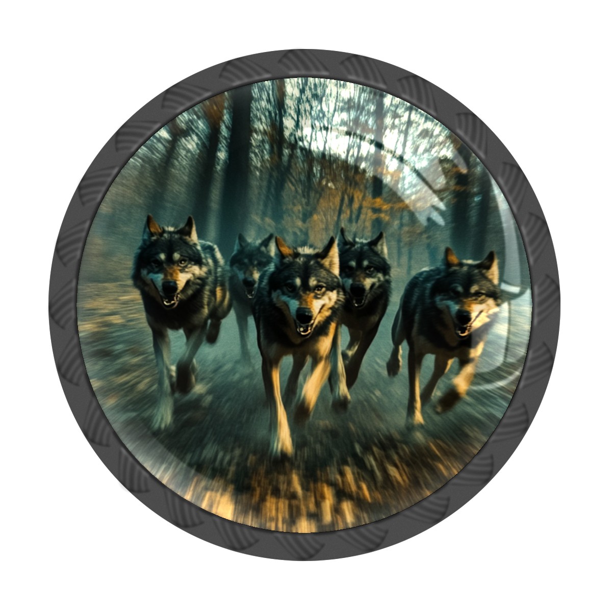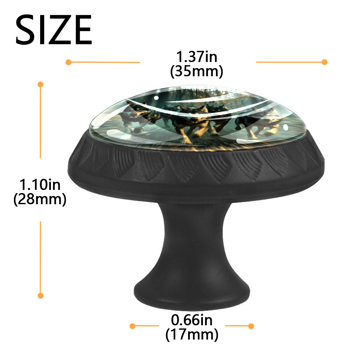 4 Pcs Drawer Pulls Knobs Wolves Cabinet Knobs Pulls Round Crystal Glass Handles Knobs for Kitchen Cabinets and Drawers Dresser Bathroom