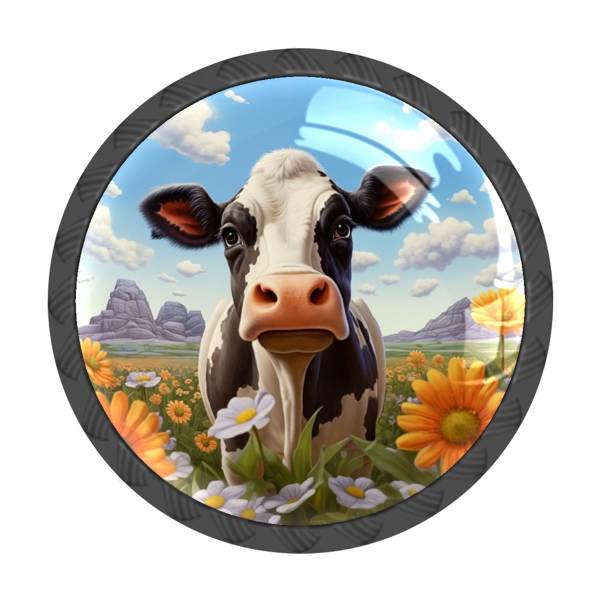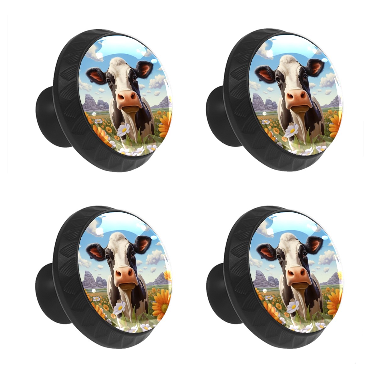 4 Pcs Drawer Pulls Knobs Cow White Daisy Flower Cabinet Knobs Pulls Round Crystal Glass Handles Knobs for Kitchen Cabinets and Drawers Dresser Bathroom