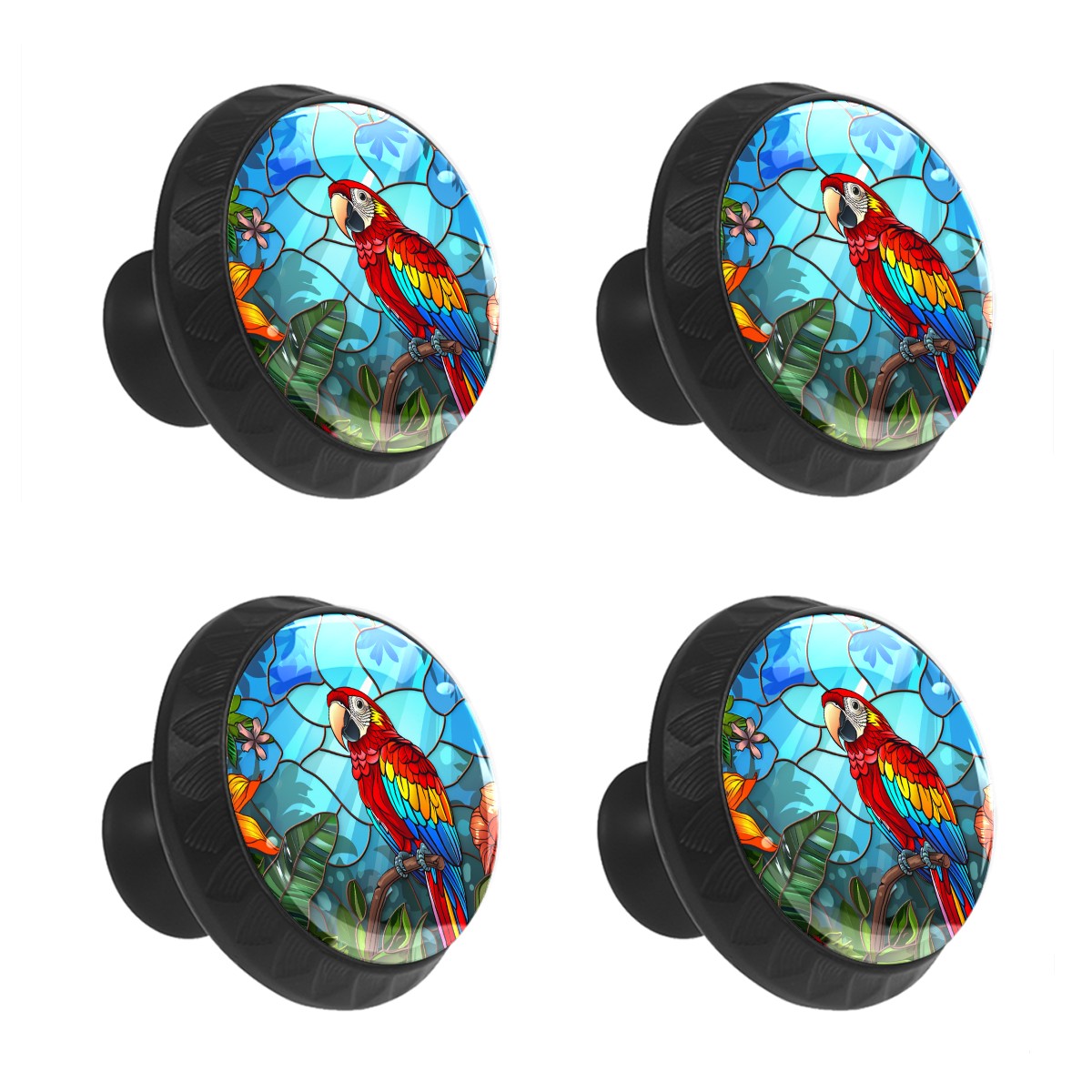 4 Pcs Drawer Pulls Knobs Macaw Bird Cabinet Knobs Pulls Round Crystal Glass Handles Knobs for Kitchen Cabinets and Drawers Dresser Bathroom