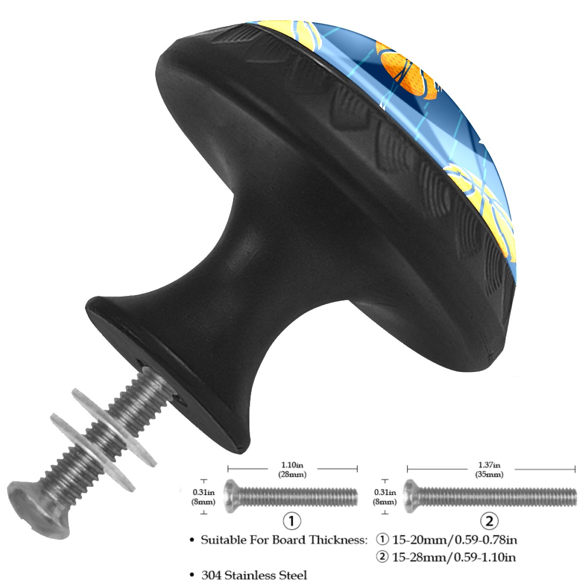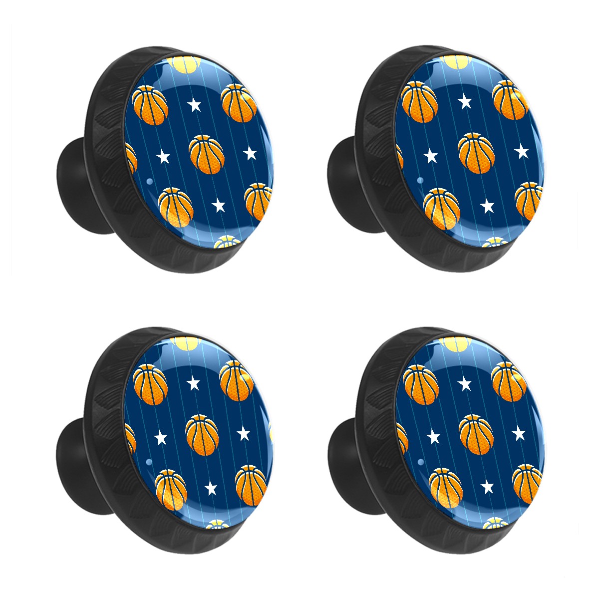 Genhuyiz 4 Pcs Drawer Pulls Knobs Basketball Stars Pattern Blue Stripe Cabinet Knobs Pulls Round Crystal Glass Handles Knobs for Kitchen Cabinet and Drawer Dresser Bathroom