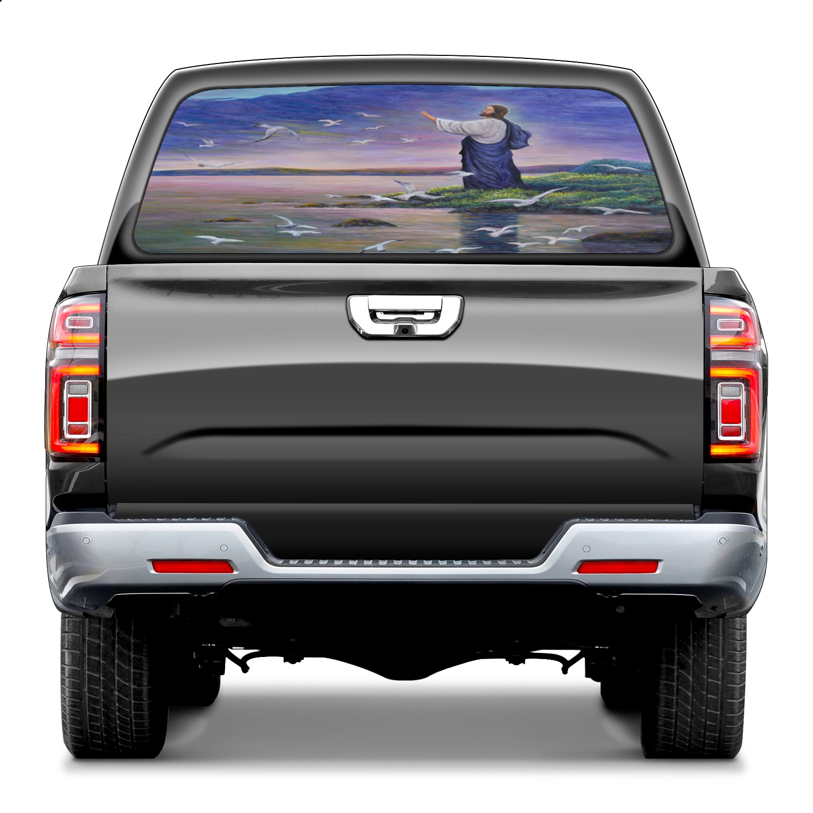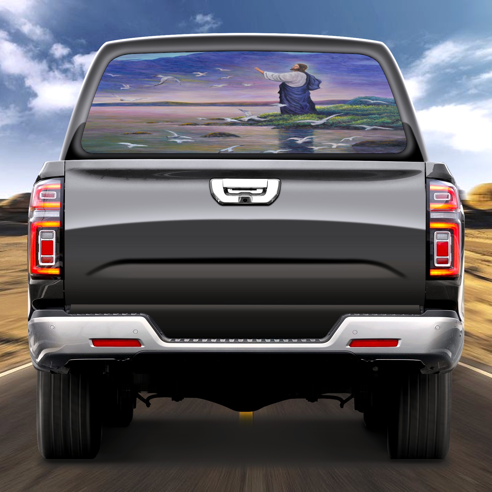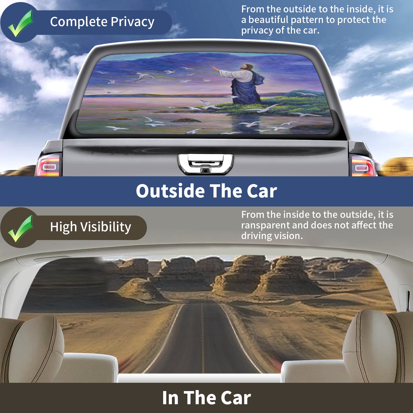 Blue Christ Rear Window Decals for Trucks- Pickup Car Window Stickers Decal- Truck Back Window Tint Decal Graphic Perforated Vinyl Truck Stickers 66" X 22"